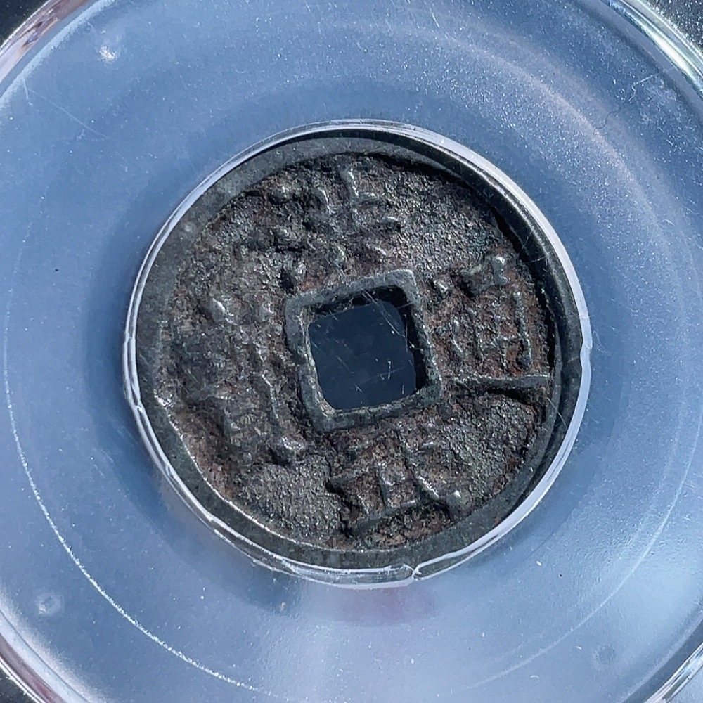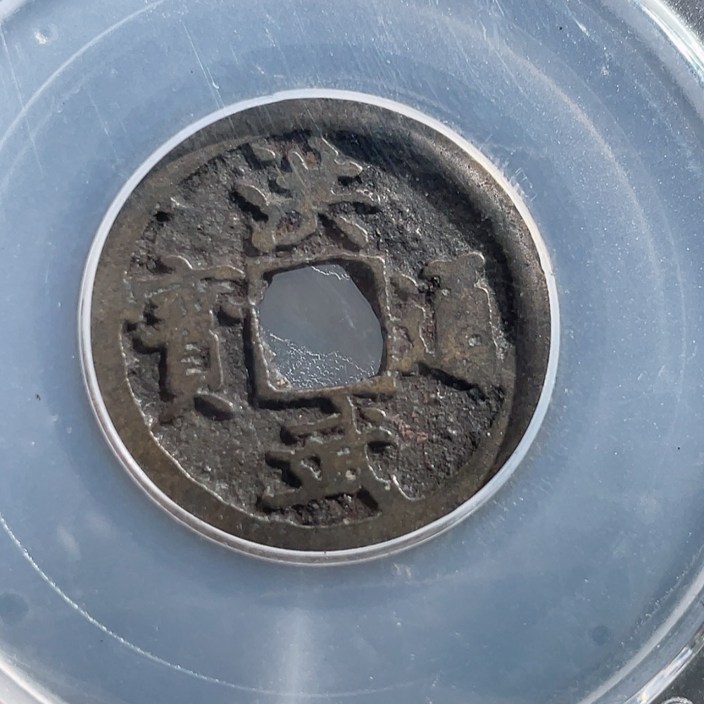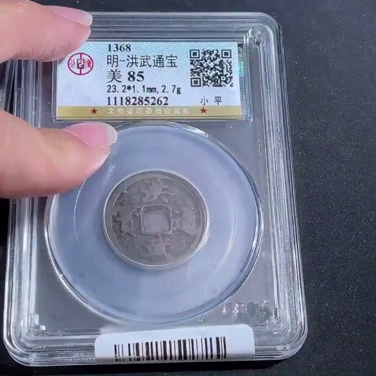 Trezaar - Ancient Coin Ming Dynasty Hongwu Tongbao Small Coin Three Pieces Diameter Approx. 22.2-24mm Clear Inscription GBCA Graded Slab 85 Points