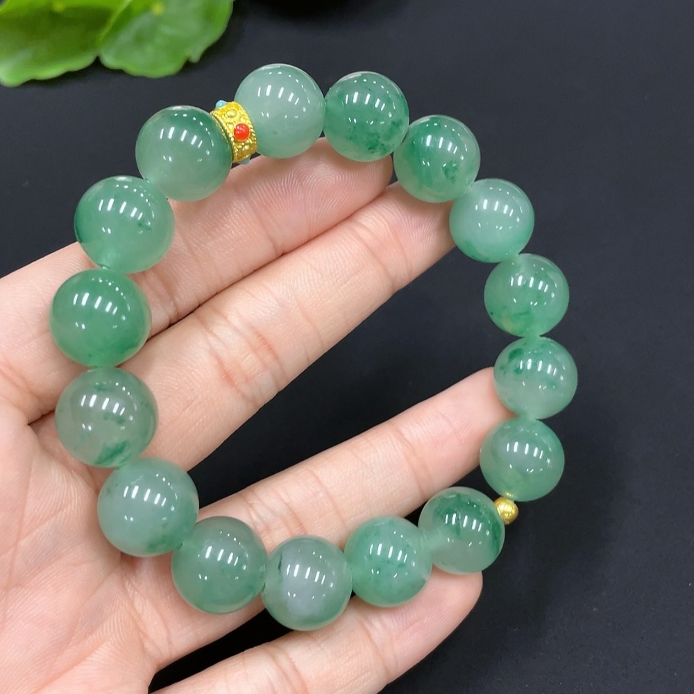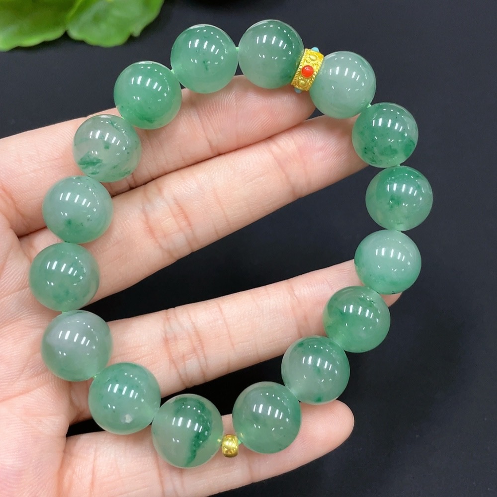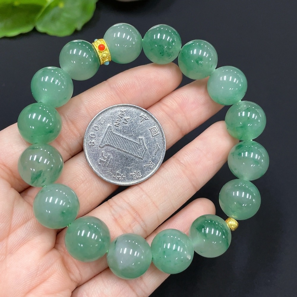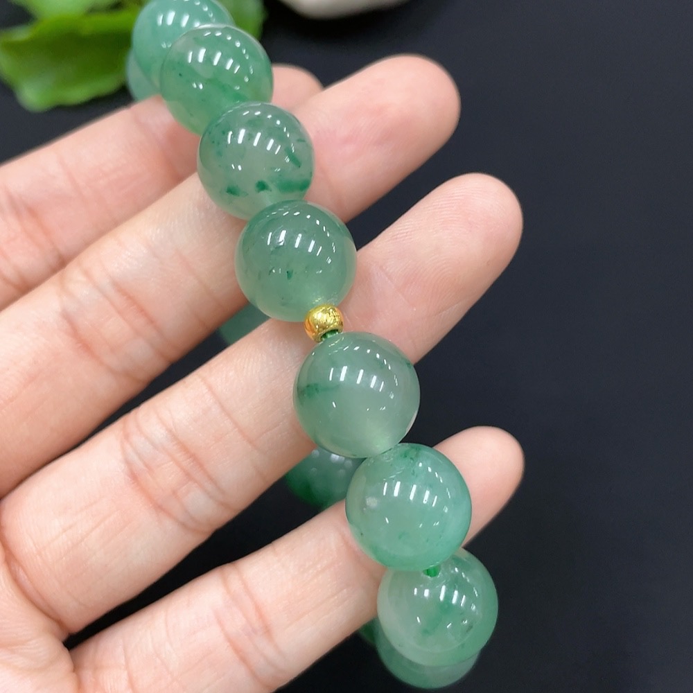 Dulong Jade Bracelet, Approx. 12.2mm, Total Weight Approx. 41.46g, Round Beads with 99% Gold Content, The Rest Non-Gold