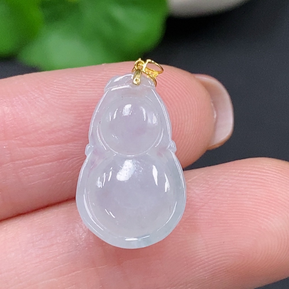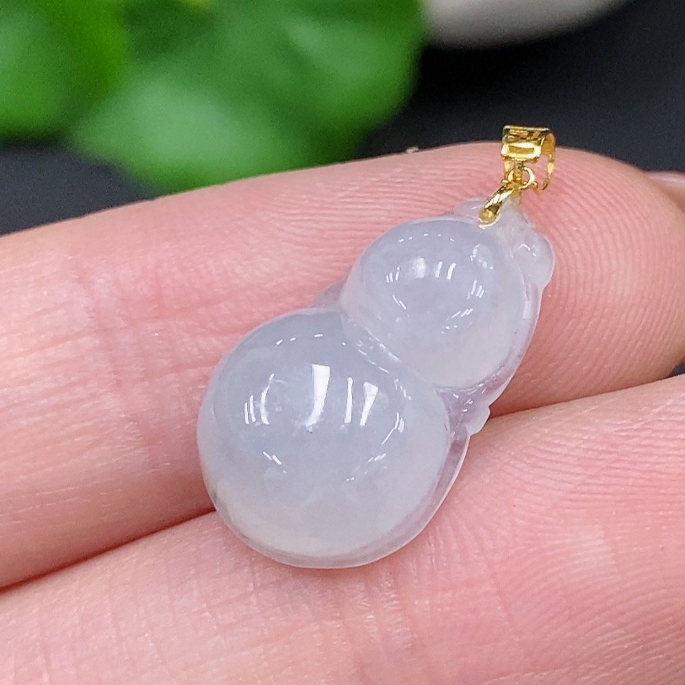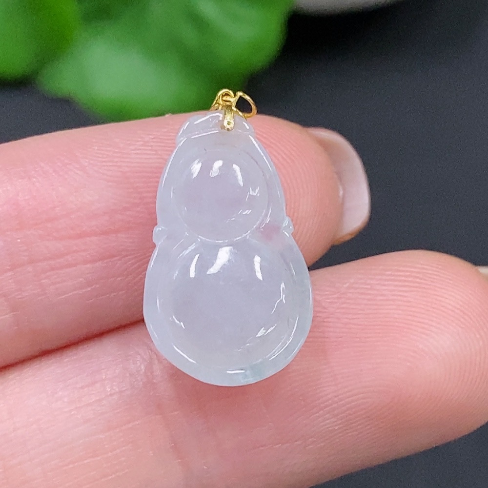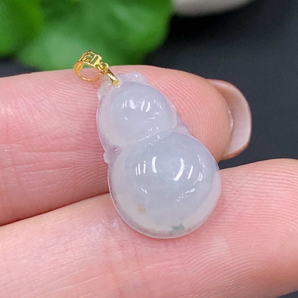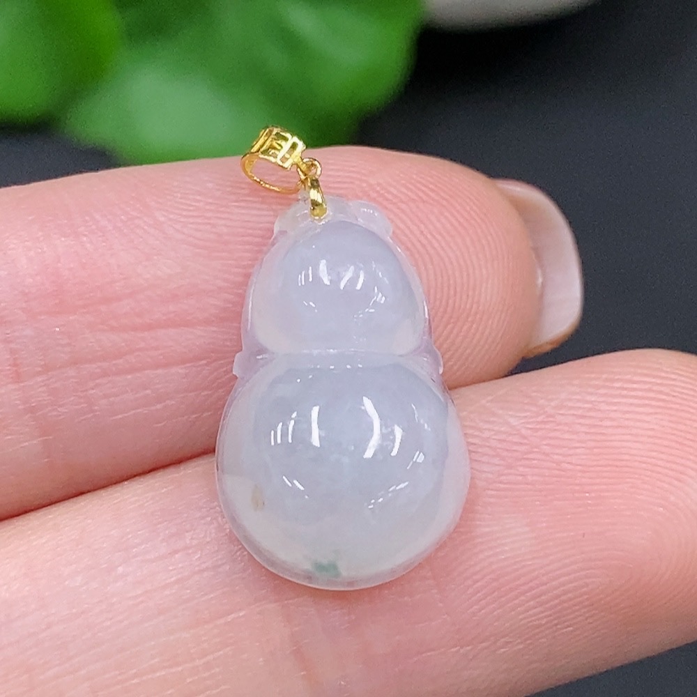Jadeite Gourd Pendant with 18k Gold Clasp, Total Weight Approximately 2g