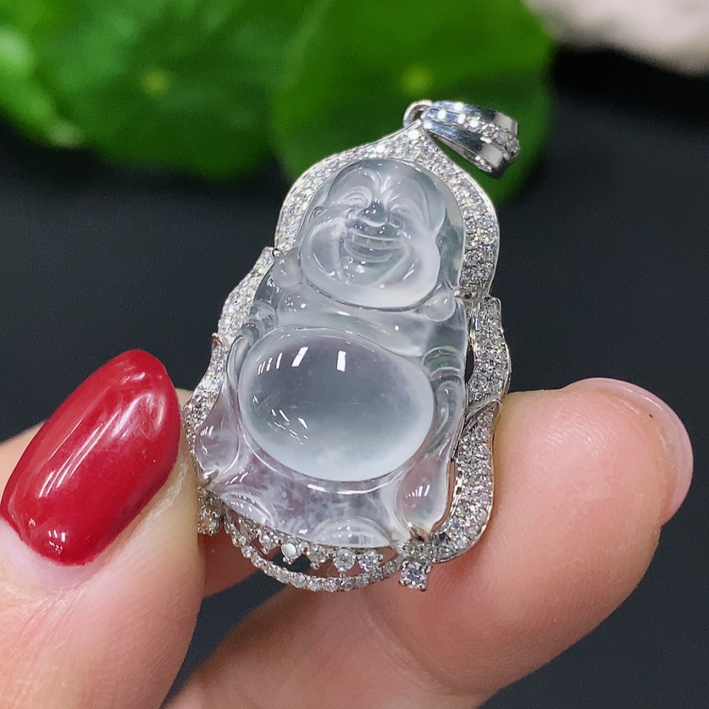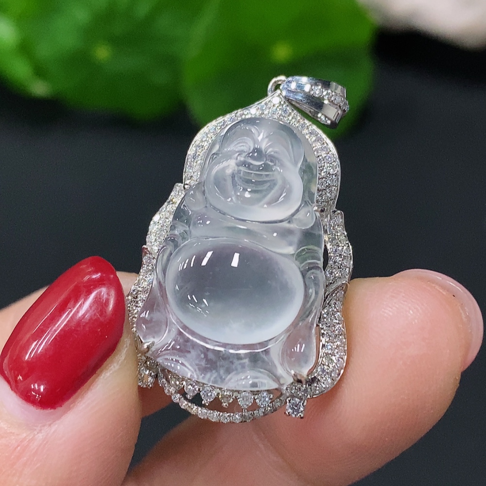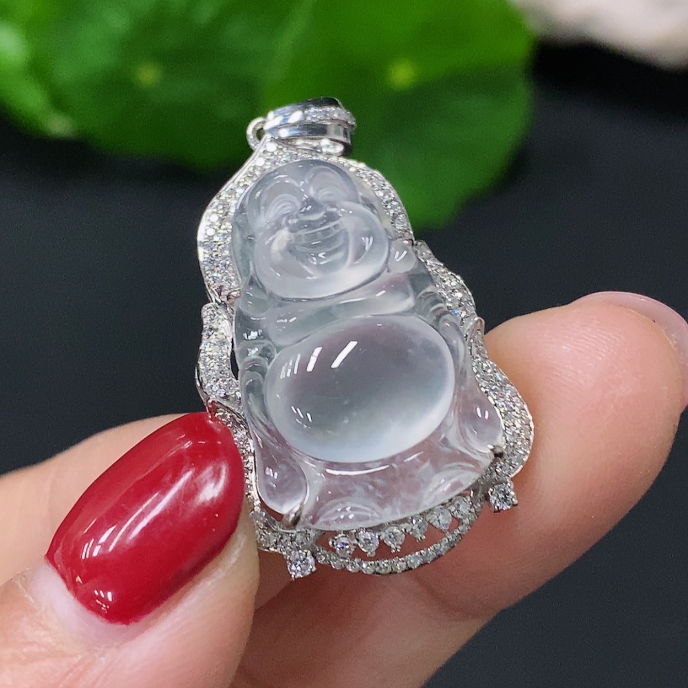 Jadeite Inlaid Buddha Pendant 18k Total Weight Approx. 4.59g
