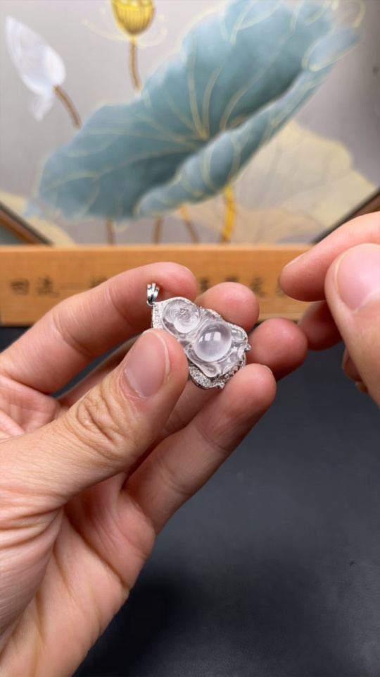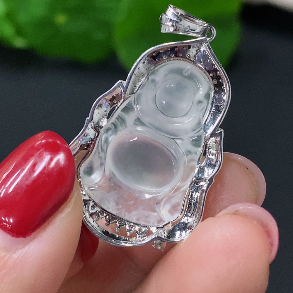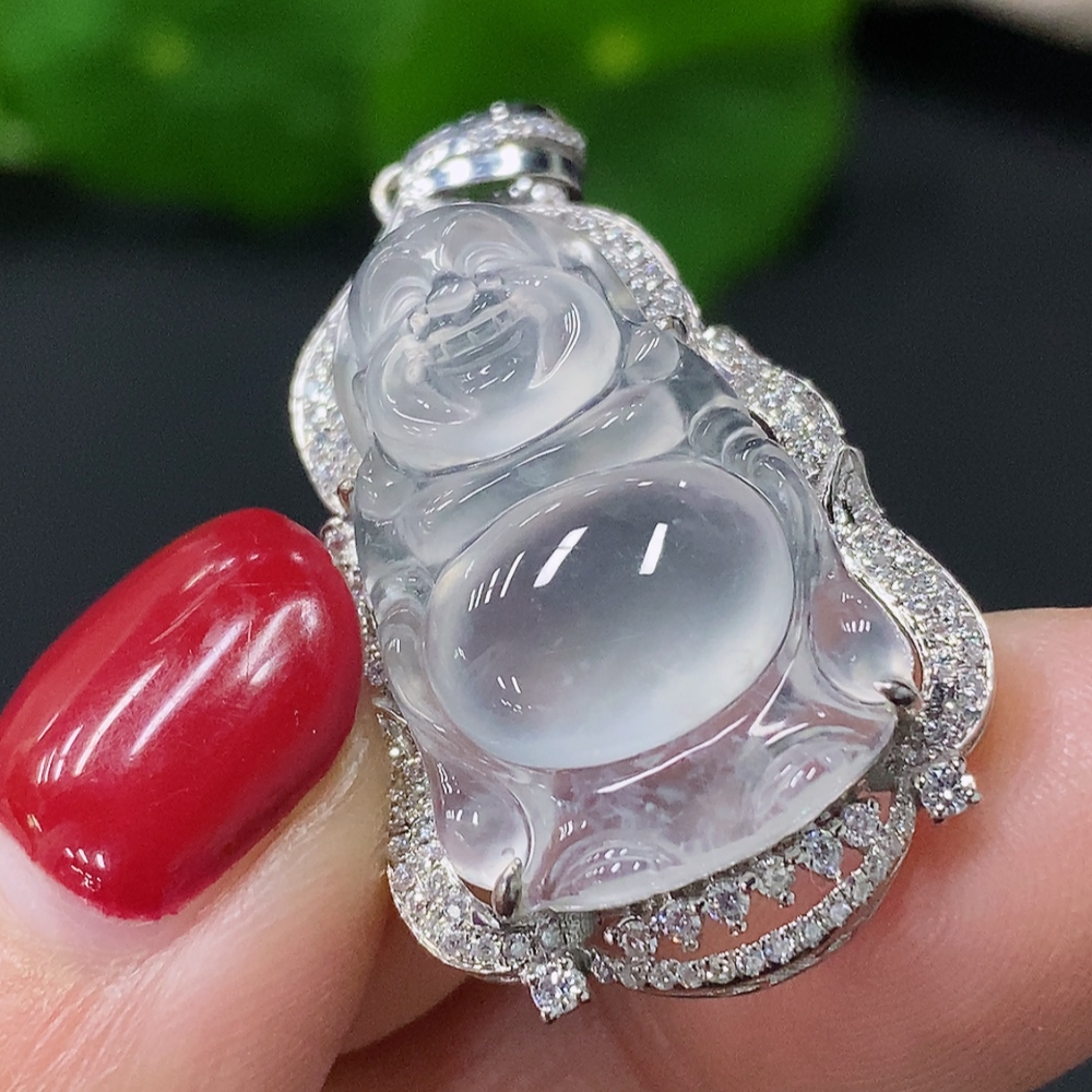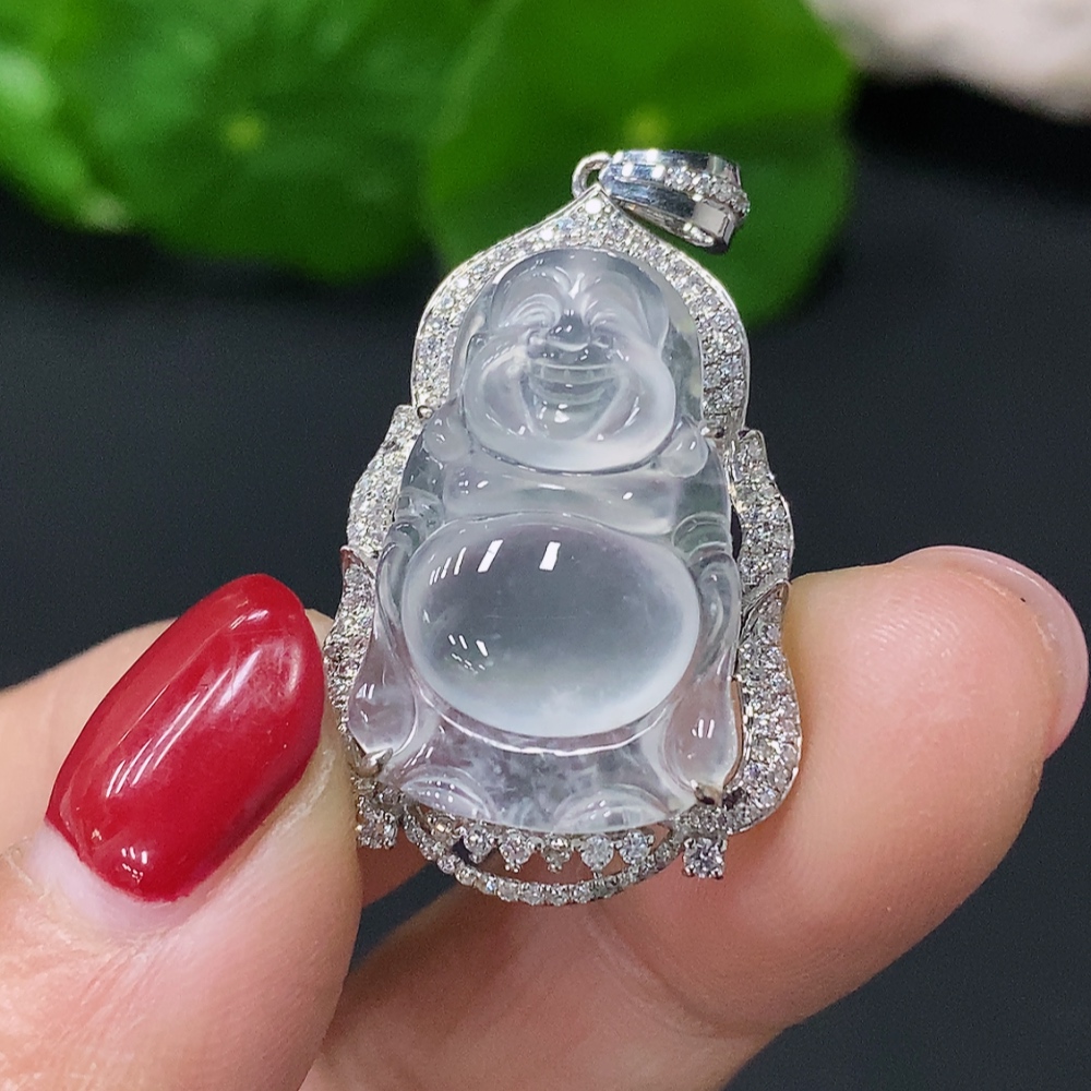 Jadeite Inlaid Buddha Pendant 18k Total Weight Approx. 4.59g