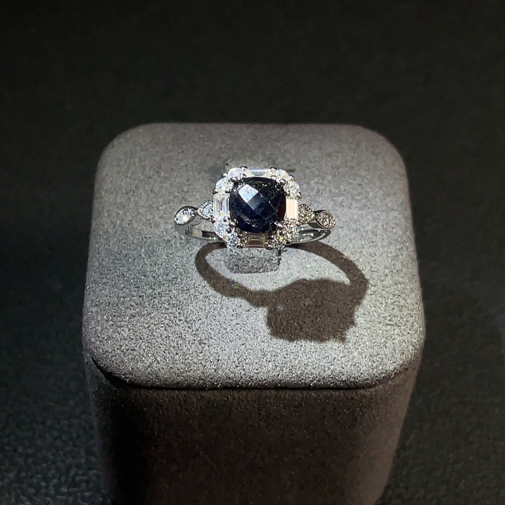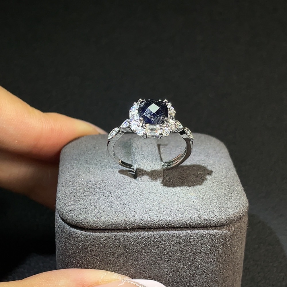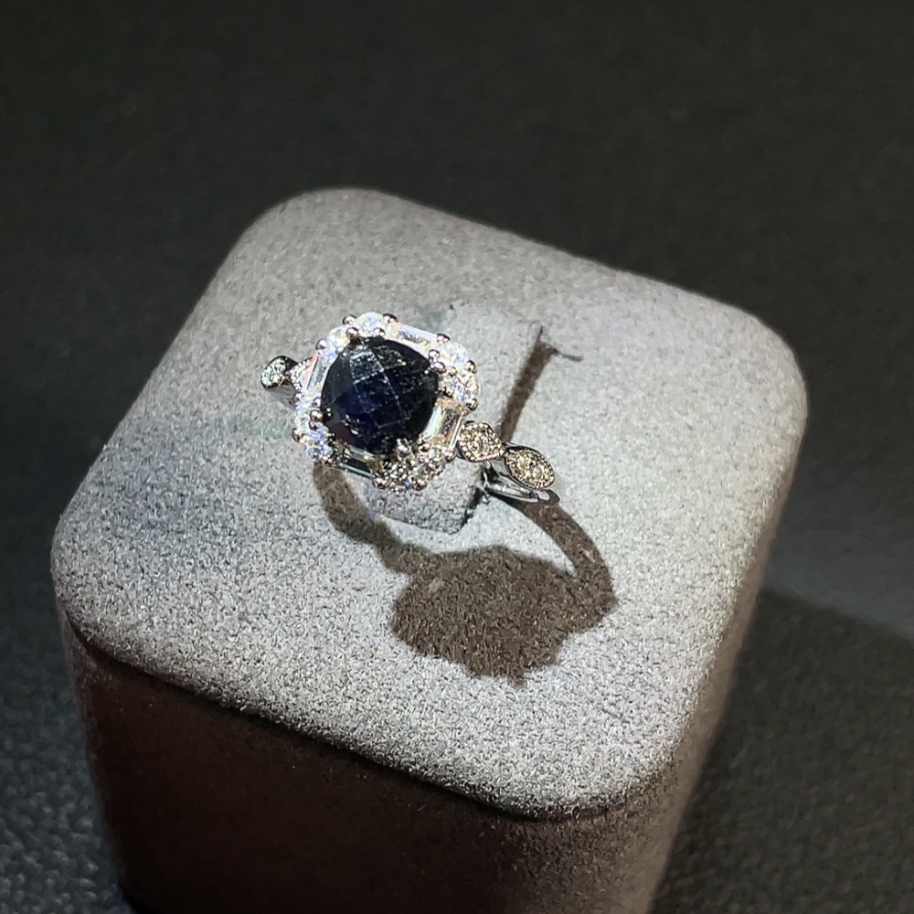 Sapphire Inlaid Ring, Non-Gold Setting, Adjustable, Total Weight Approx. 2.54g