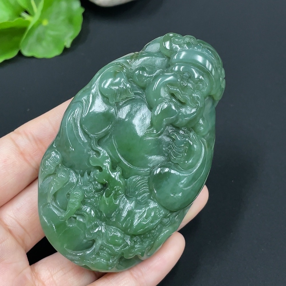 Hetian Jade Handheld Piece, God of Wealth, Total Weight Approx. 133.9g