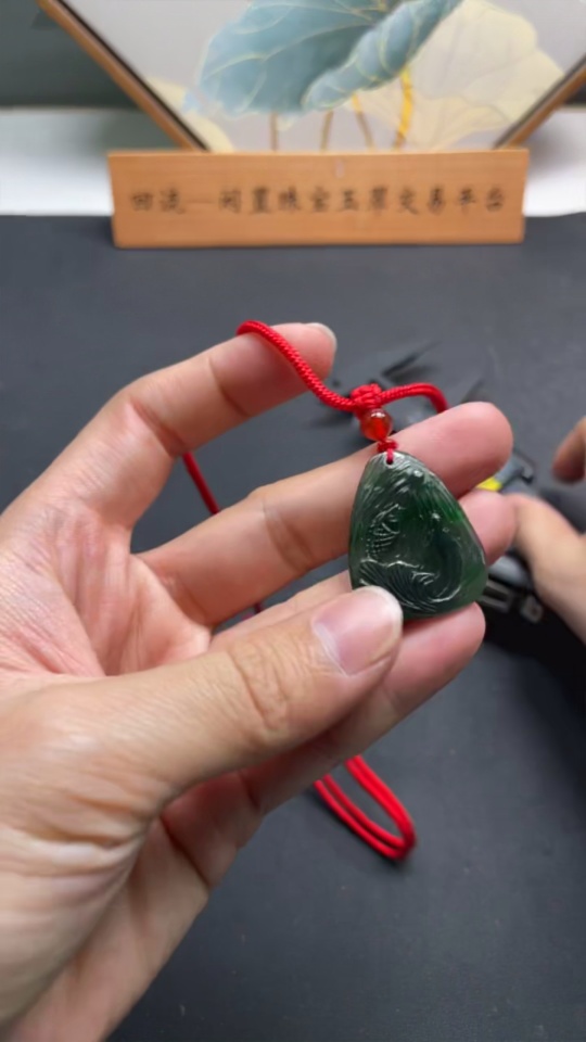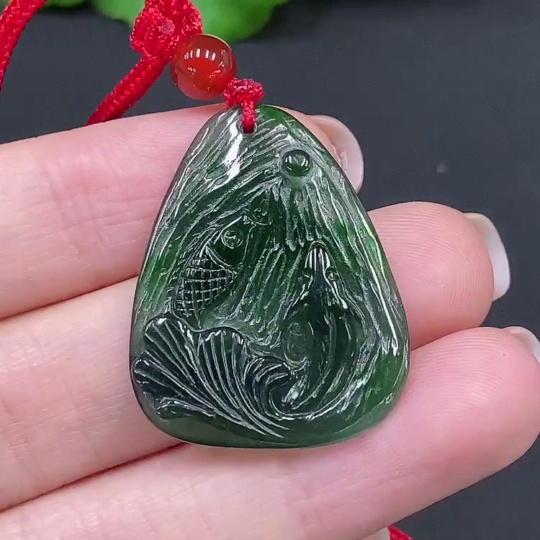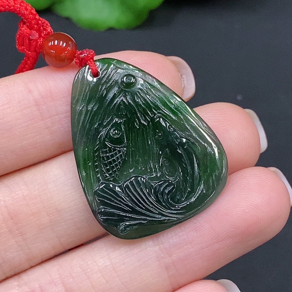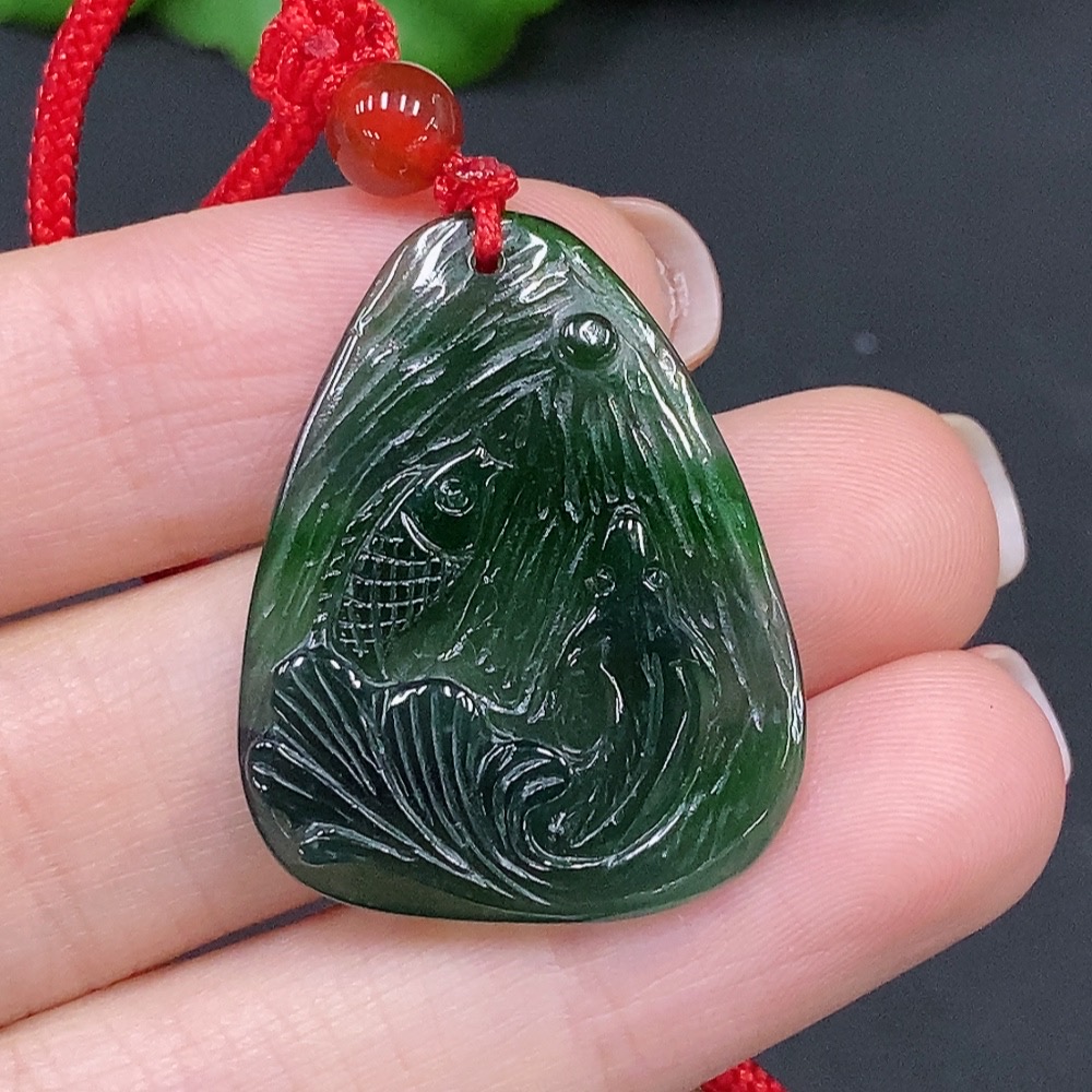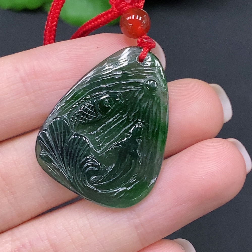 Jadeite Auspicious Fish Pendant Total Weight Approx. 7.2g (Including Rope)