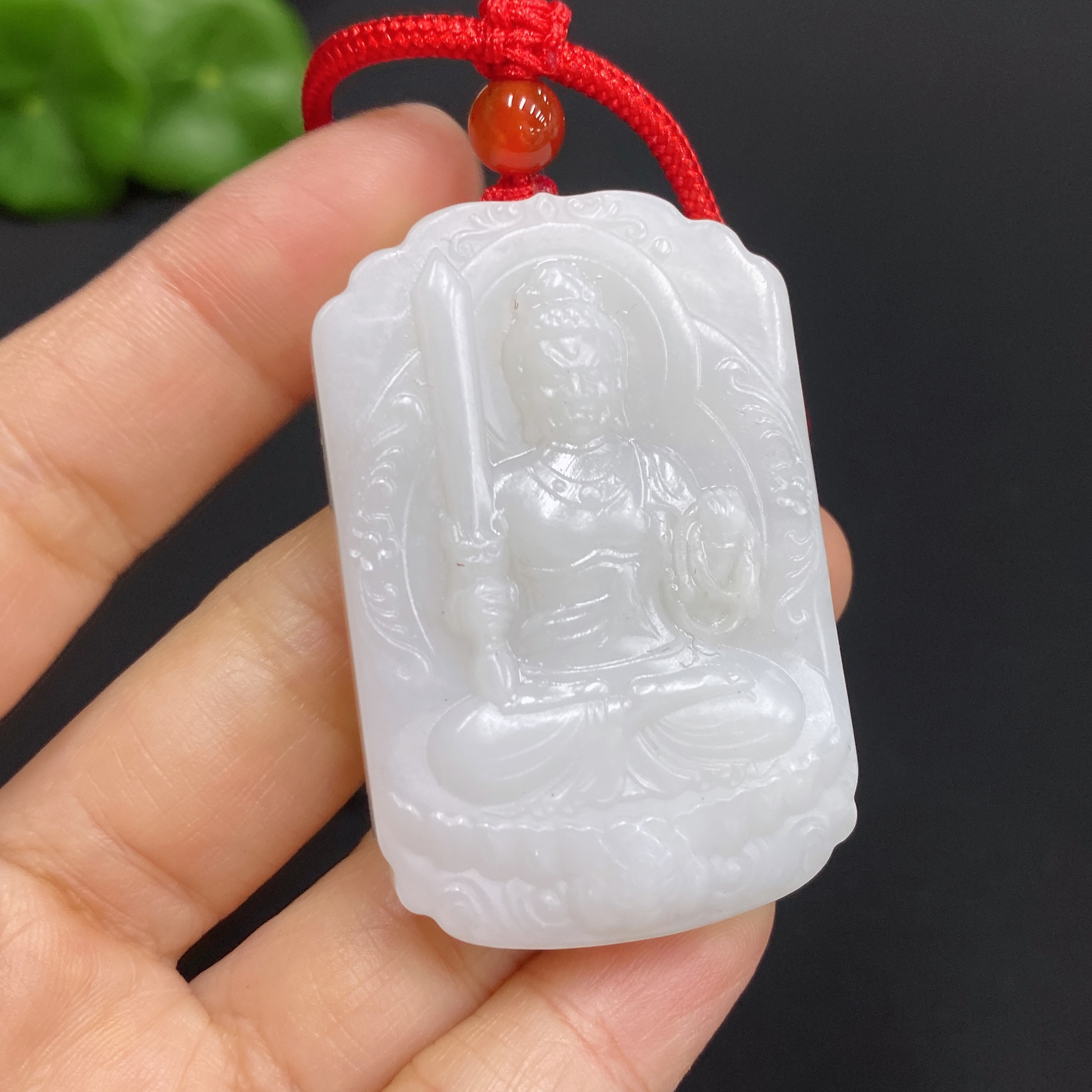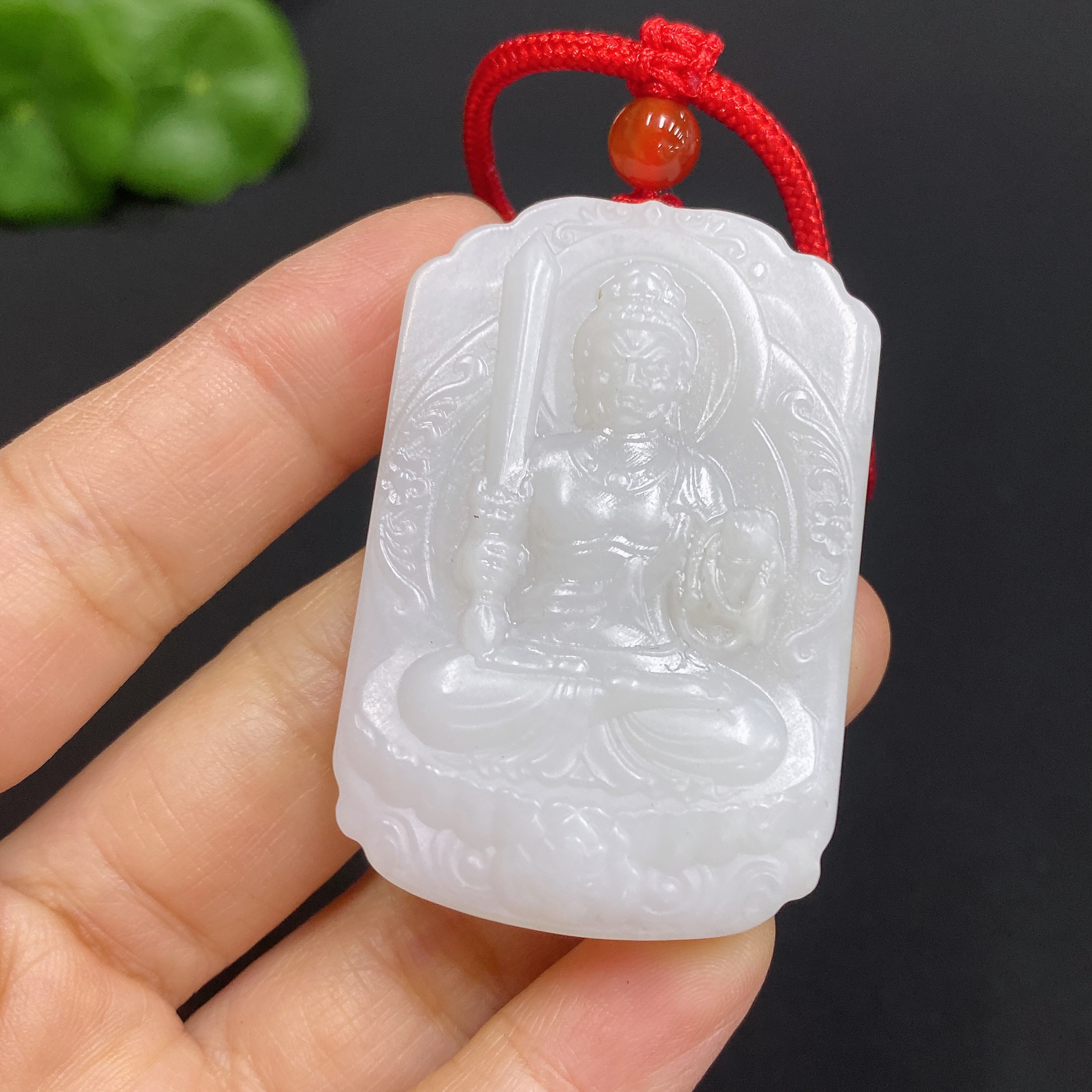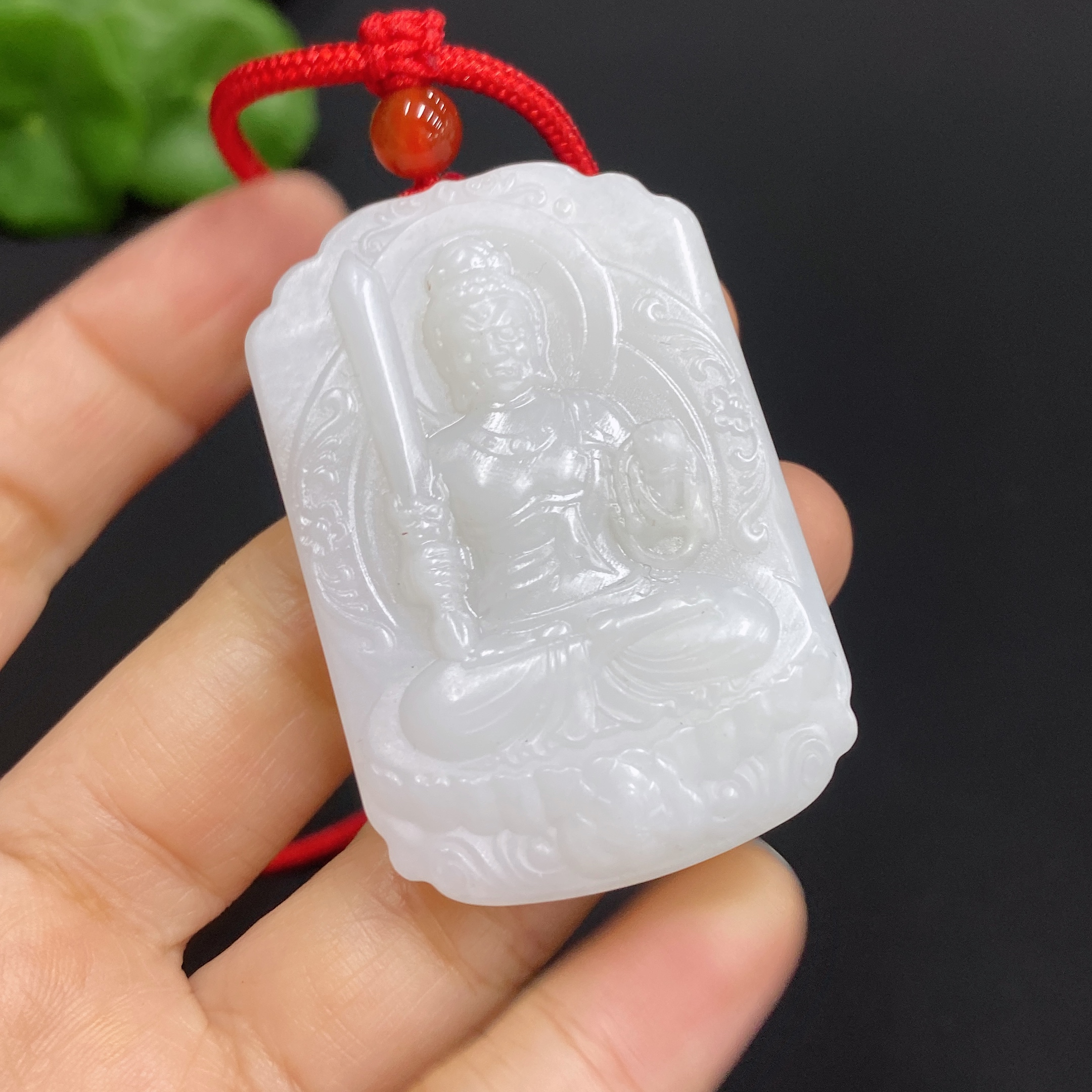 Hetian Jade Pendant - Fudō Myōō, Total Weight (including rope): 36.9g