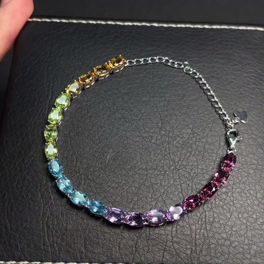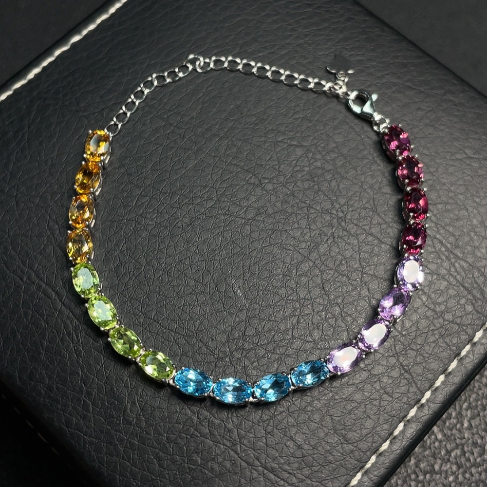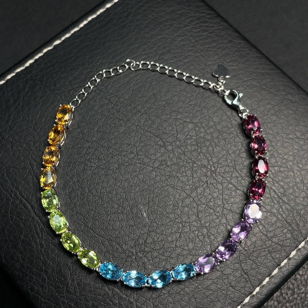 Topaz inlay bracelet, non-gold setting, total weight approx. 7.34g, color origin undetermined, with crystal, peridot and garnet