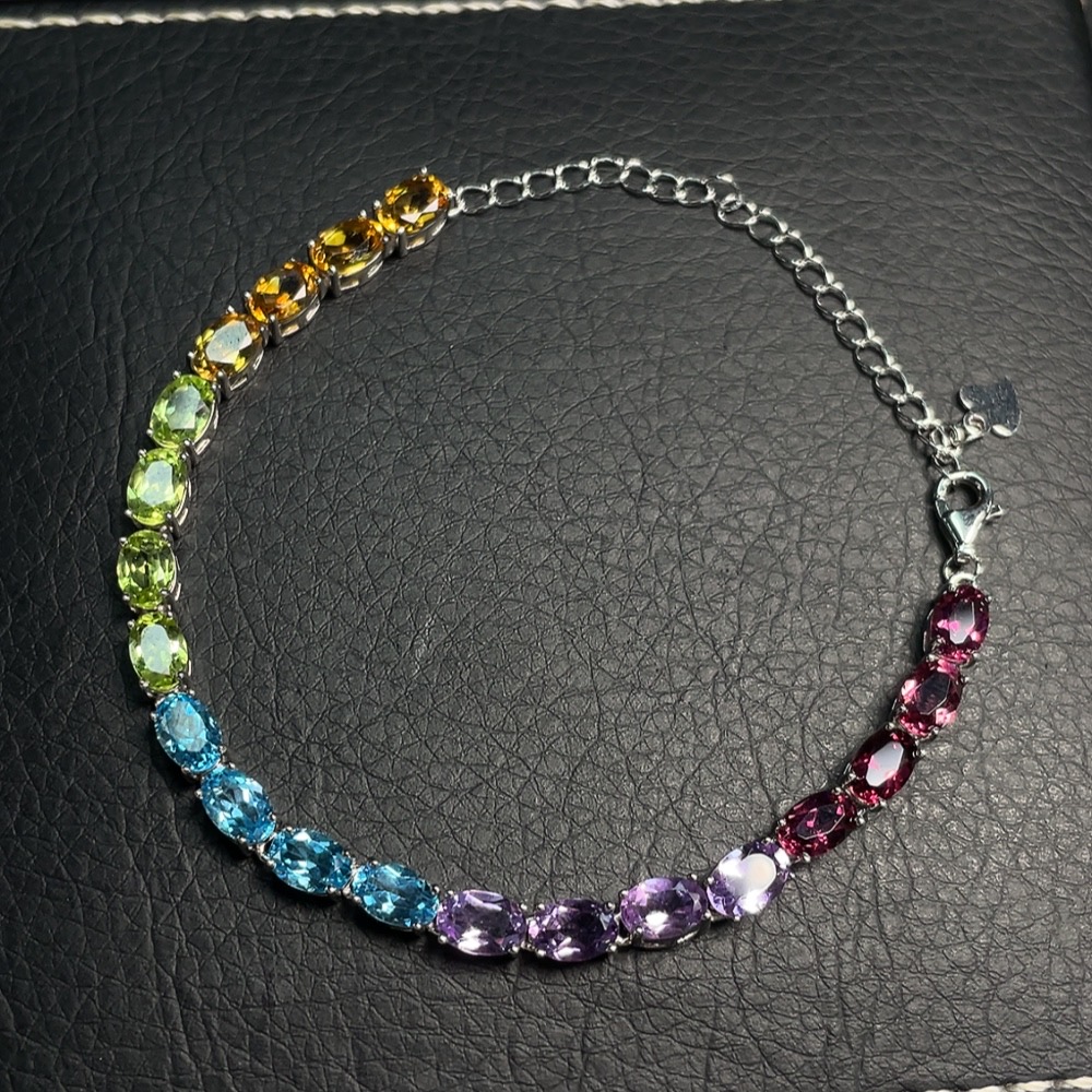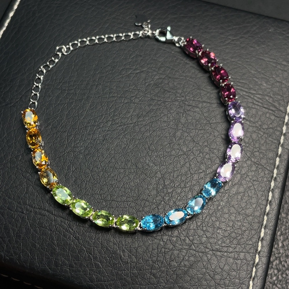 Topaz inlay bracelet, non-gold setting, total weight approx. 7.34g, color origin undetermined, with crystal, peridot and garnet