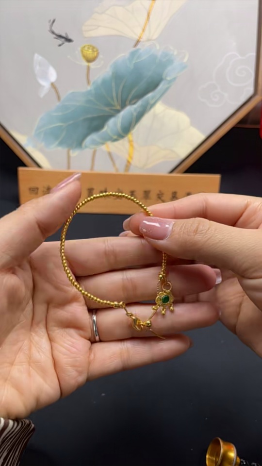 Jadeite Inlaid Bracelet Total Weight Approx. 2.6g Small Steel Beads Gold Content 99% Other Parts Non-Gold Inlaid