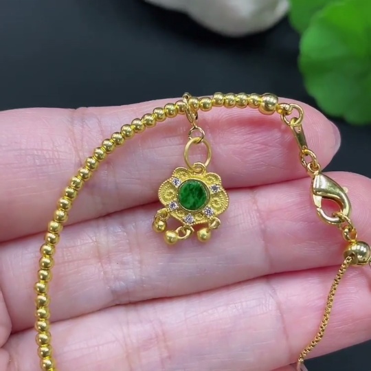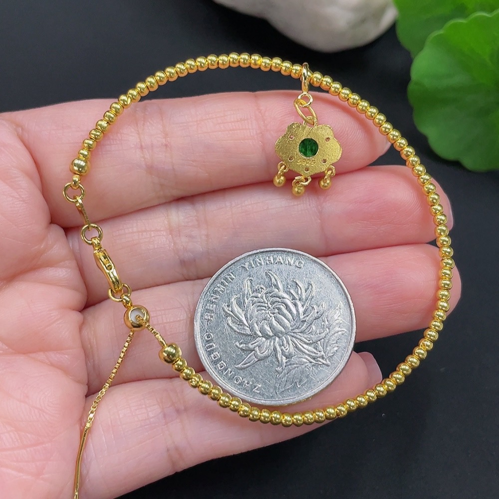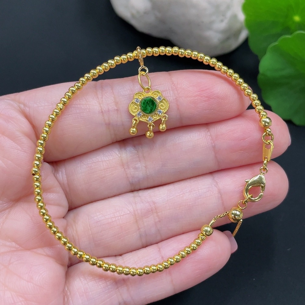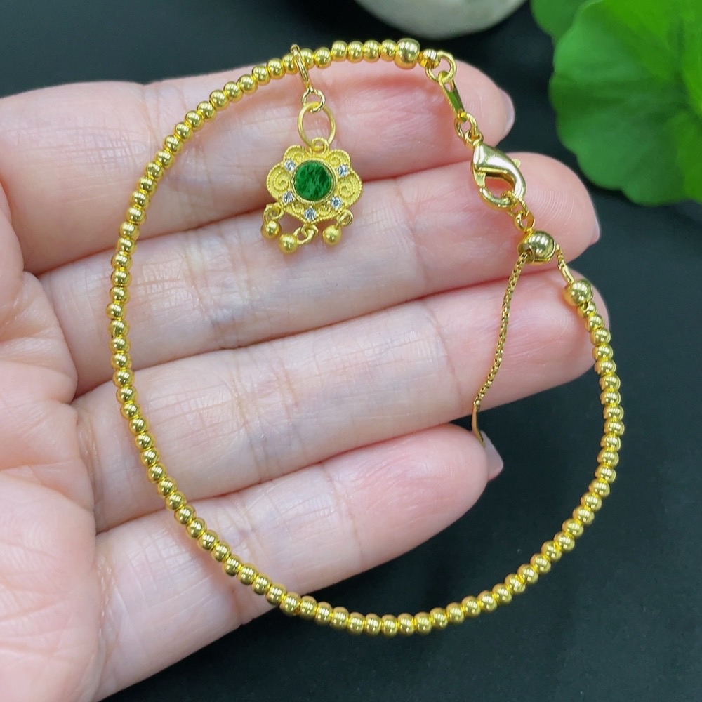 Trezaar - Jadeite Inlaid Bracelet Total Weight Approx. 2.6g Small Steel Beads Gold Content 99% Other Parts Non-Gold Inlaid