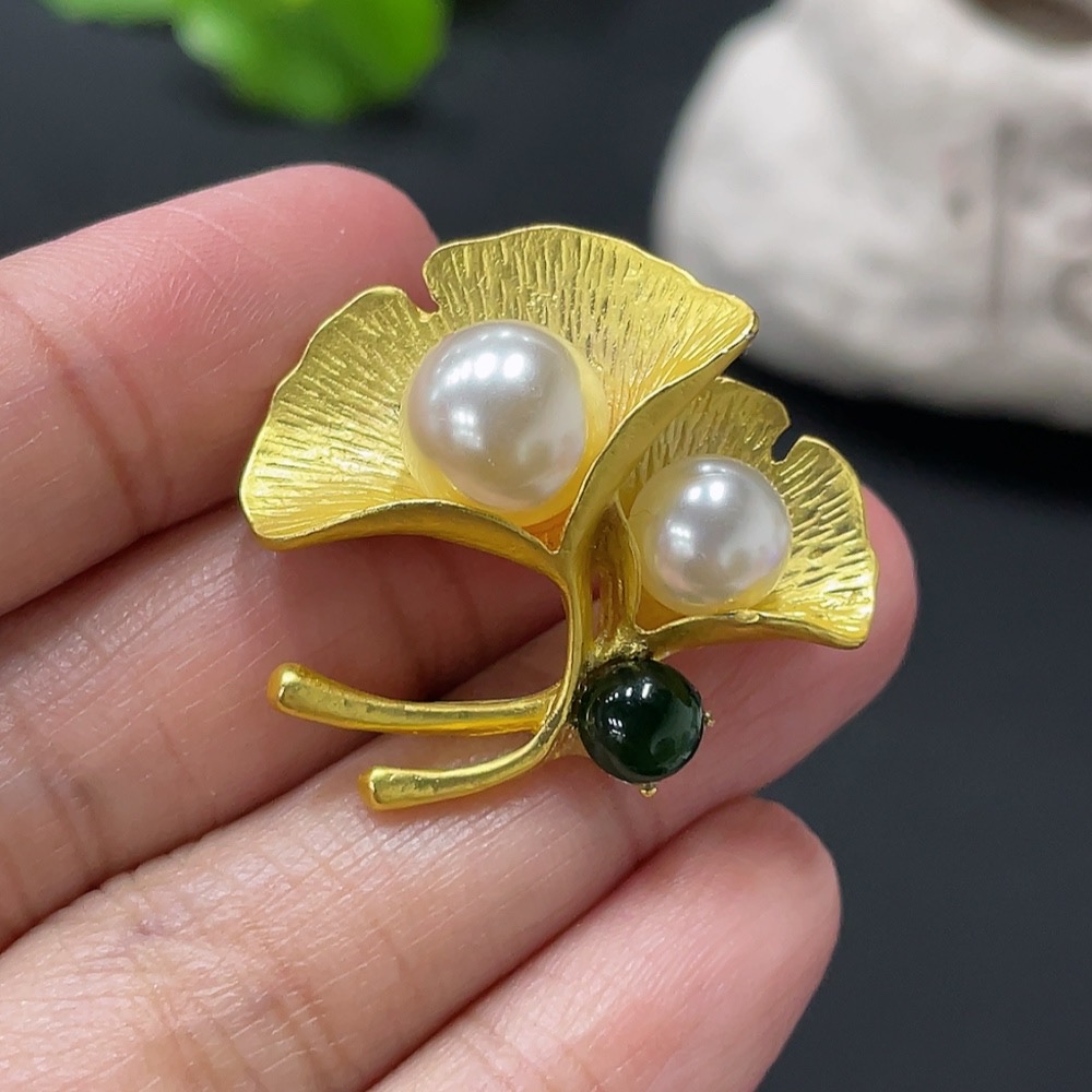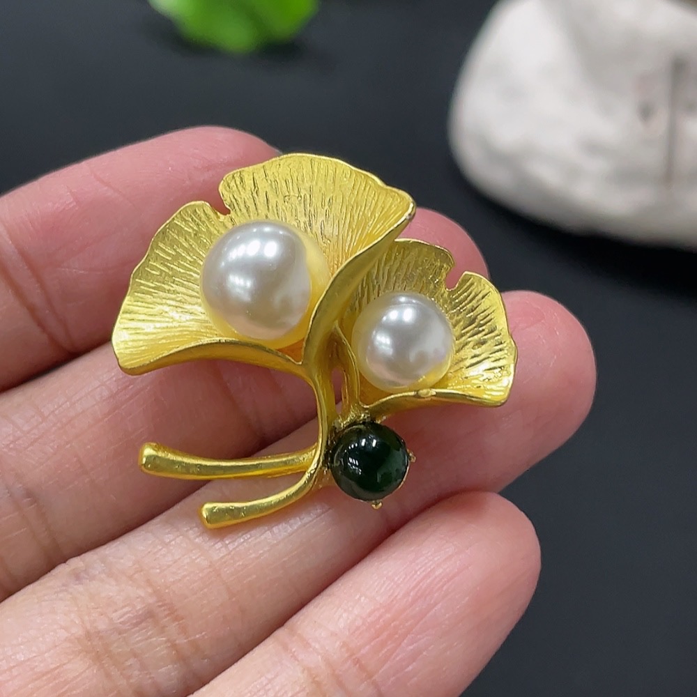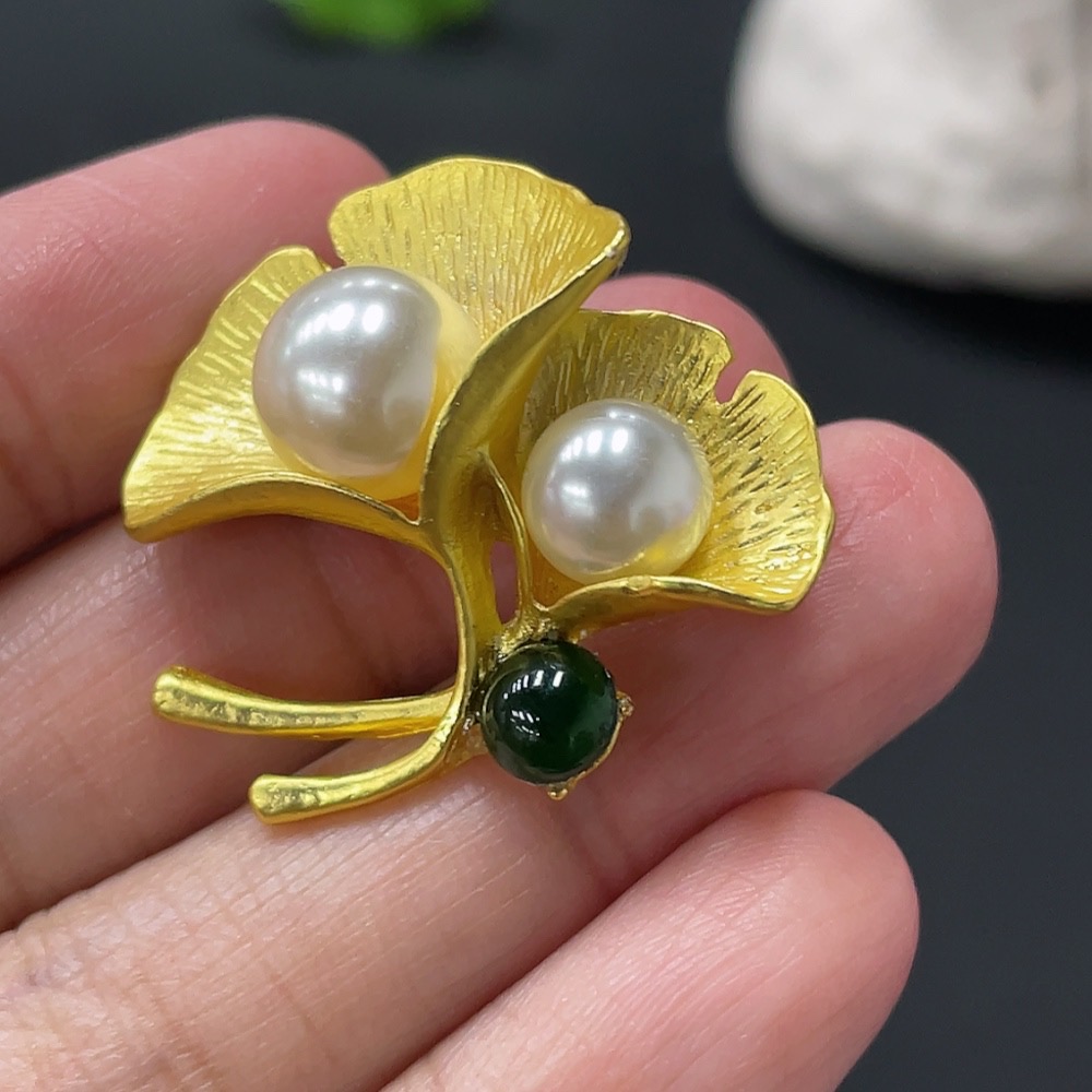 Jadeite Cabochon Inlaid Brooch Non-Gold Setting Total Weight Approx.6.11g Non-Natural Accent Stones Considered