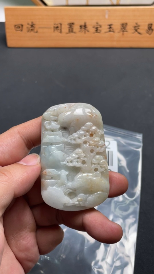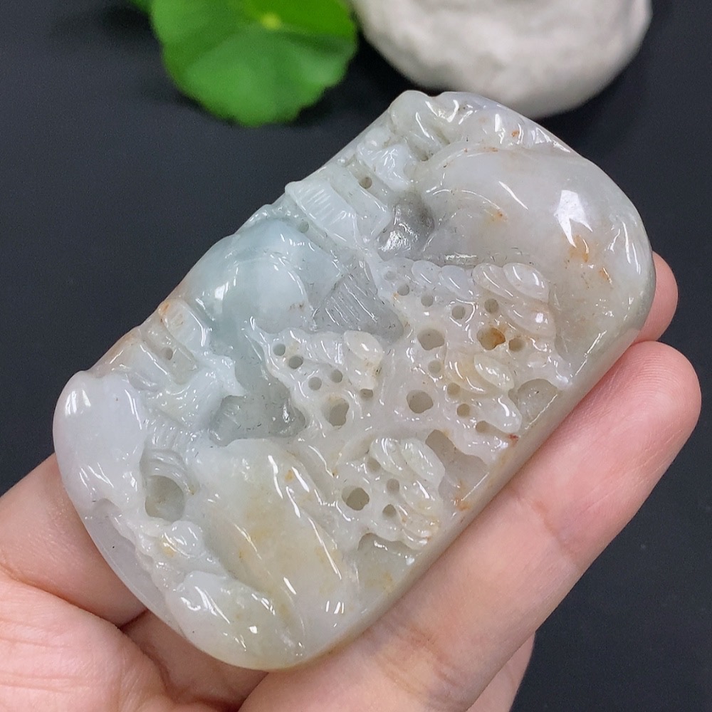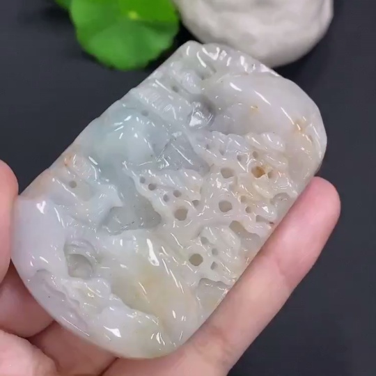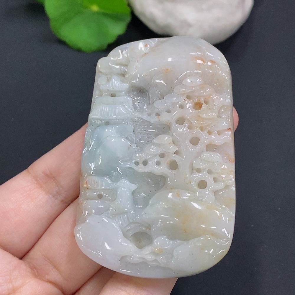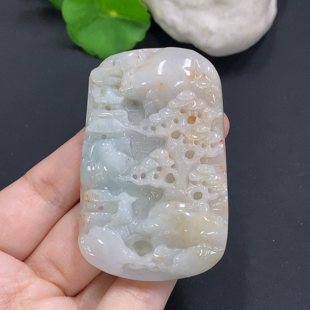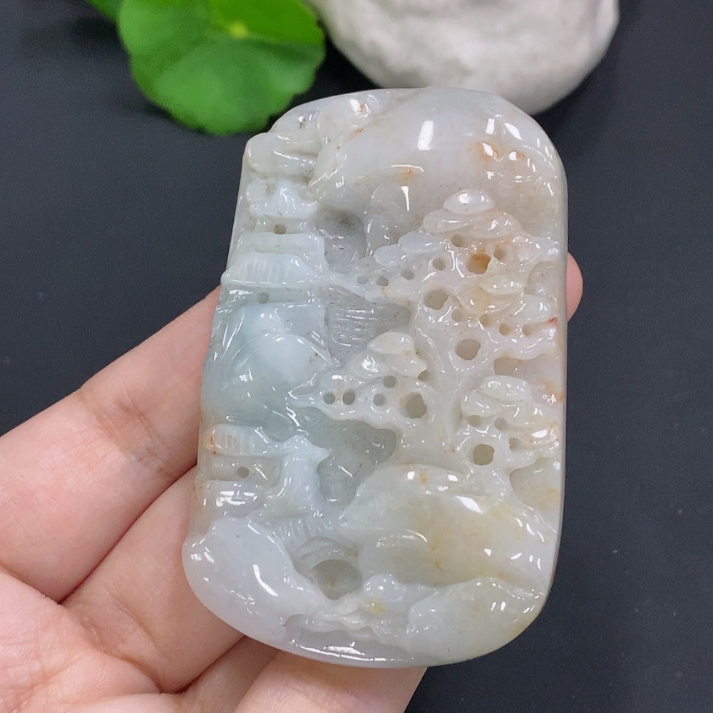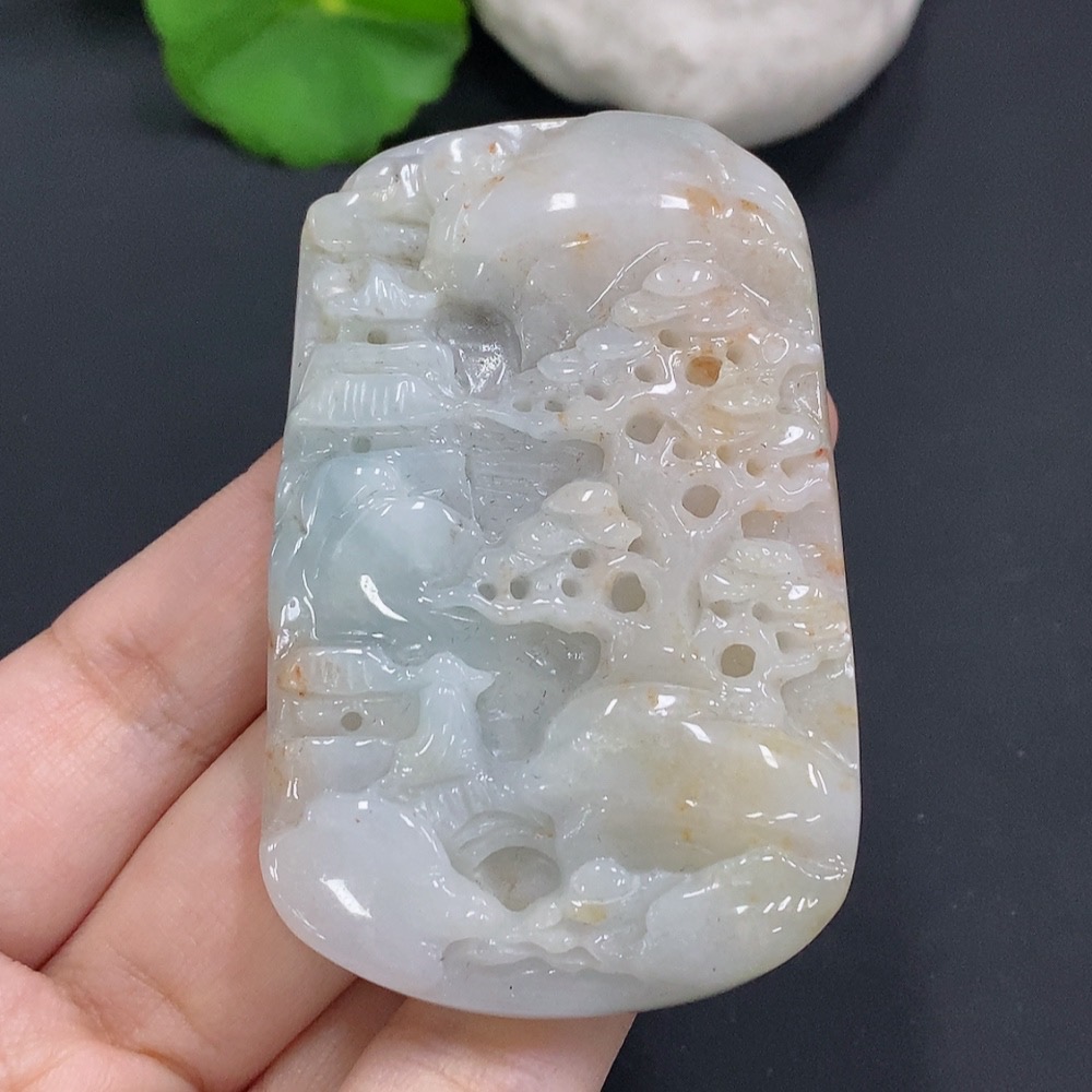 Jadeite Landscape Pendant, Total Weight Approx. 76g