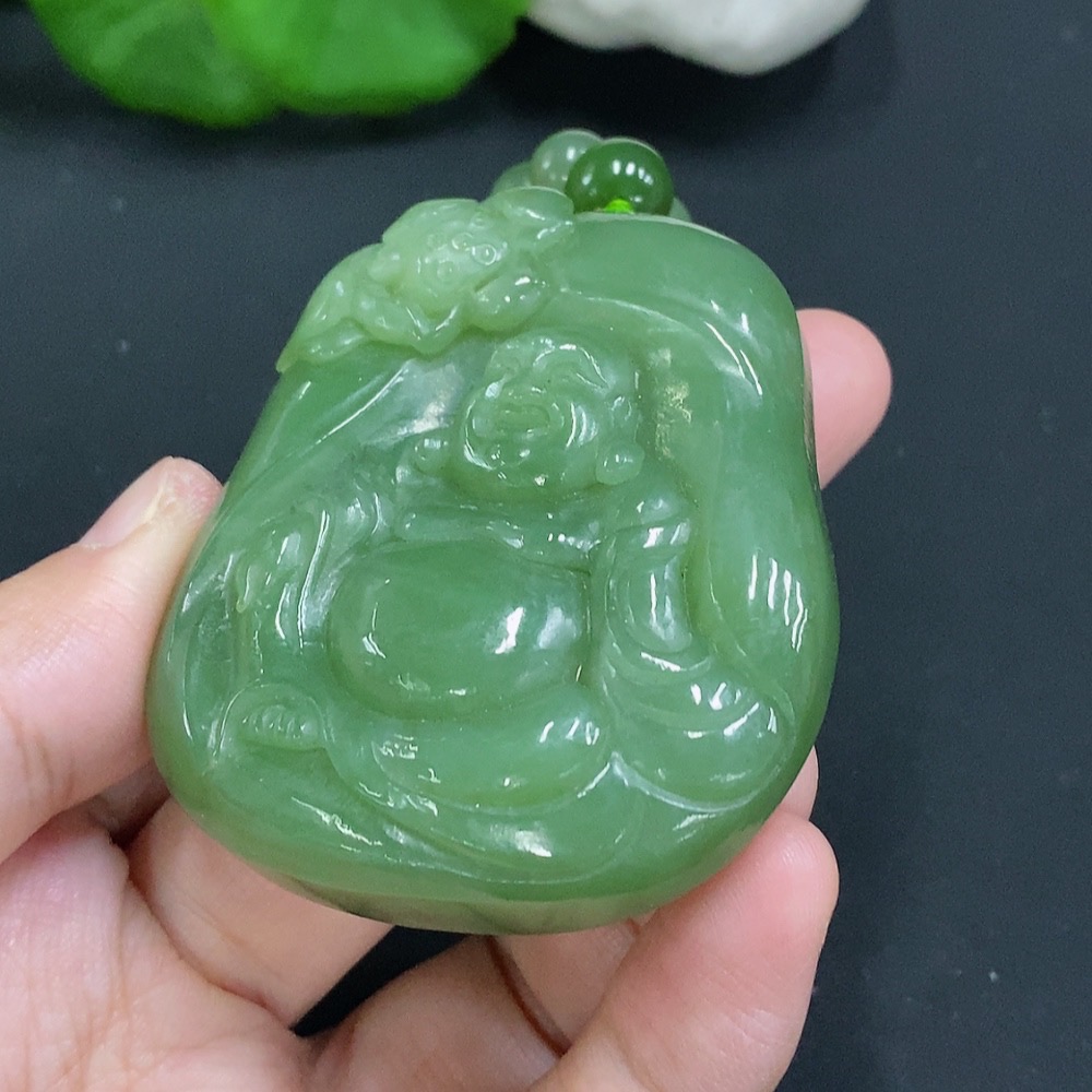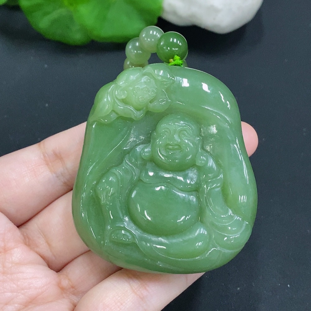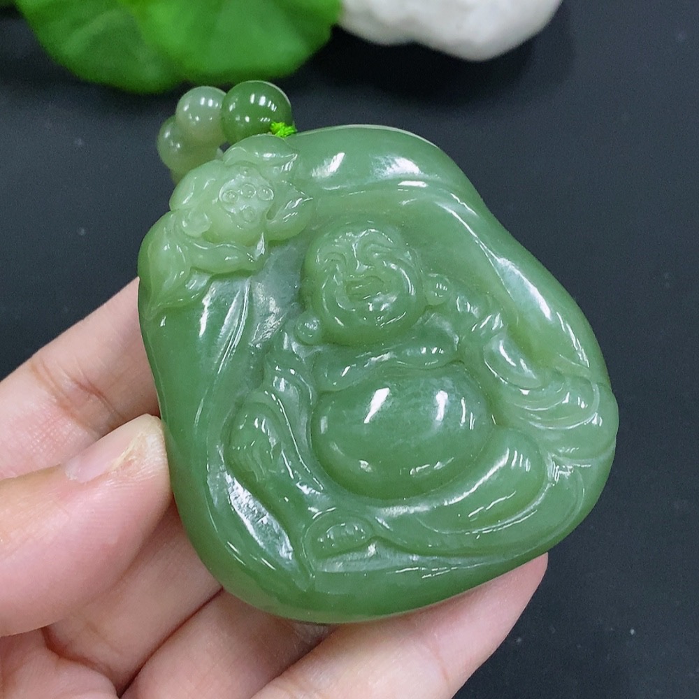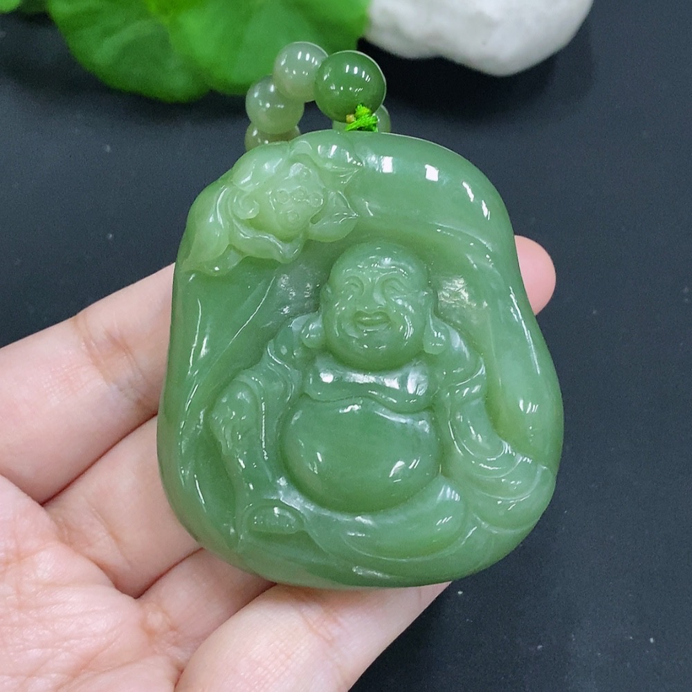 Hetian Jade Buddha Pendant with Chain, Total Weight Approx. 157.2g