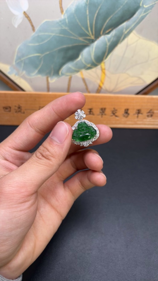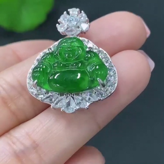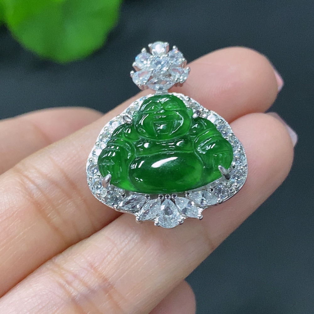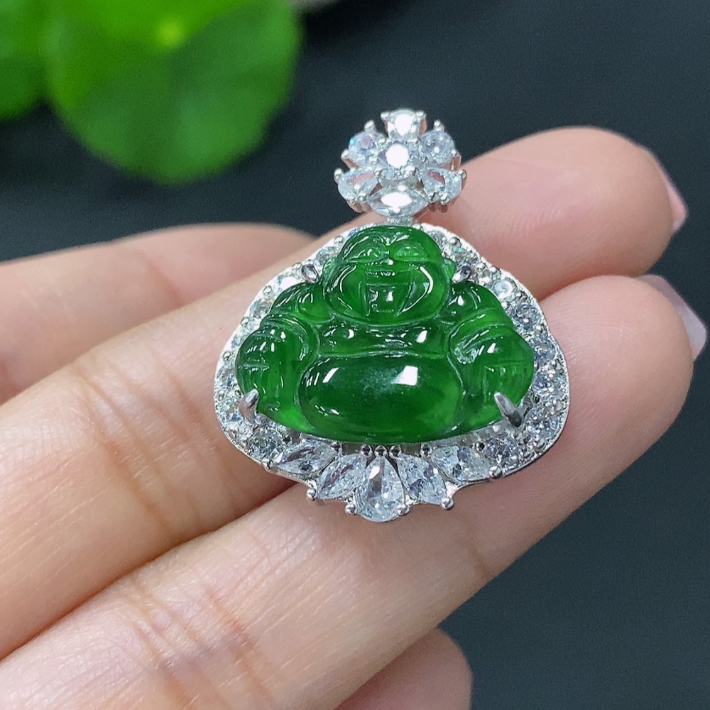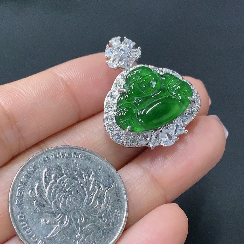 Jadeite Buddha Pendant Inlaid with Non-Gold Mounting, Total Weight Approx. 6.47g