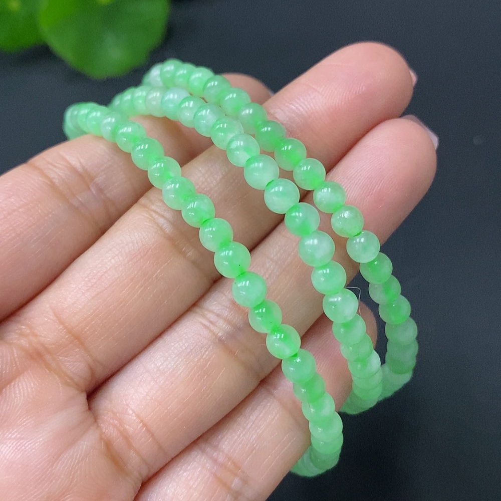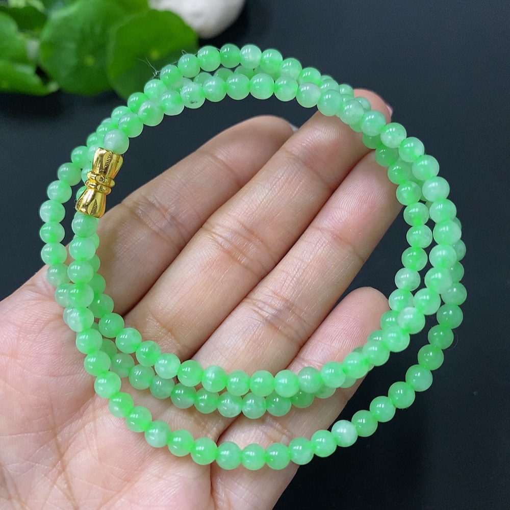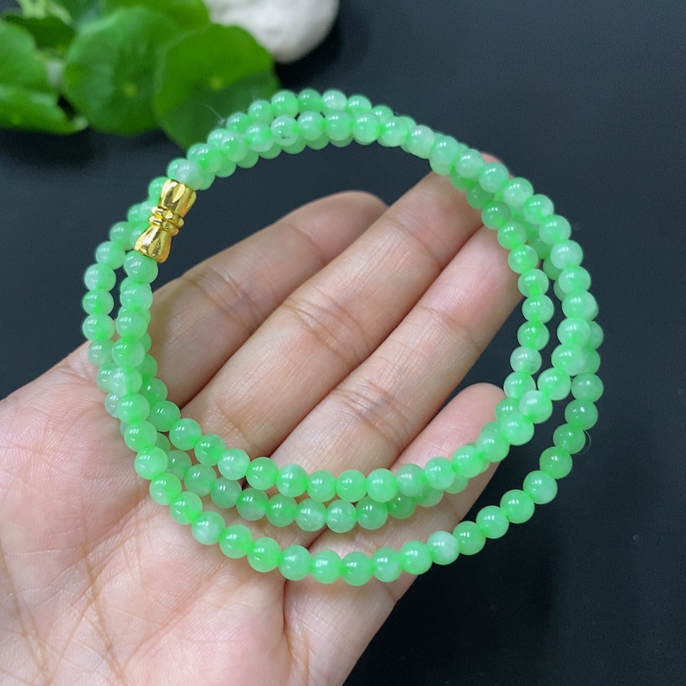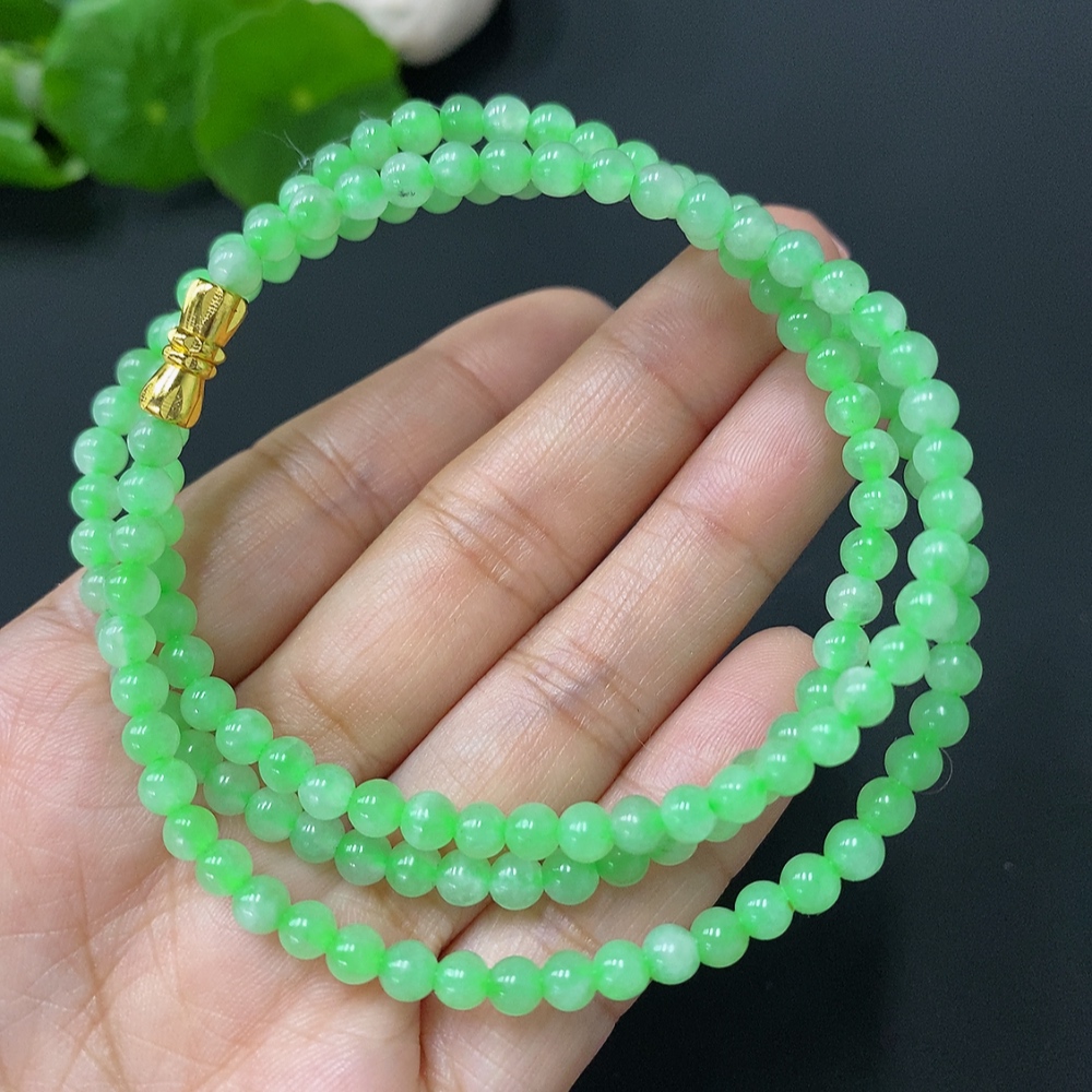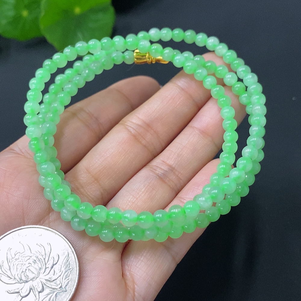 JadeiteBead Necklace Approximately 4.2mm Total Weight About 18.77g Note: String Affects Color