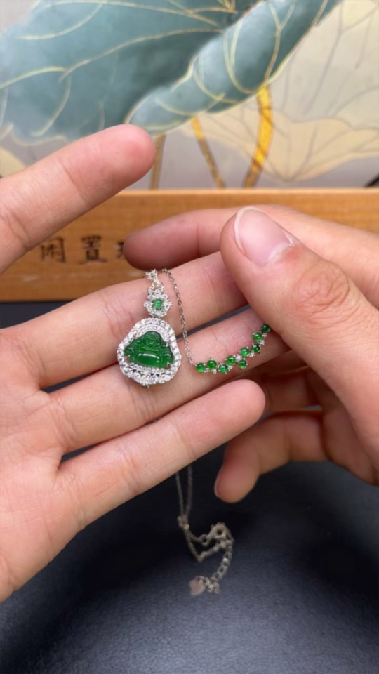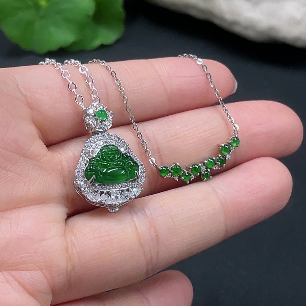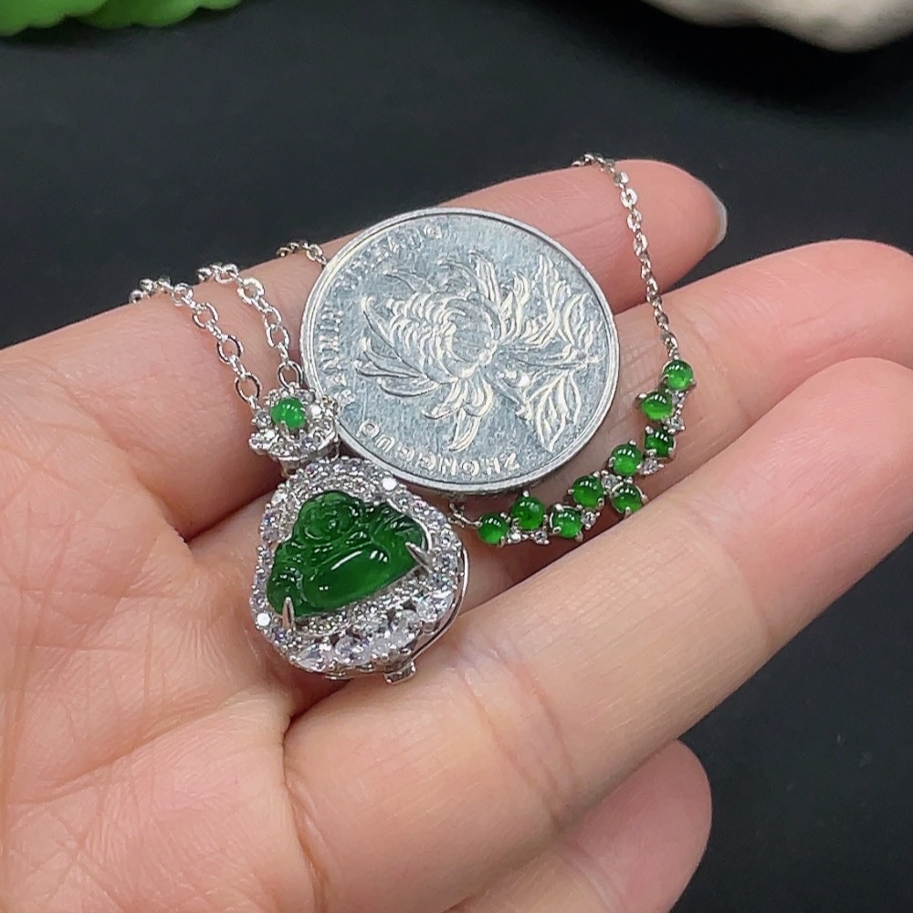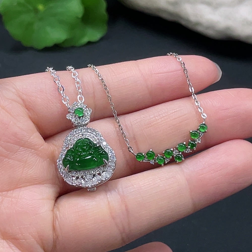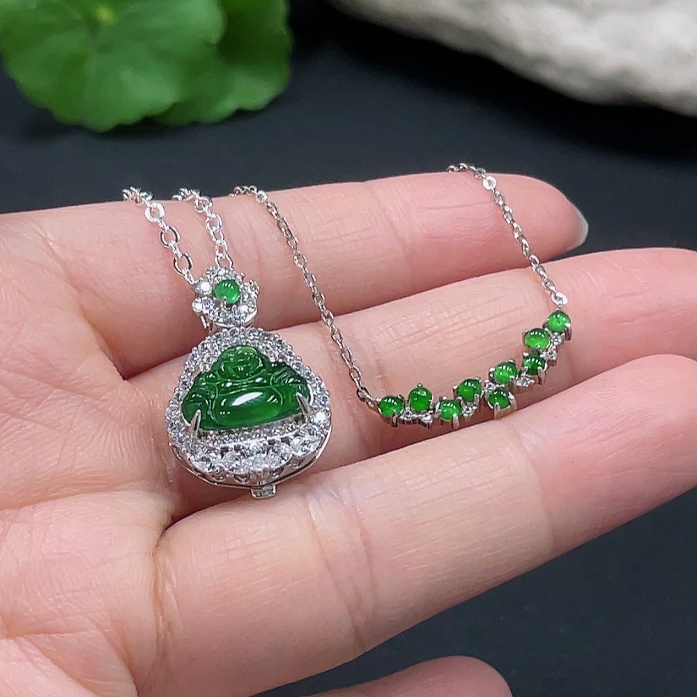 Jadeite Cabochon/Buddha Inlay Pendant Non-Gold Setting Beads Non-Grade A