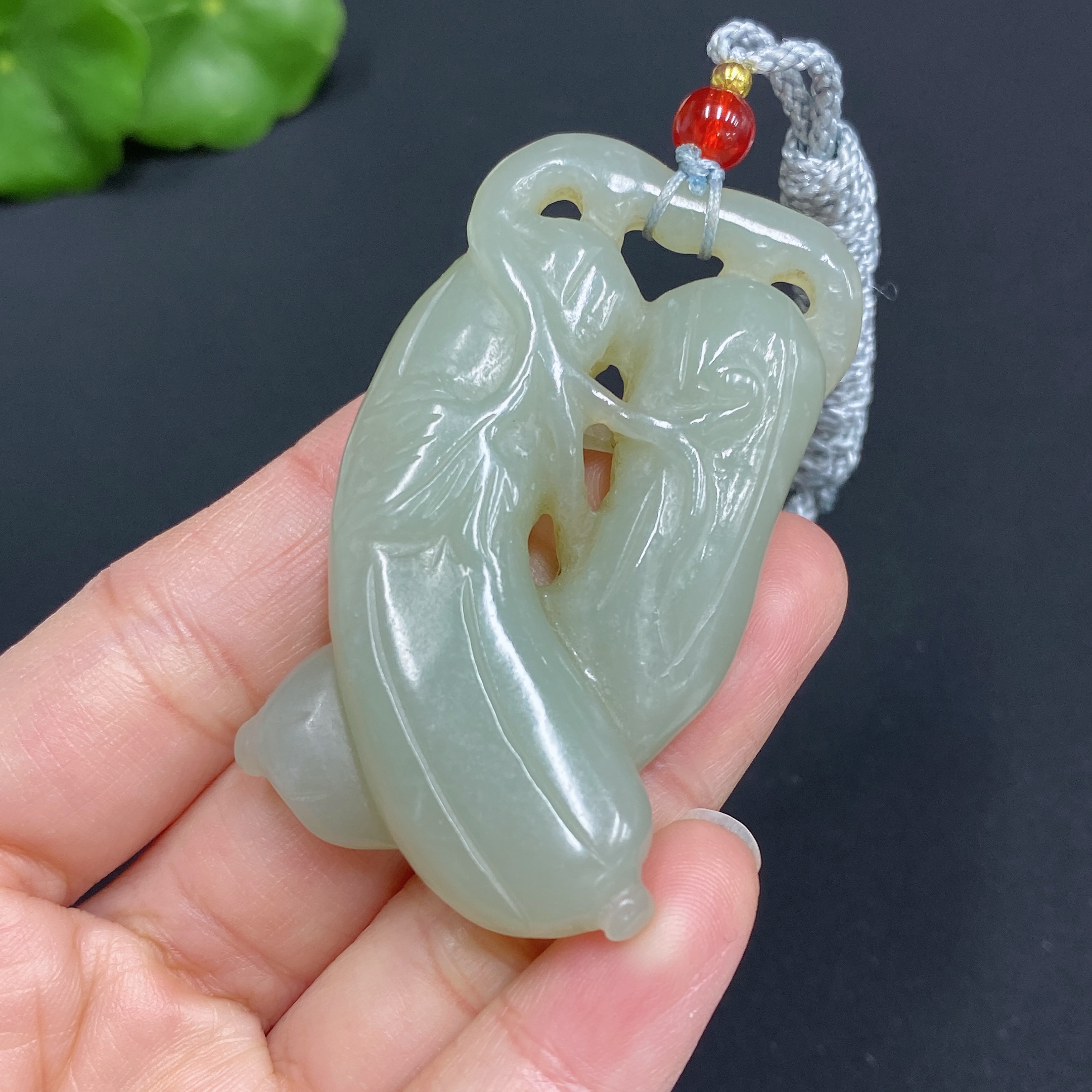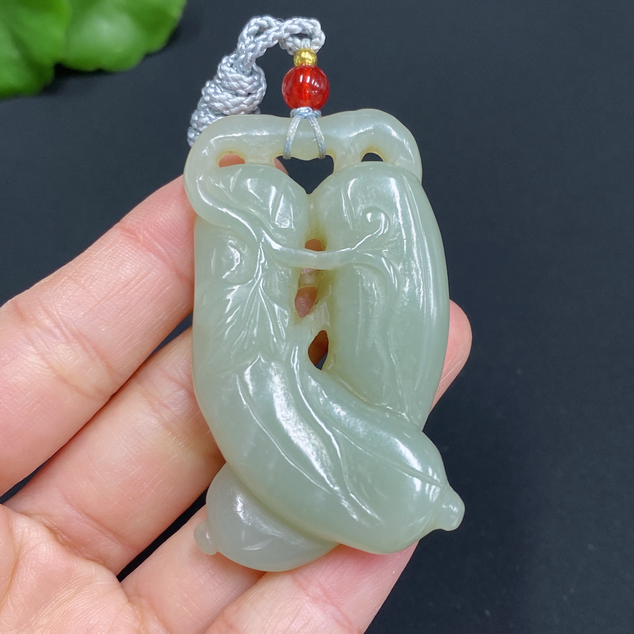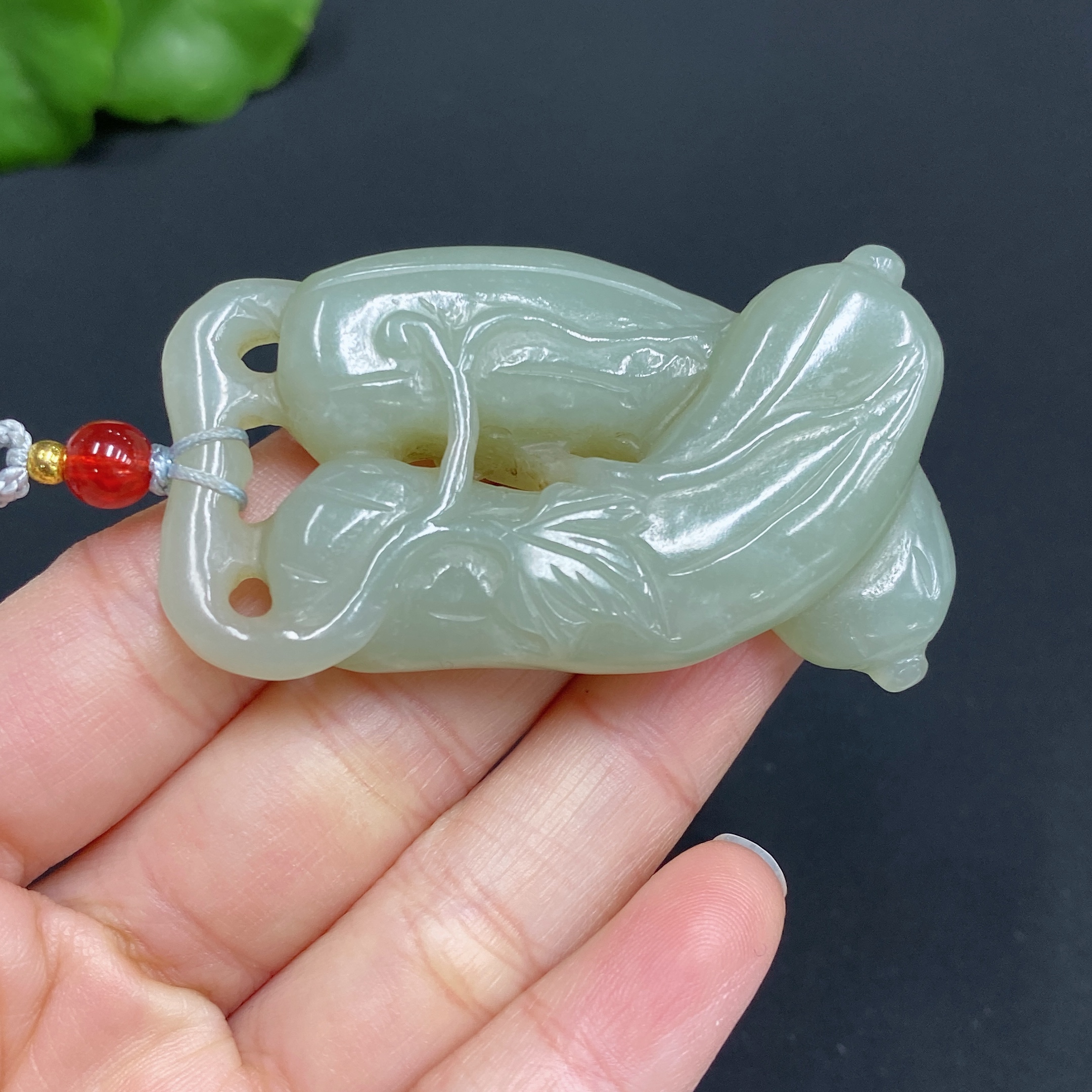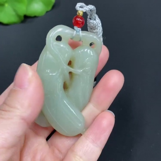 Hetian Jade Pendant, Auspicious Melon, Total Weight (including rope): 33.6g