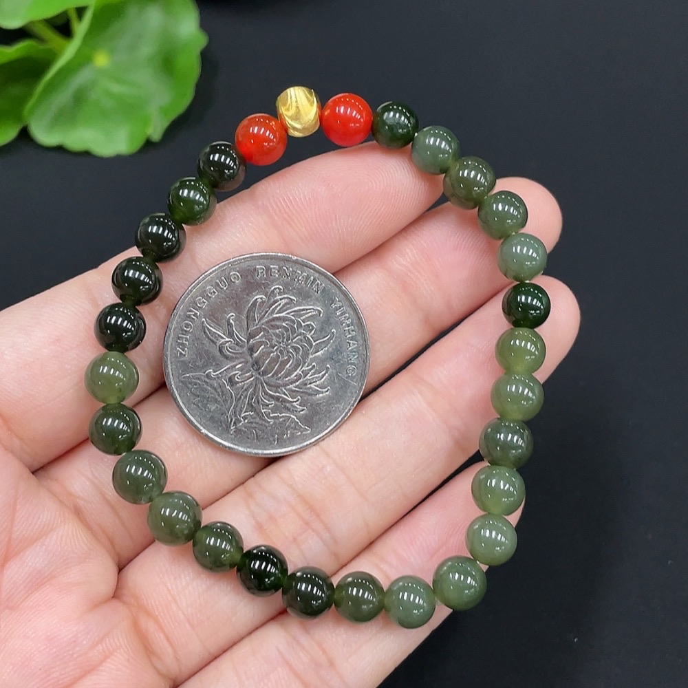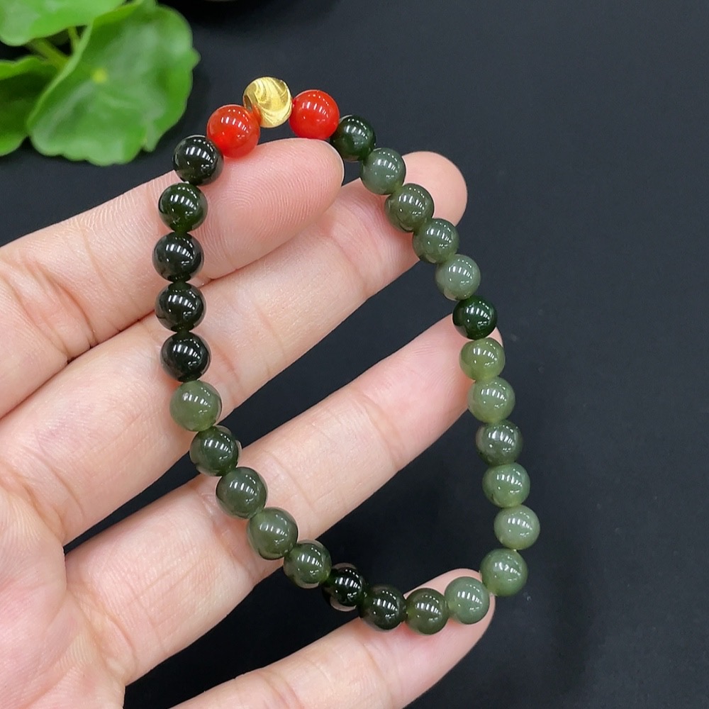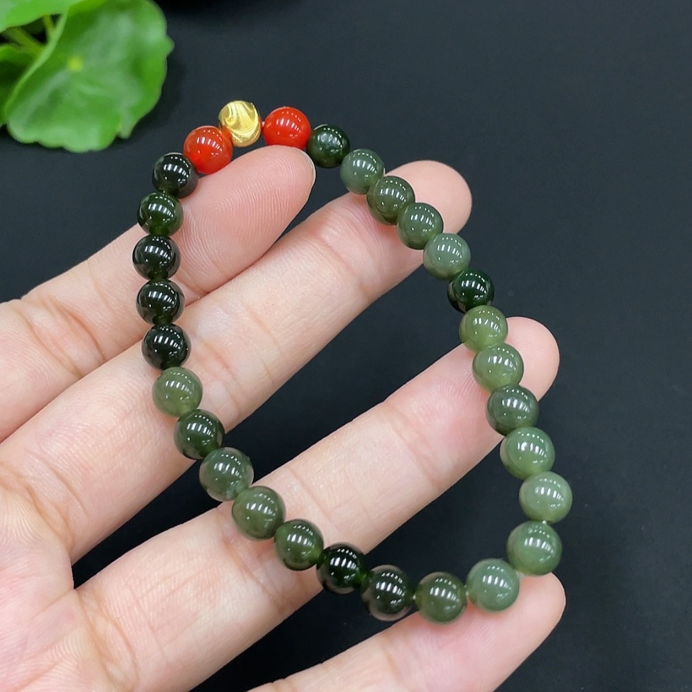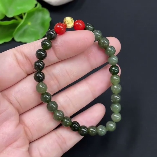 Hetian Jade Bracelet, approx. 6mm, with non-Hetian Jade beads, total weight approx. 9.7g