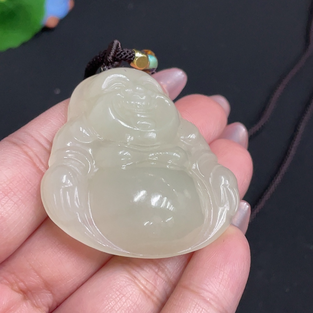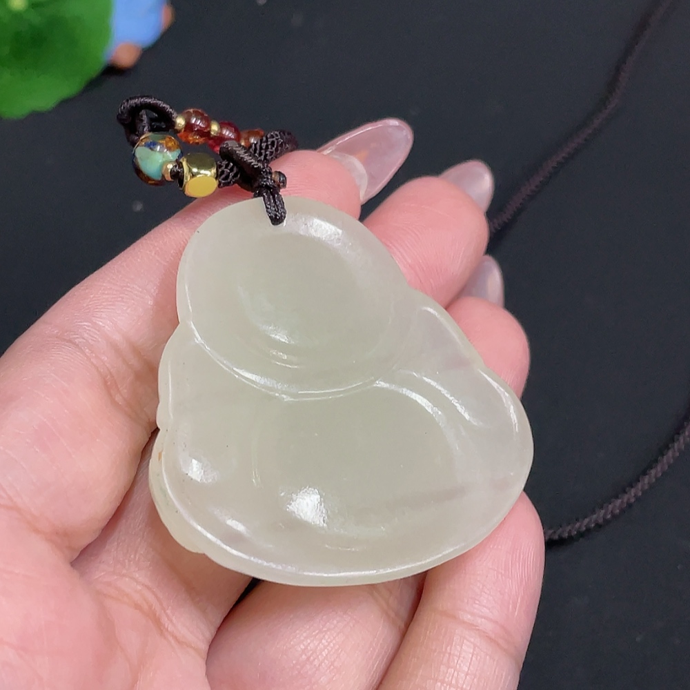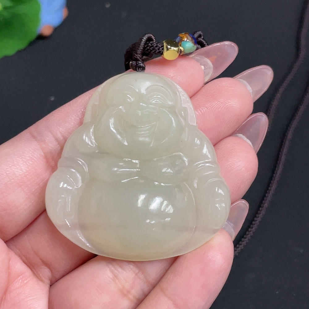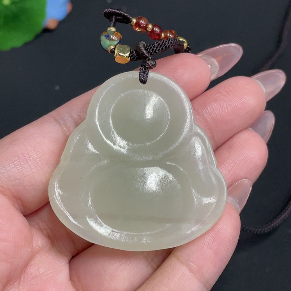 Hetian Jade Pendant - Buddha Figure [Total Weight: approx. 36.2g (including rope)]
