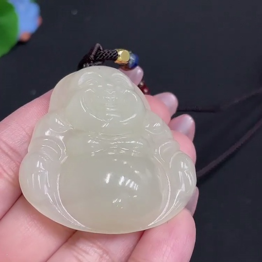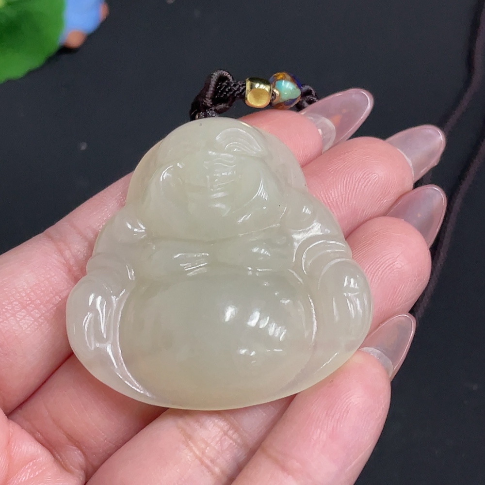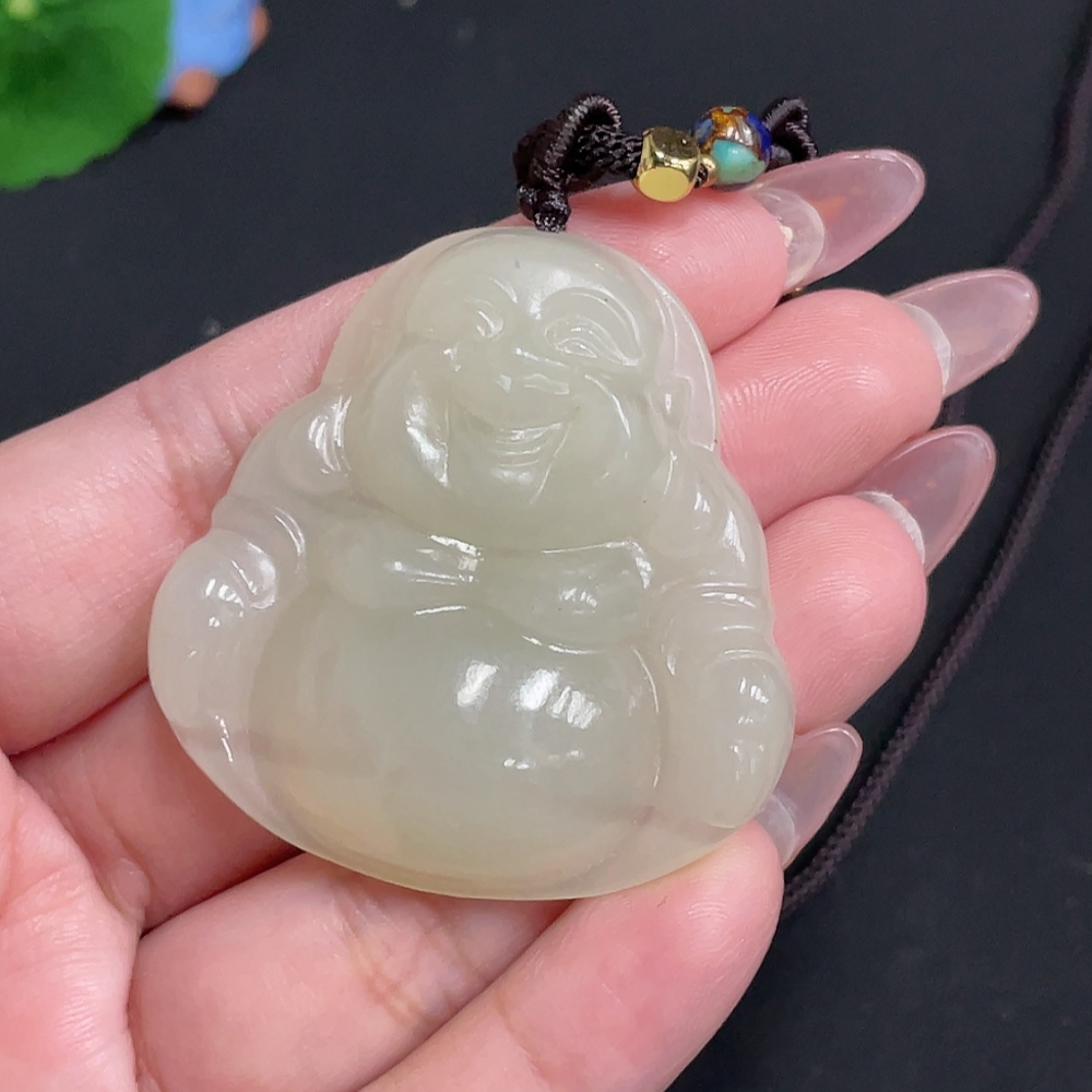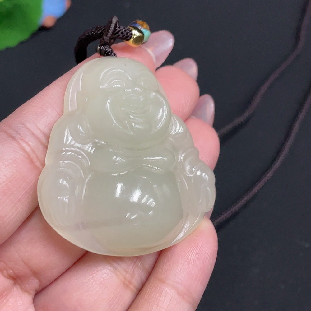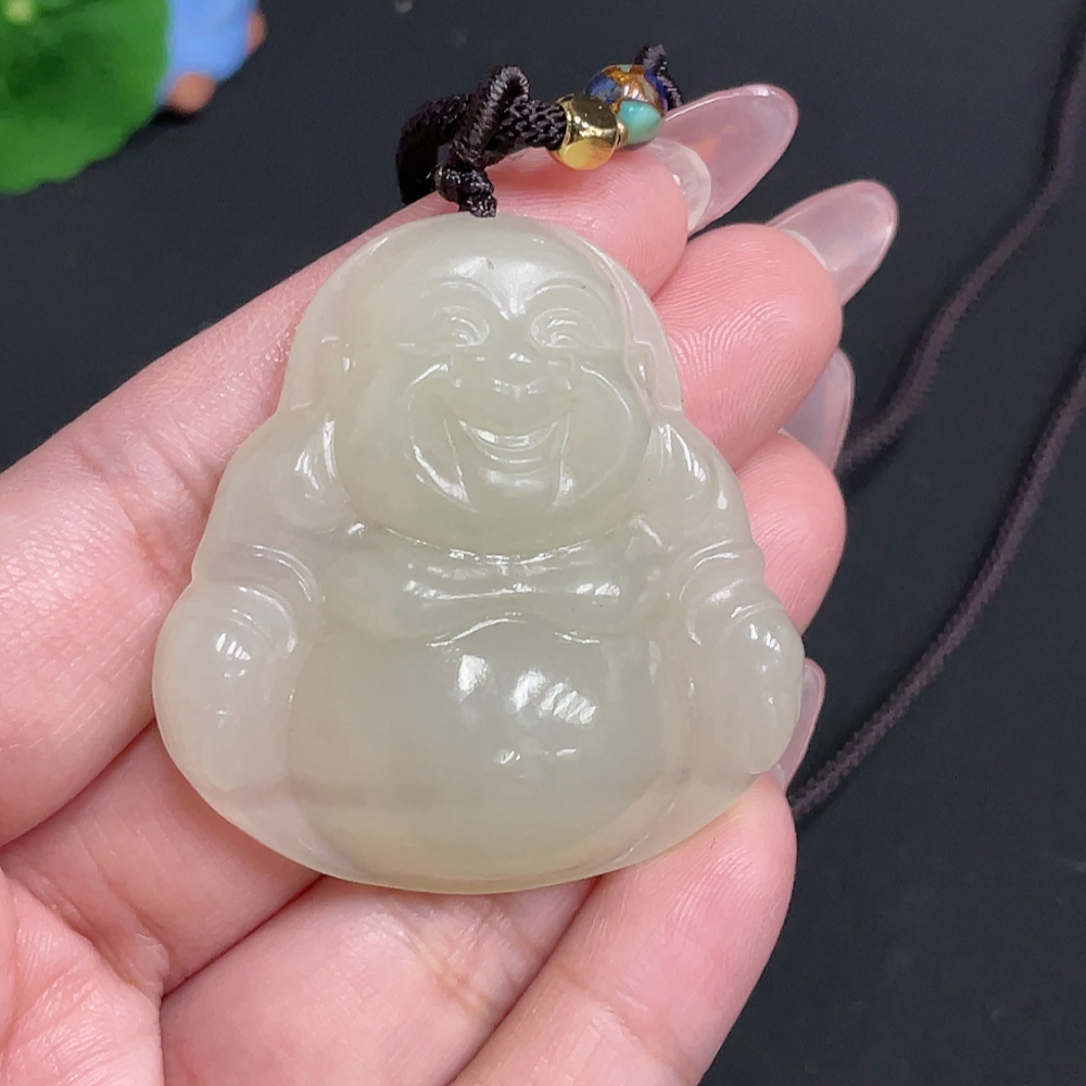 Hetian Jade Pendant - Buddha Figure [Total Weight: approx. 36.2g (including rope)]