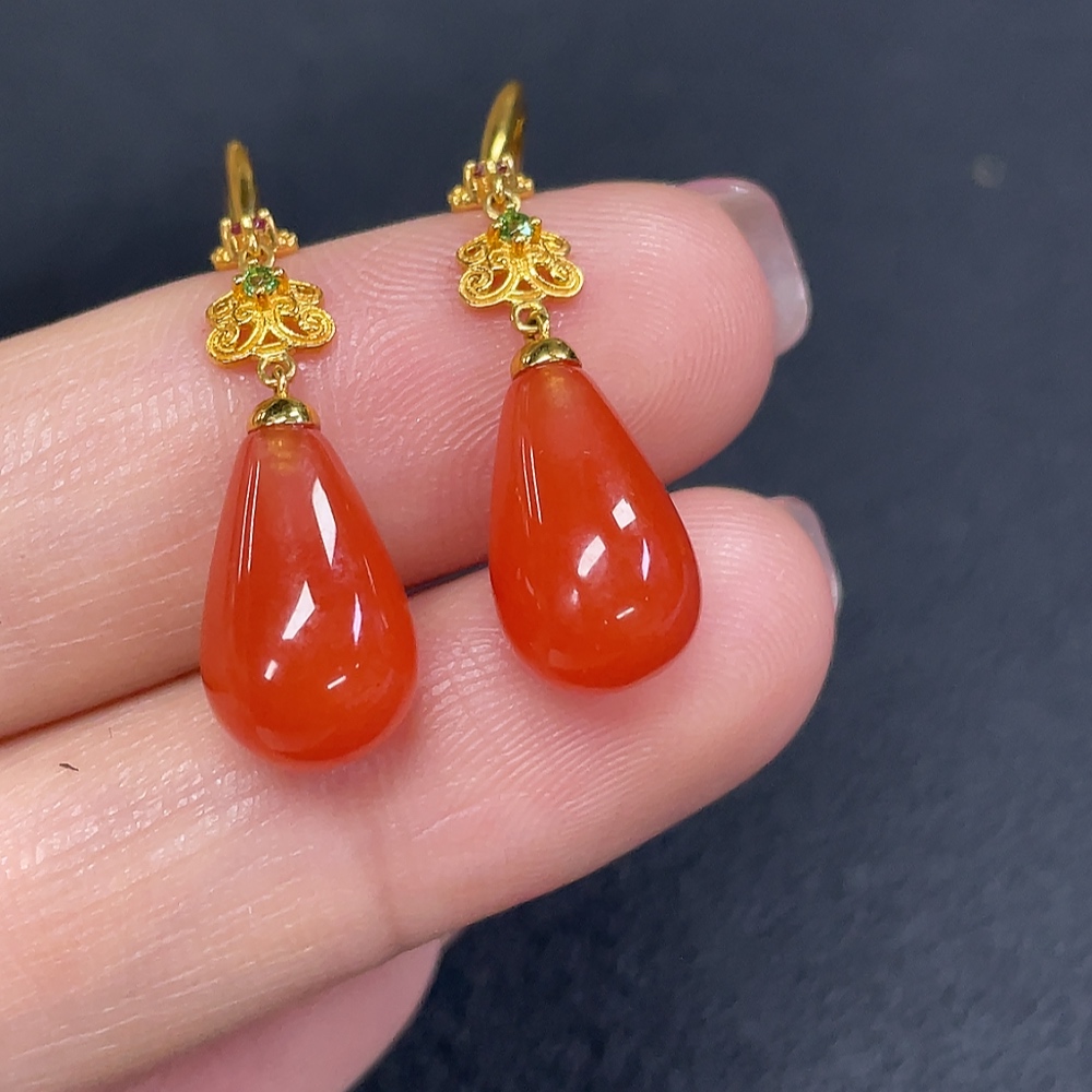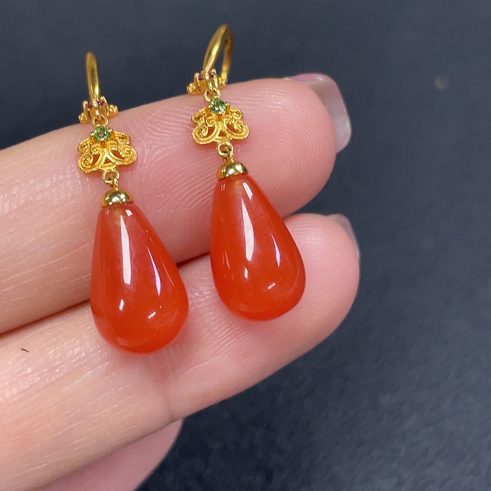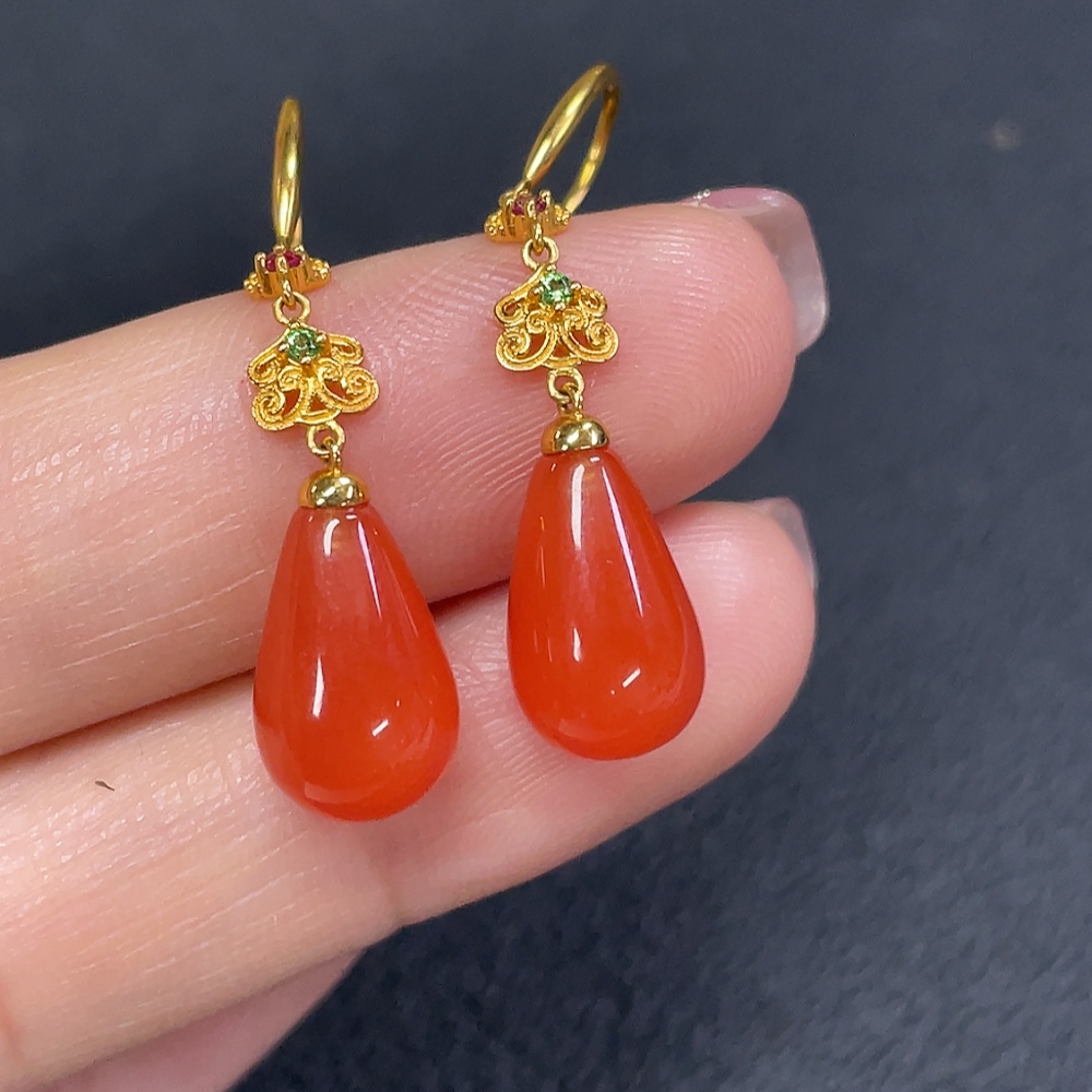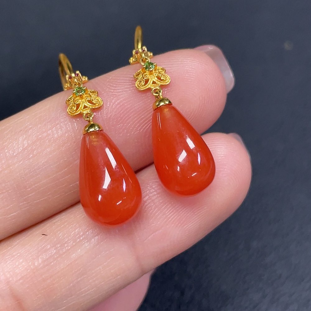 Red Agate Earrings 18K Gold Total Weight Approx. 3.53g