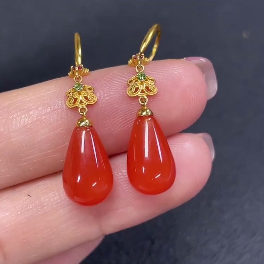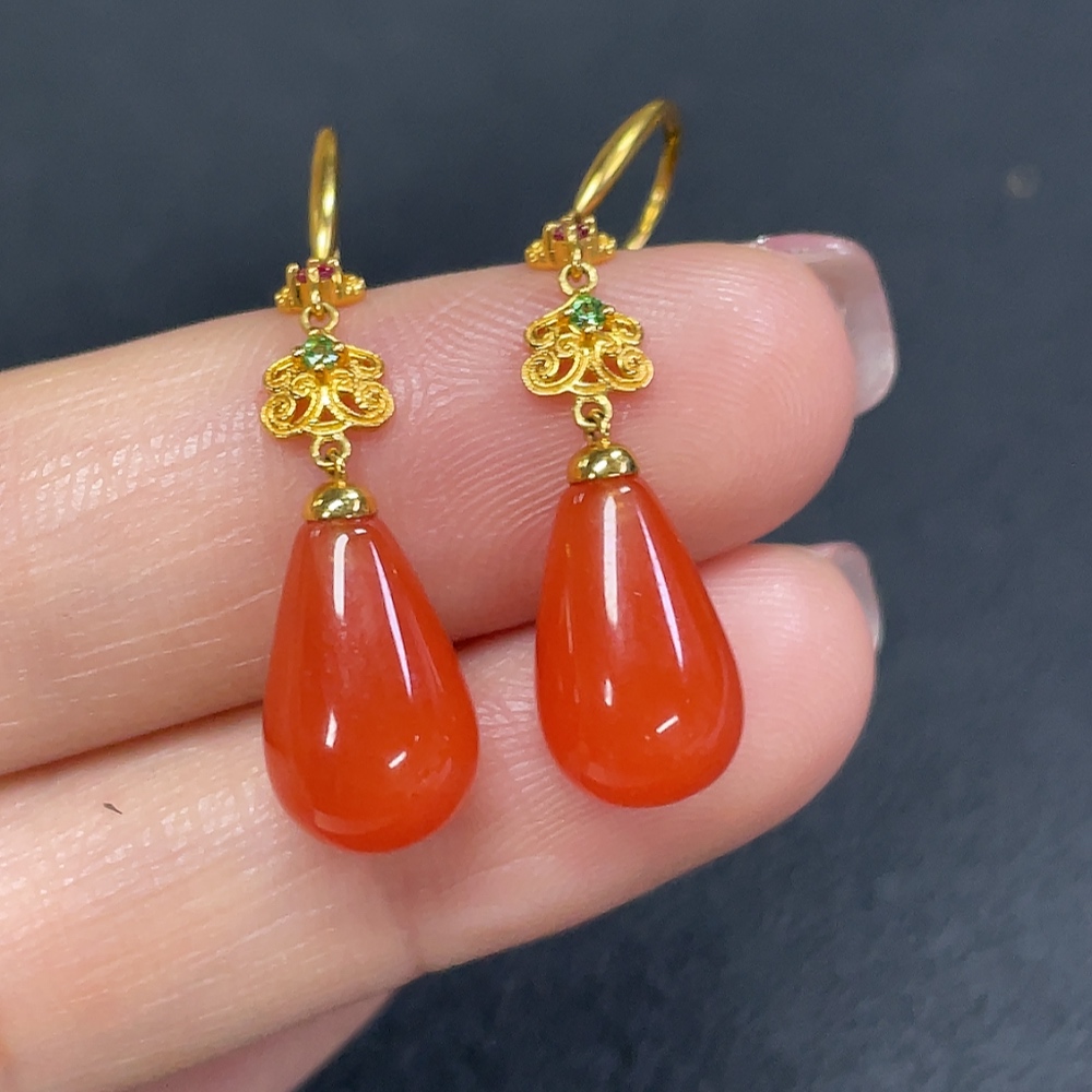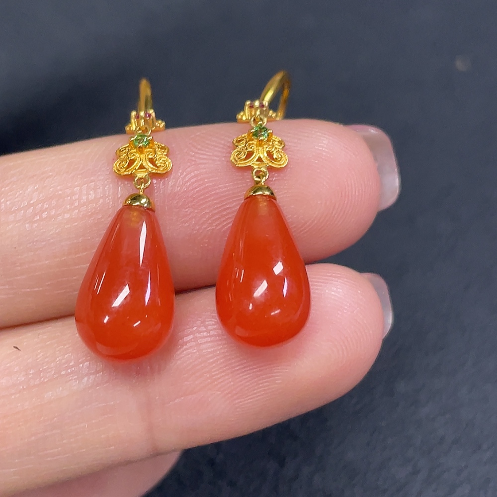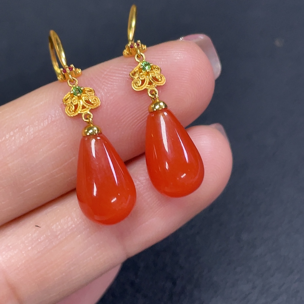 Red Agate Earrings 18K Gold Total Weight Approx. 3.53g