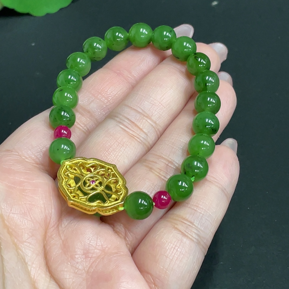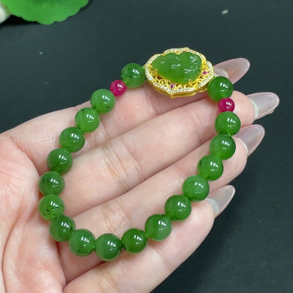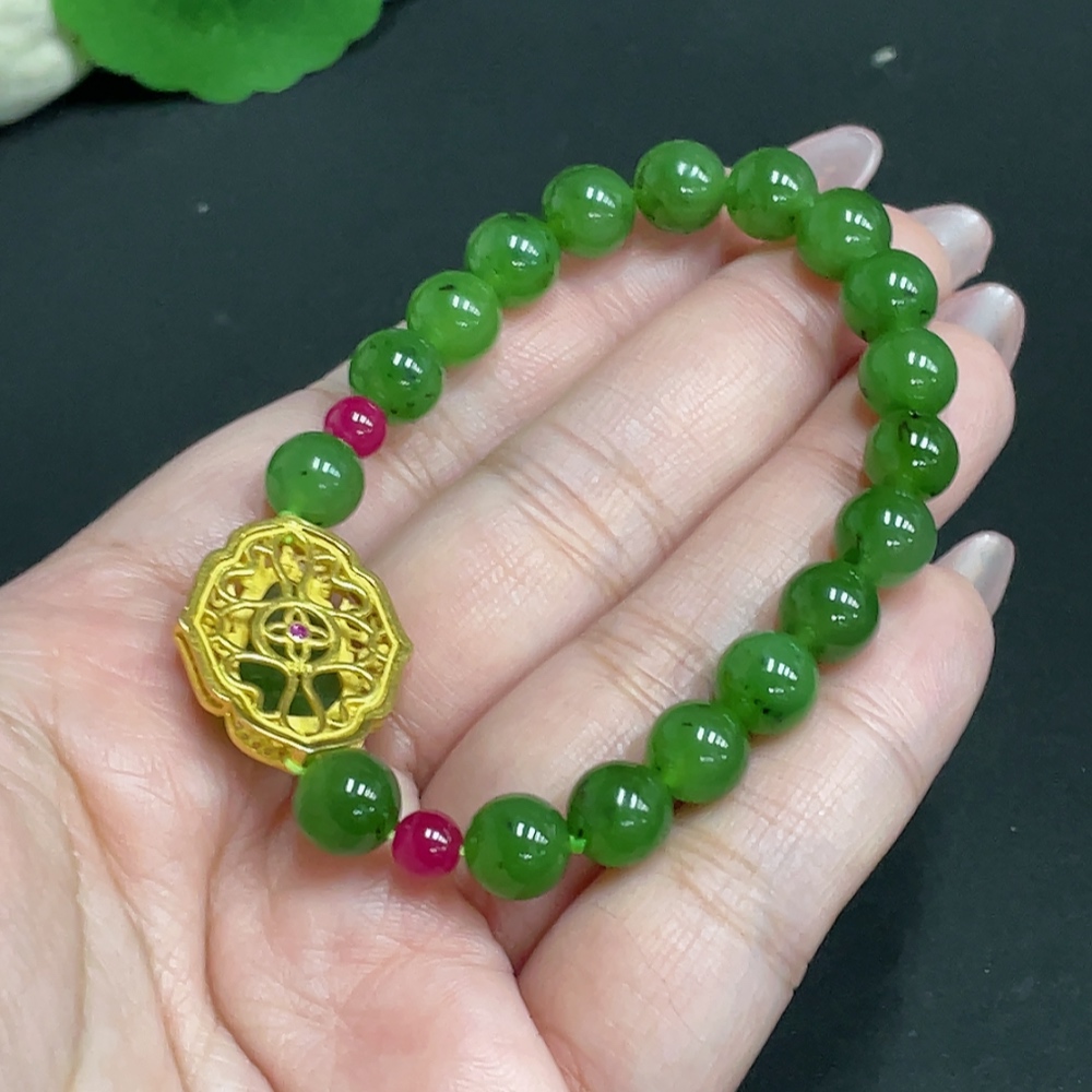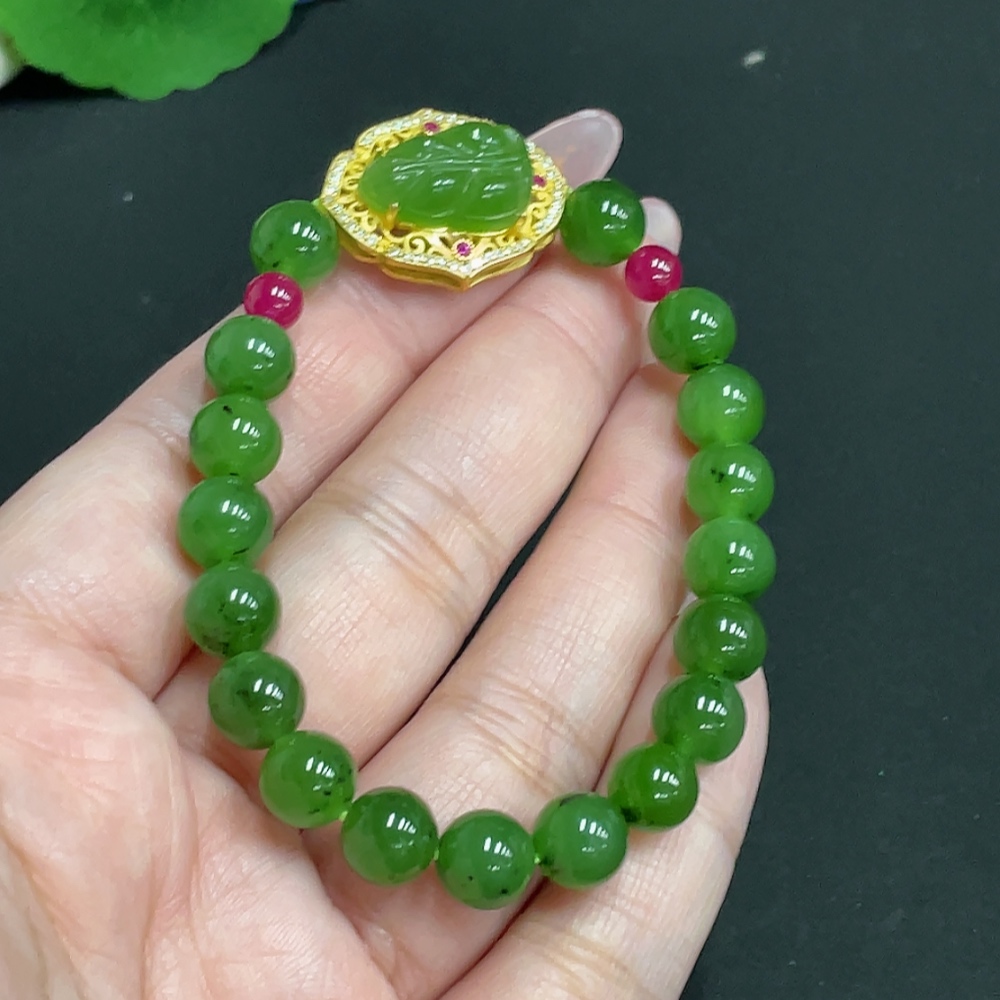 Trezaar - Hetian Jade Inlaid Bracelet Leaf Approx.7.9mm Beads Not Hetian Jade Total Weight Approx.19.4g Non-Gold