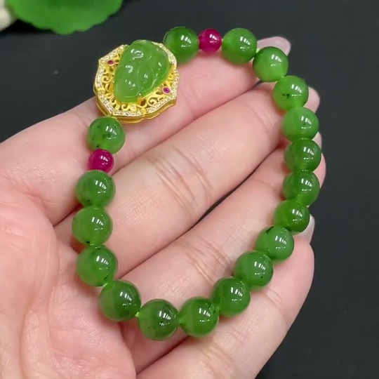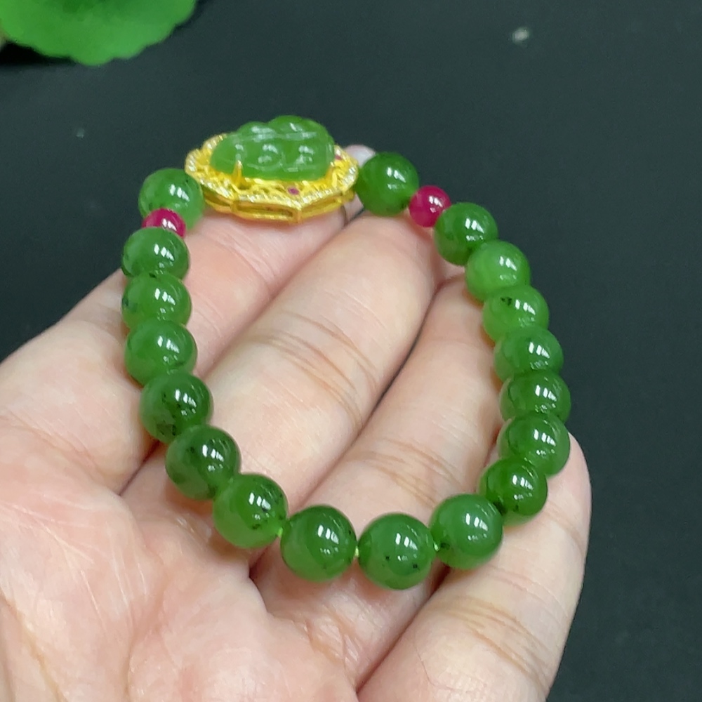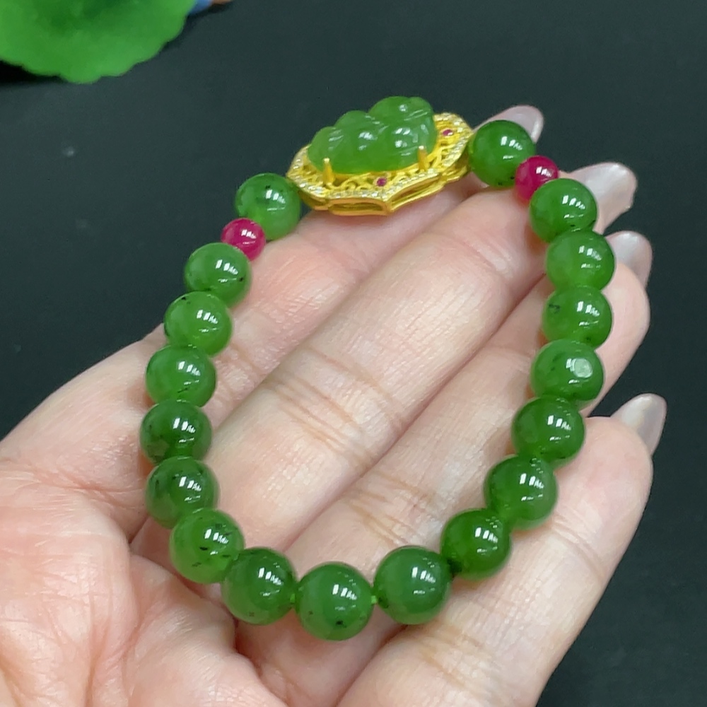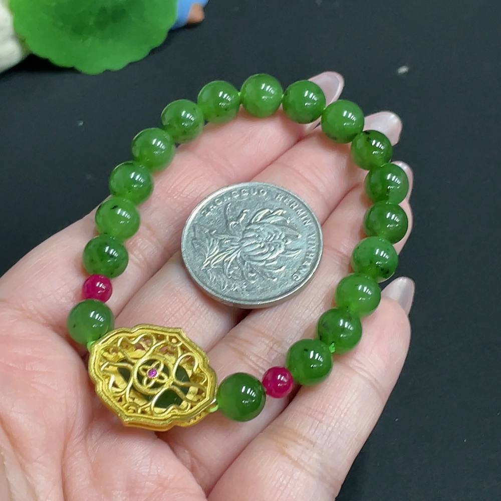 Trezaar - Hetian Jade Inlaid Bracelet Leaf Approx.7.9mm Beads Not Hetian Jade Total Weight Approx.19.4g Non-Gold