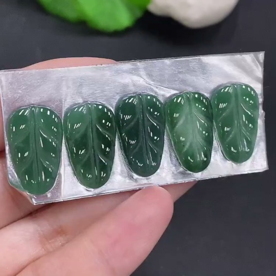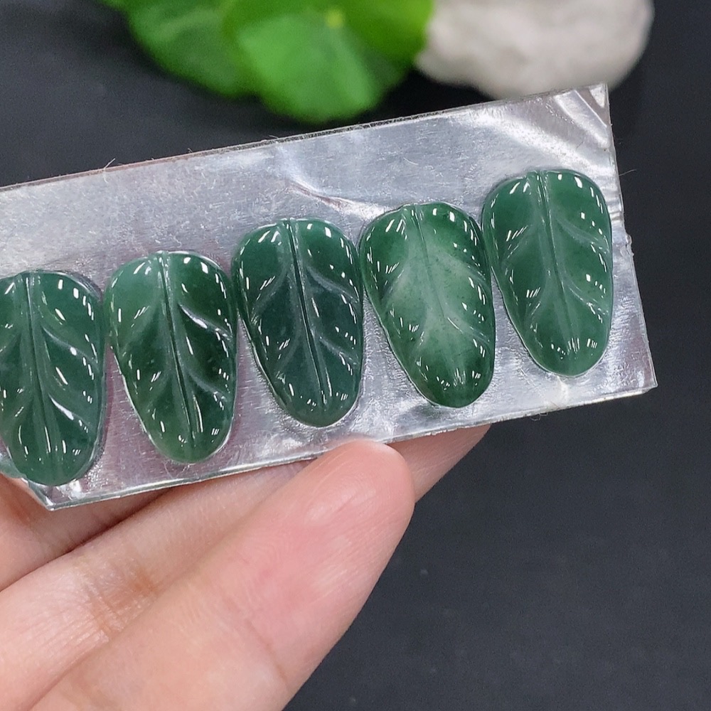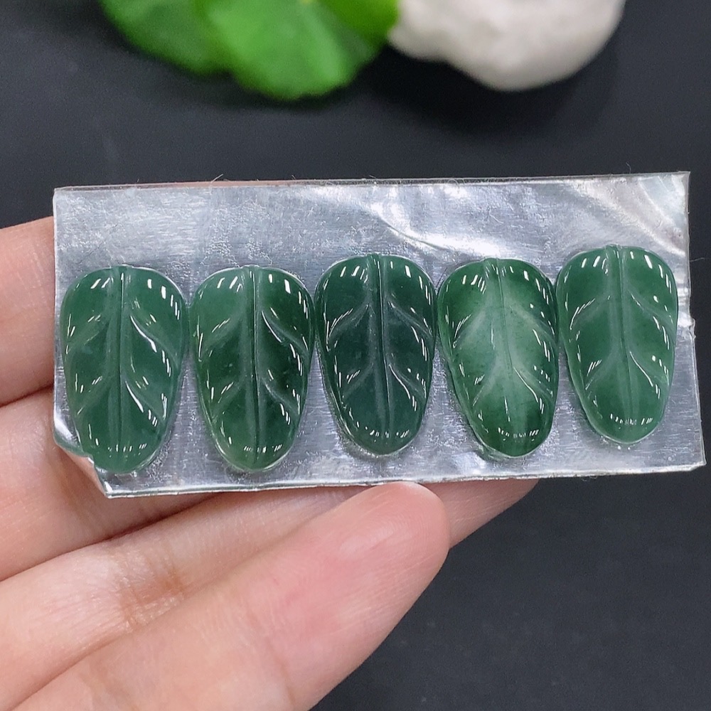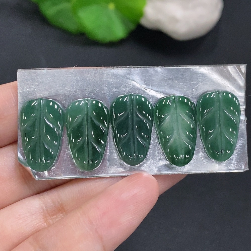 Jadeite Leaf Inlaid Pieces Sell as a Lot
