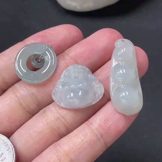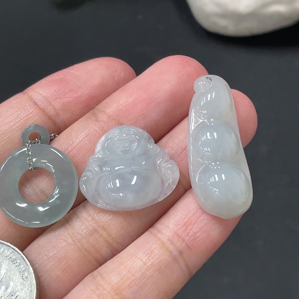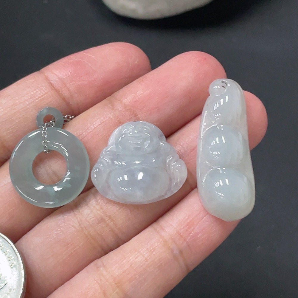 Jadeite Pendant Buddha Donut Fu Dou Necklace Non-Gold Inlaid