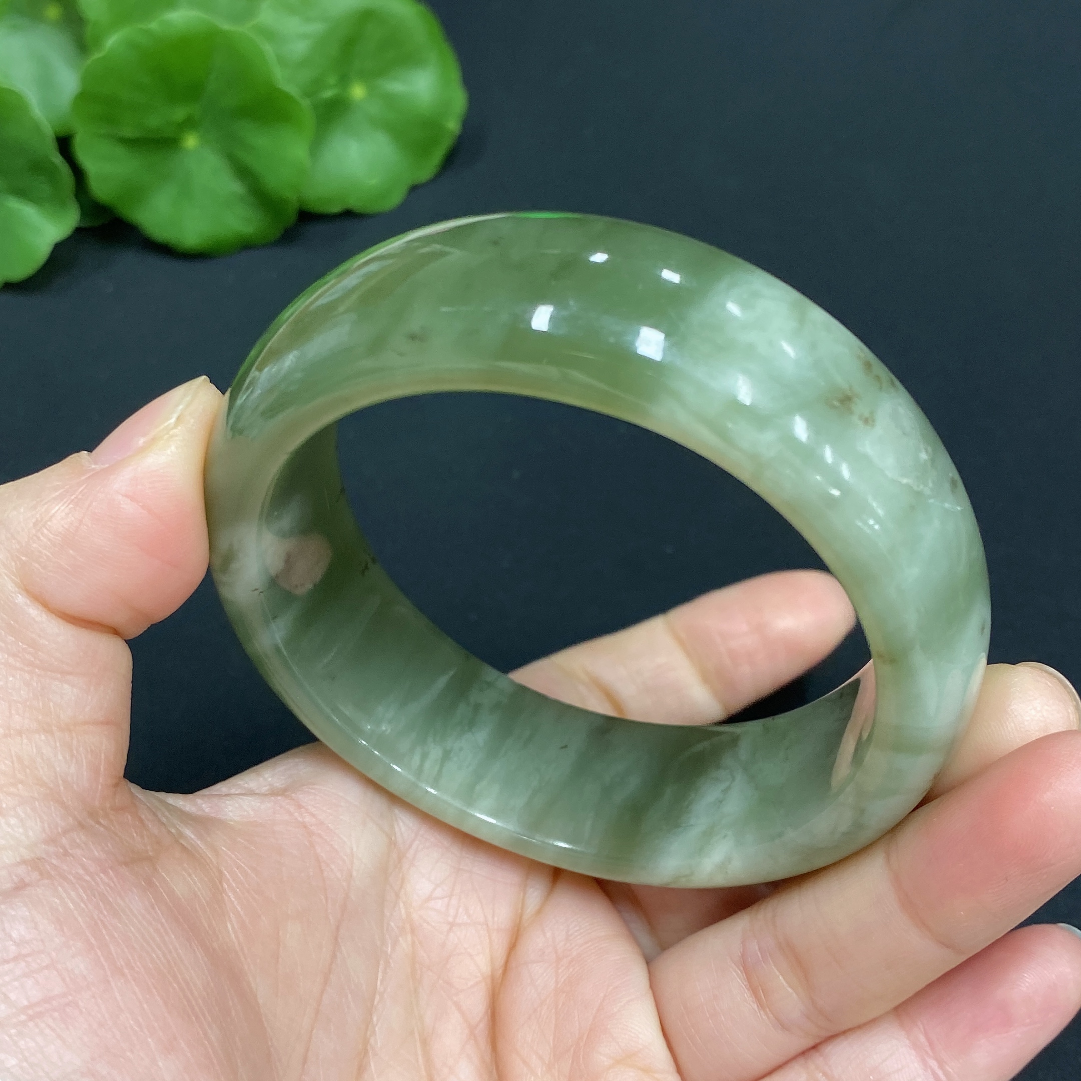 Hetian Jade Round Bracelet (Size 56.7, Total Weight approx. 82.7g, Contains Other Mineral Components)