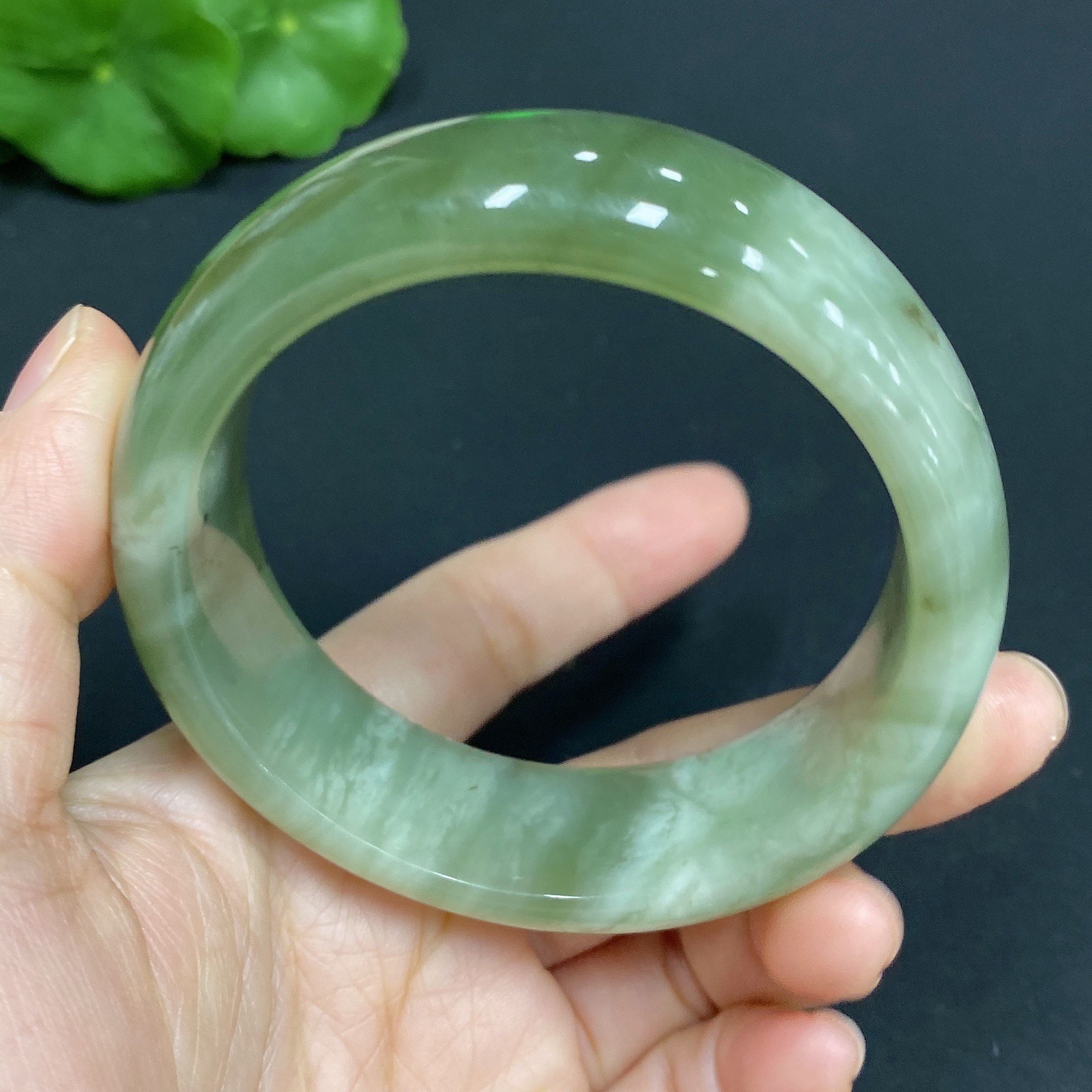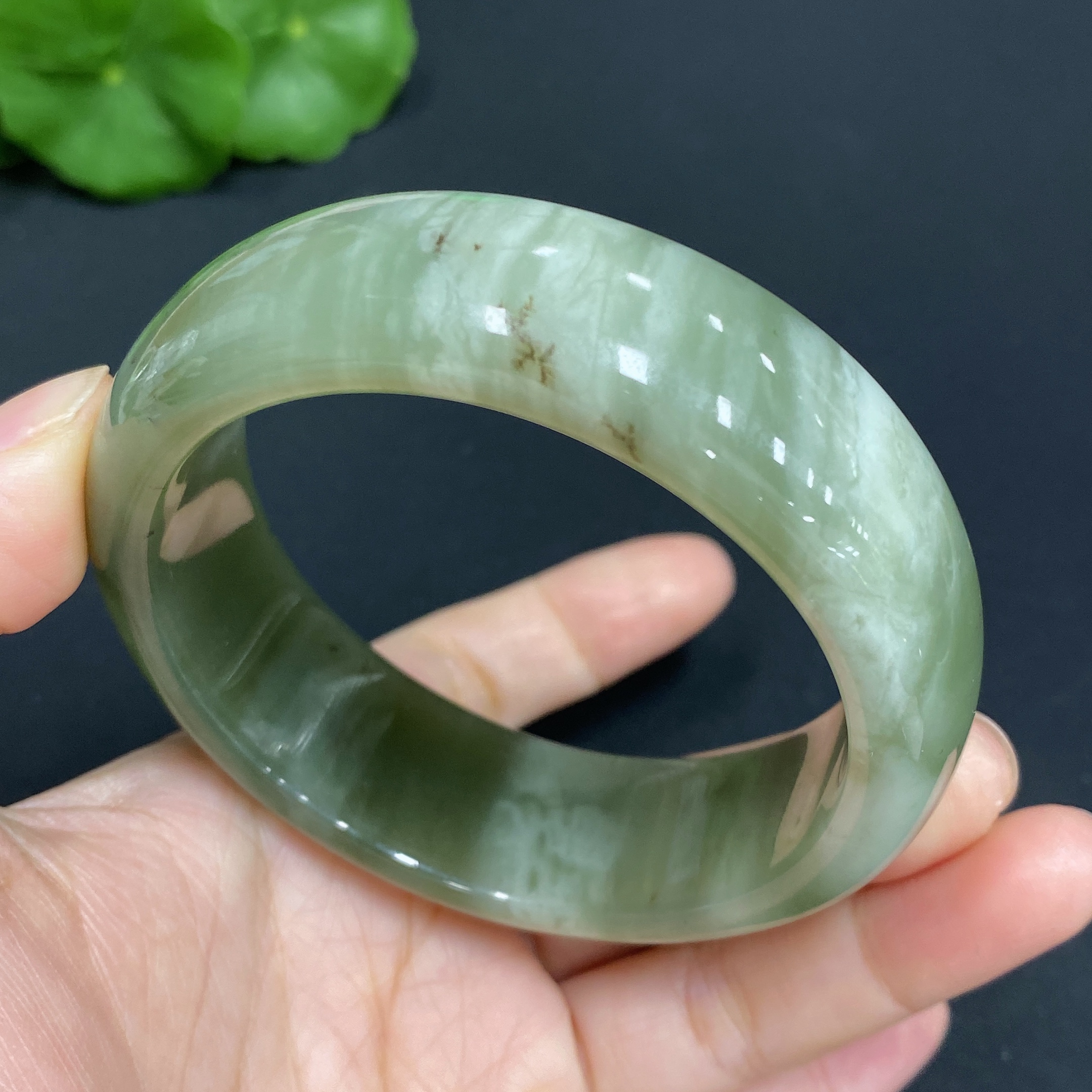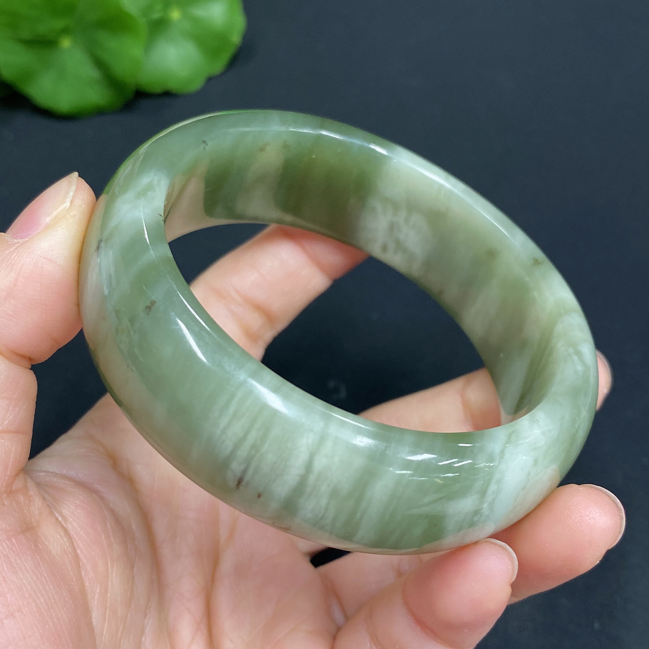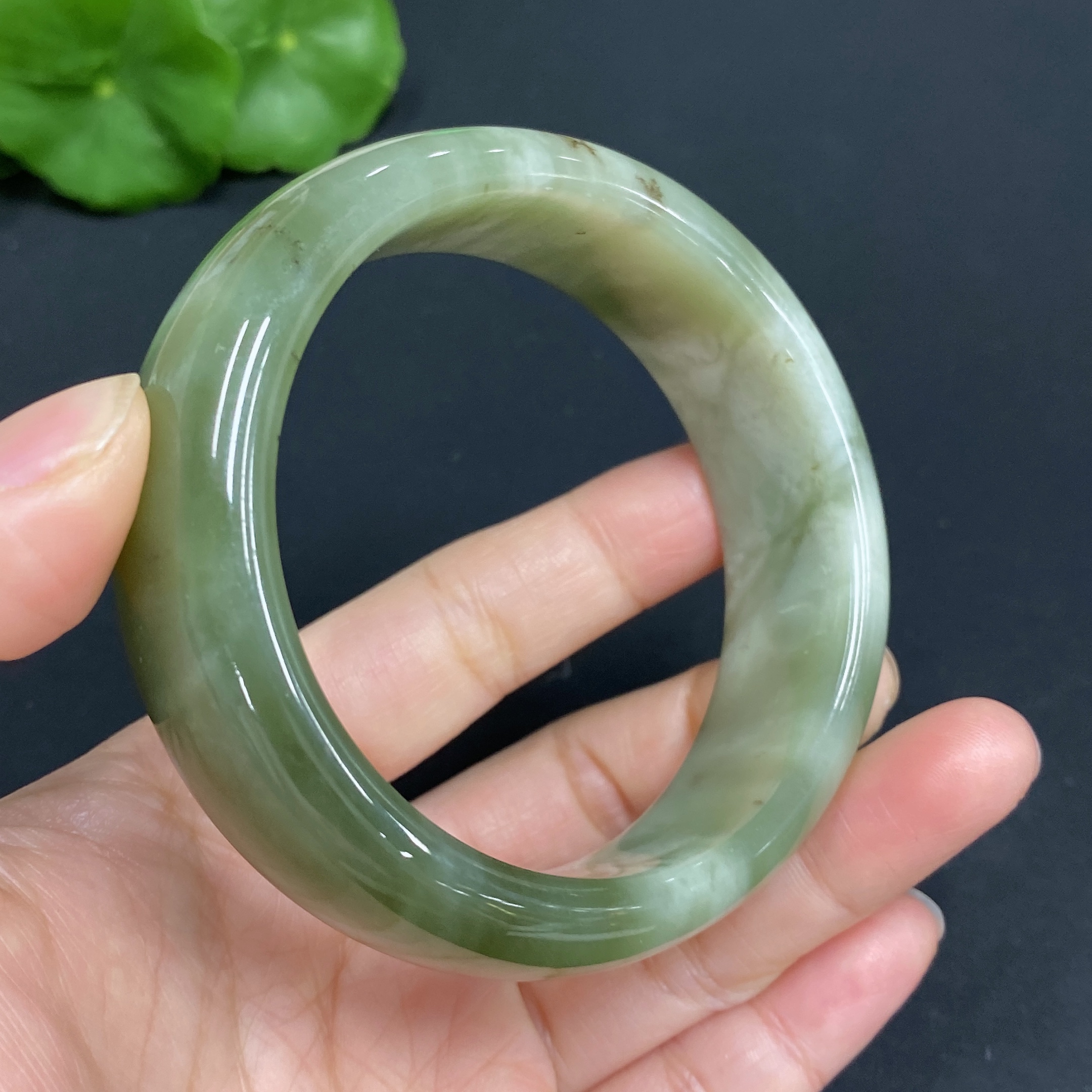 Hetian Jade Round Bracelet (Size 56.7, Total Weight approx. 82.7g, Contains Other Mineral Components)