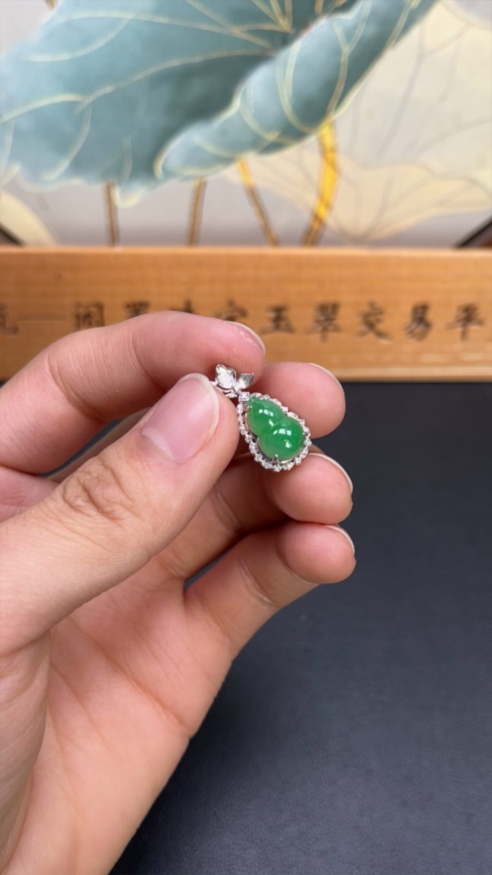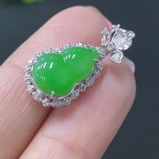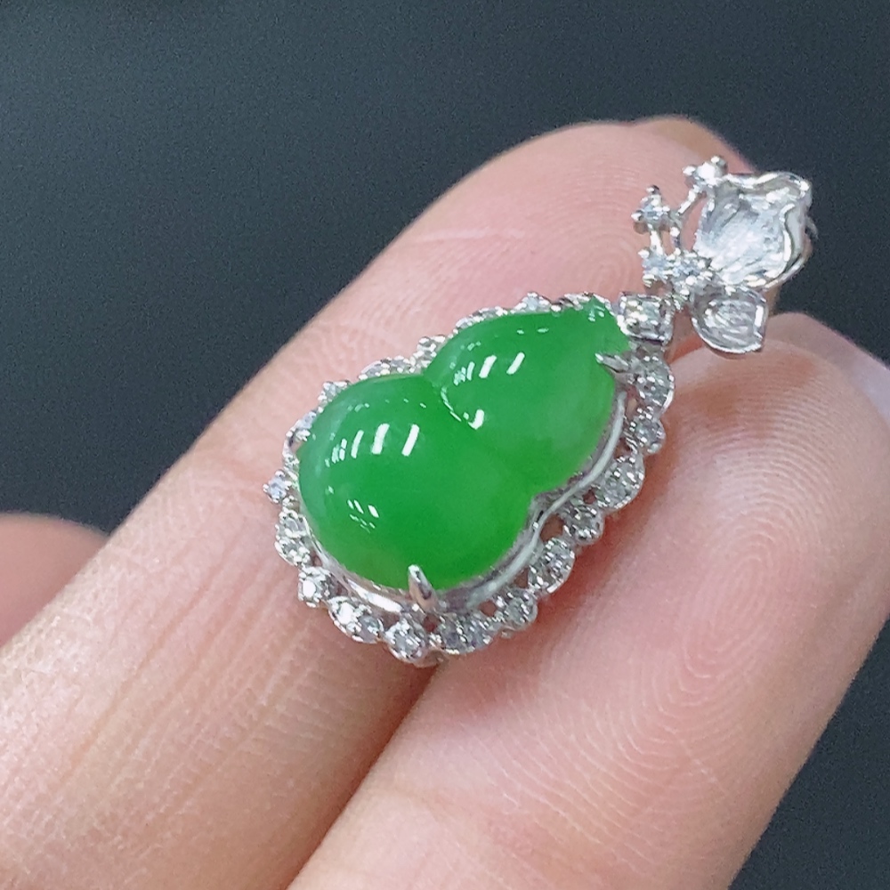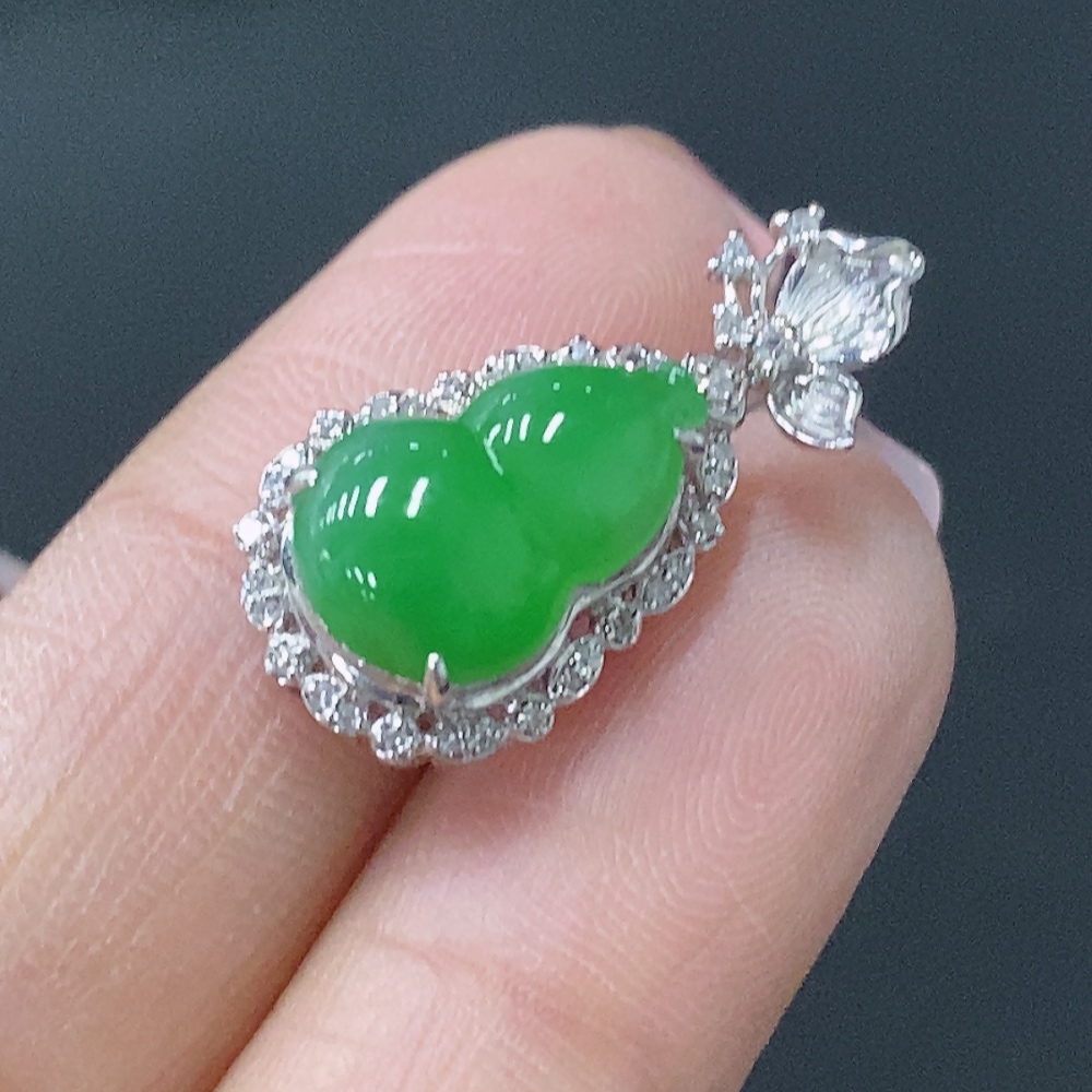Jadeite Inlaid Calabash Pendant 18k Total Weight Approx. 2.28g