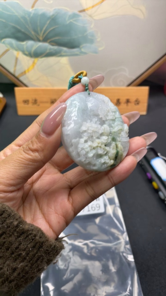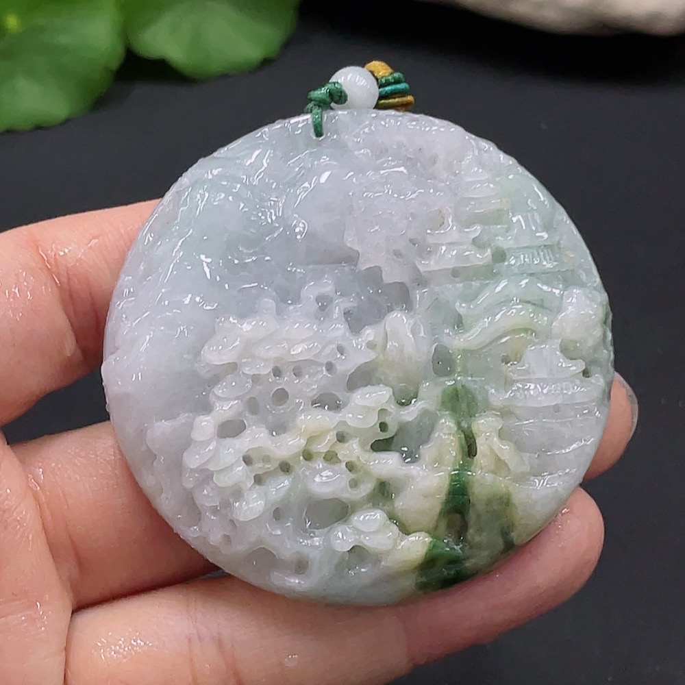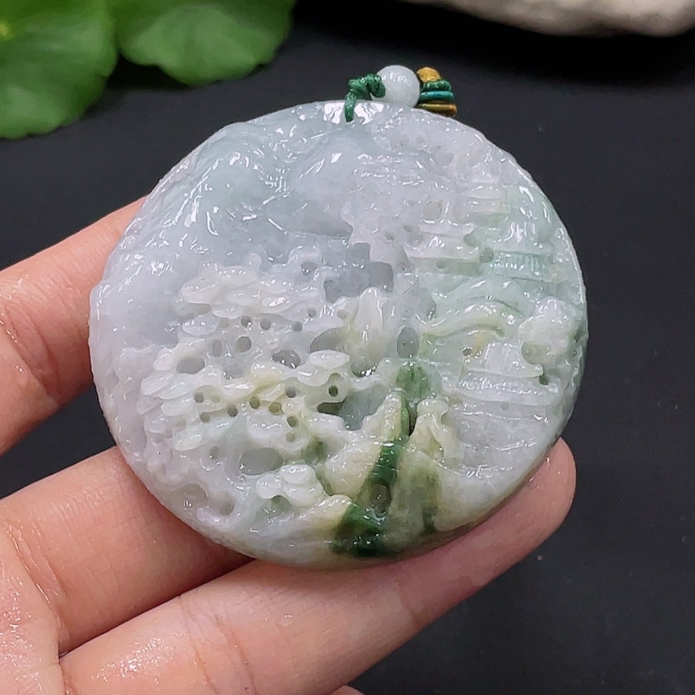 Jadeite landscape pendant total weight about 59.84g