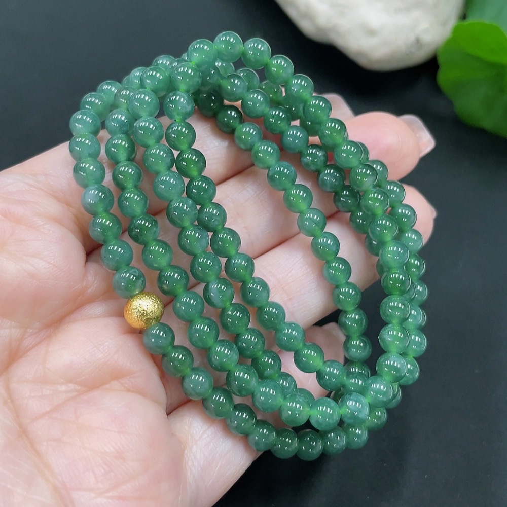 Jadeite Bead Necklace Approx. 5mm Total Weight About 28.7g (Non-Gold Inlaid)