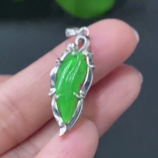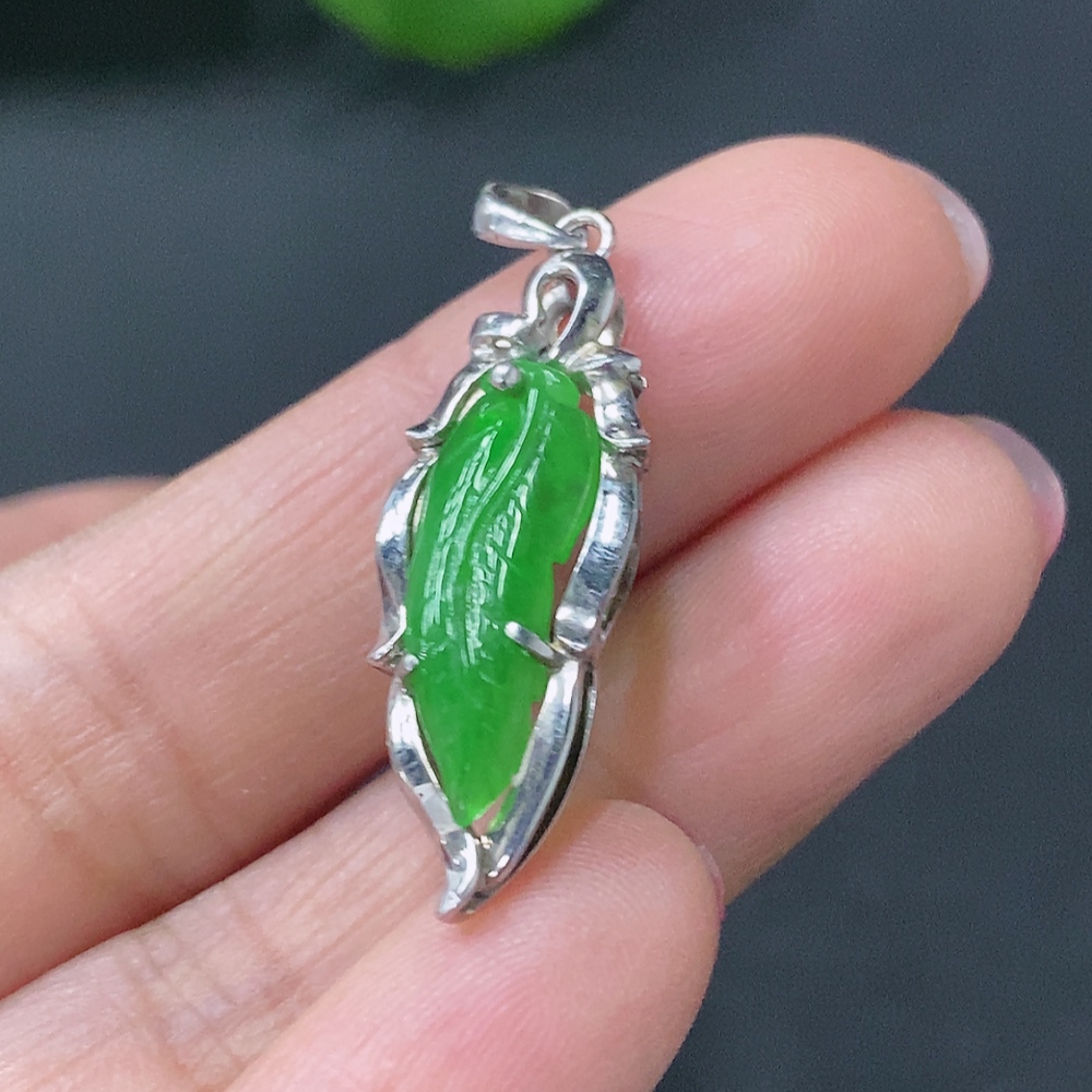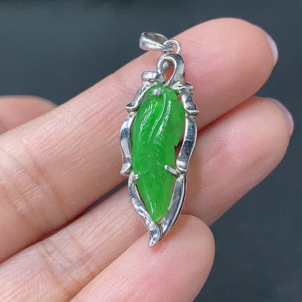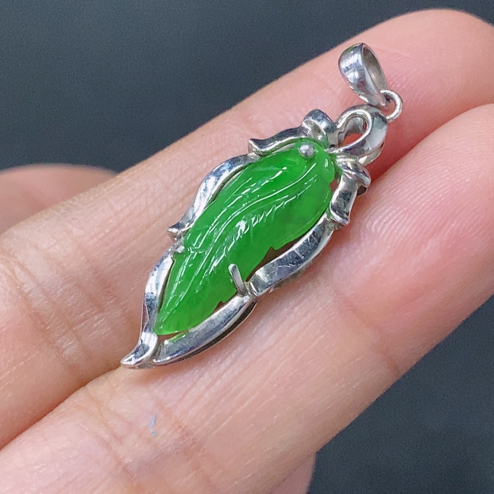 Jadeite Inlaid Pendant Non-Gold Total Weight Approx. 1.63g