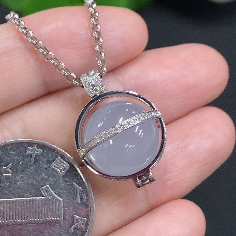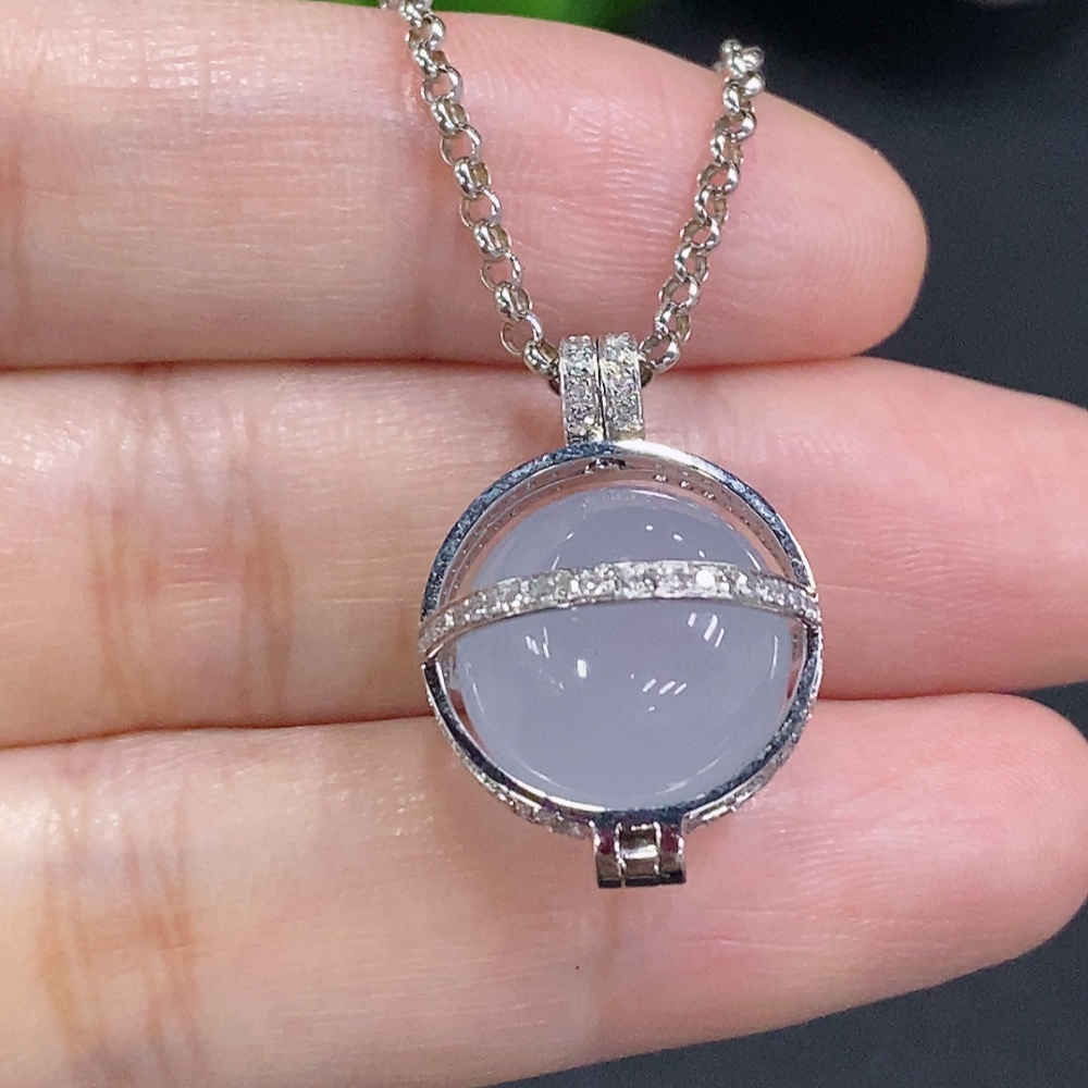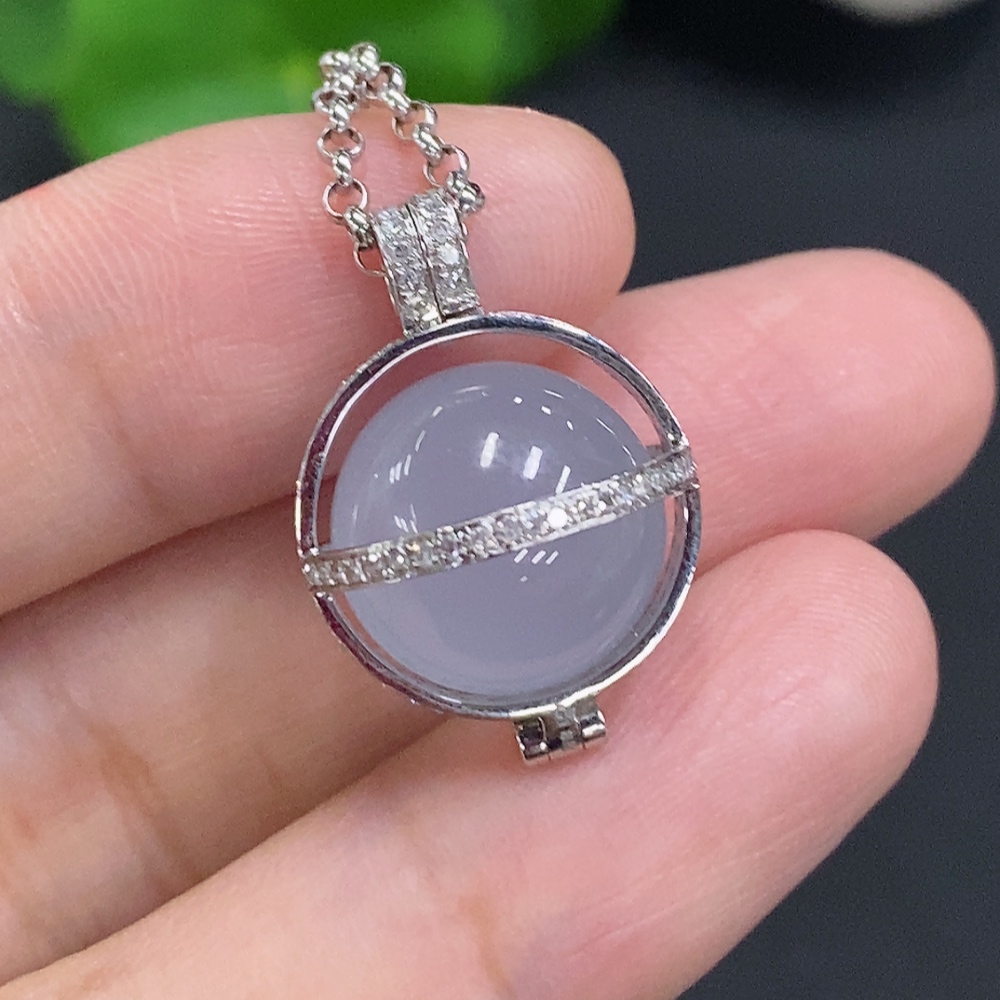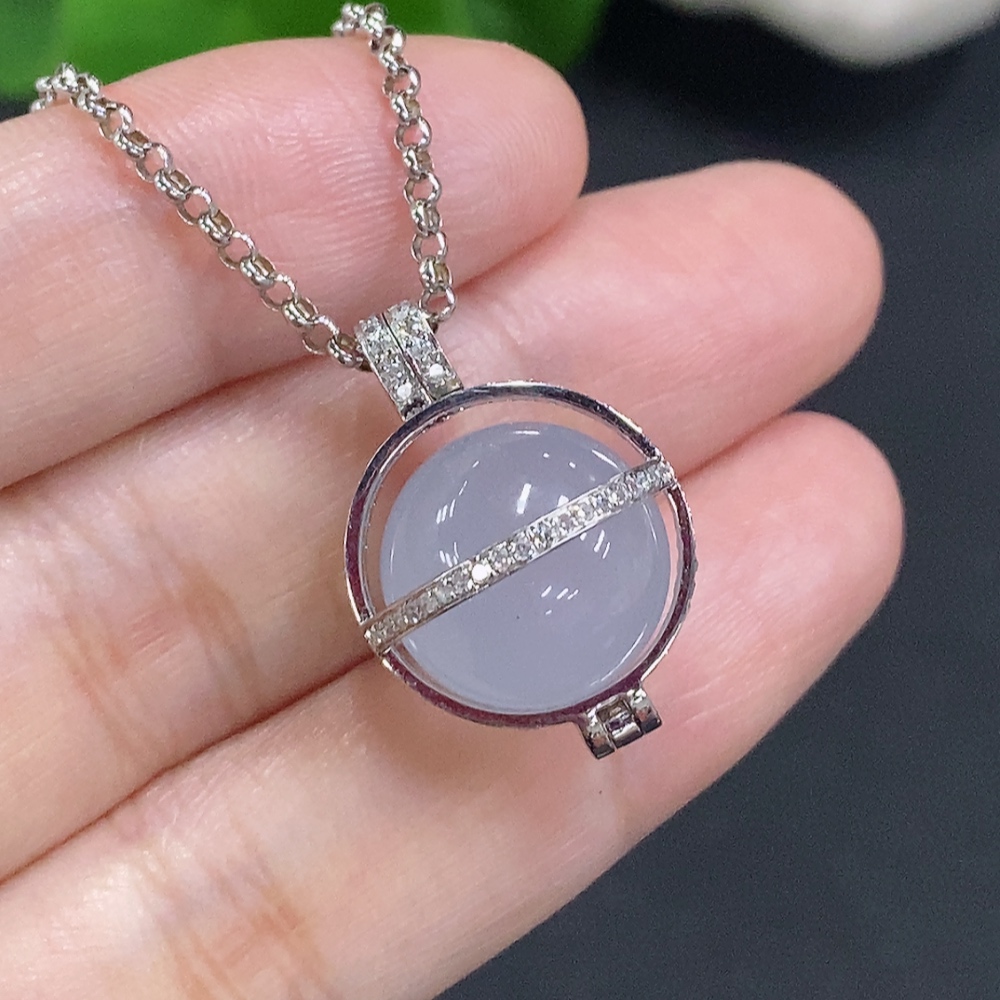 Jadeite Pendant with 18K Gold Setting, Total Weight Including Chain Approximately 10.4g
