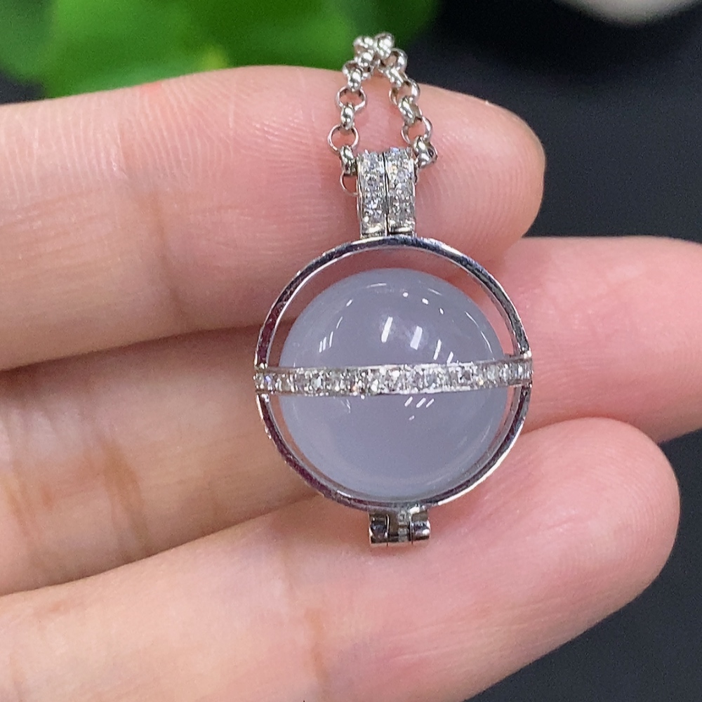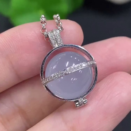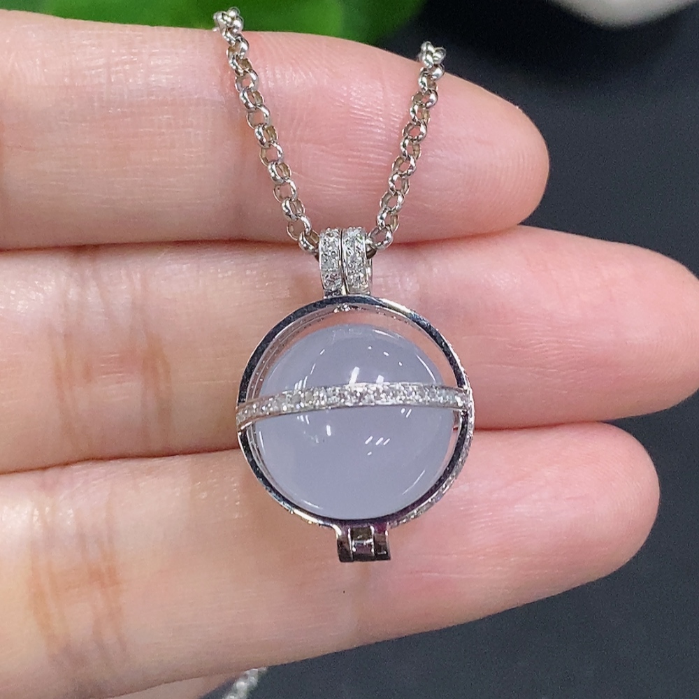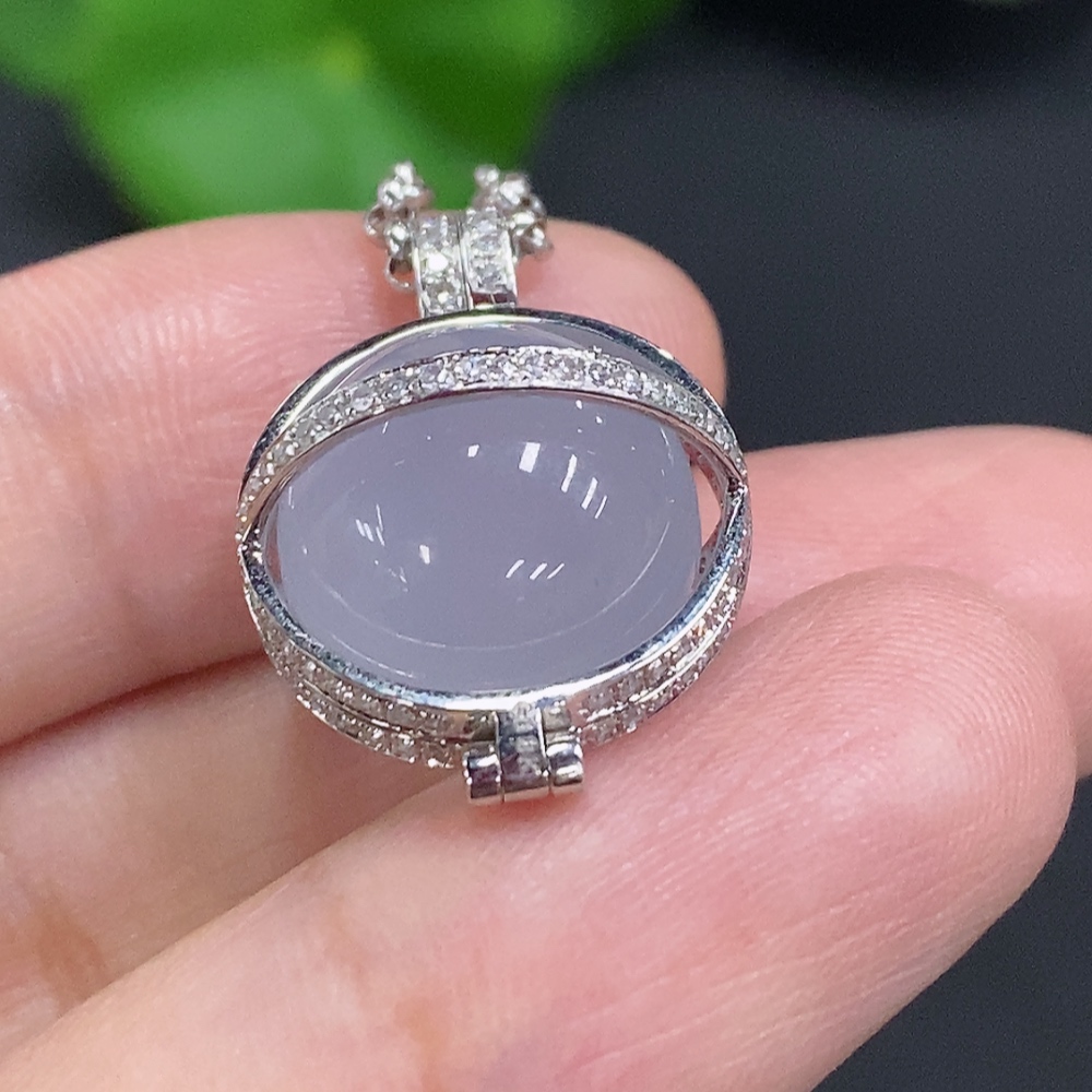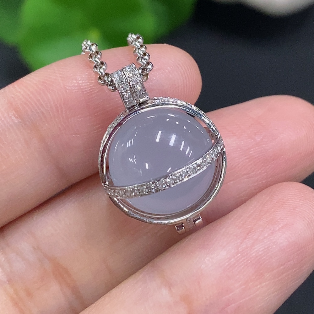 Jadeite Pendant with 18K Gold Setting, Total Weight Including Chain Approximately 10.4g