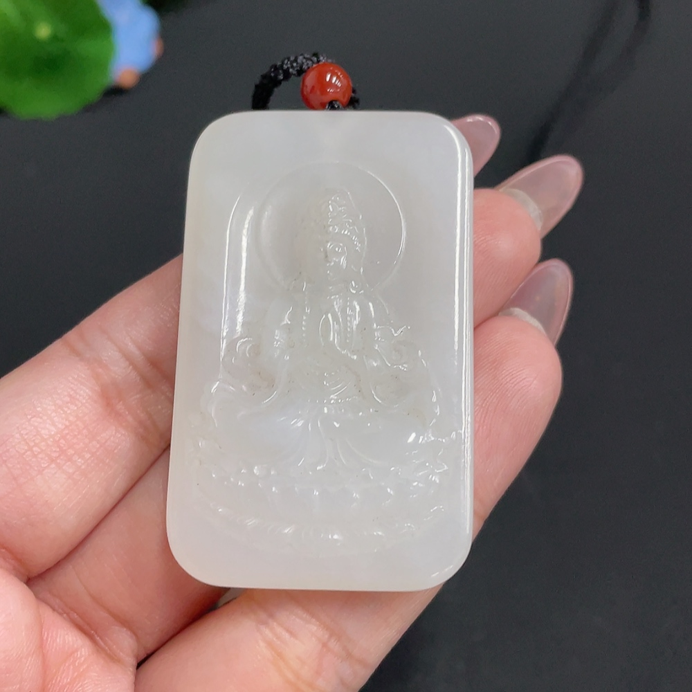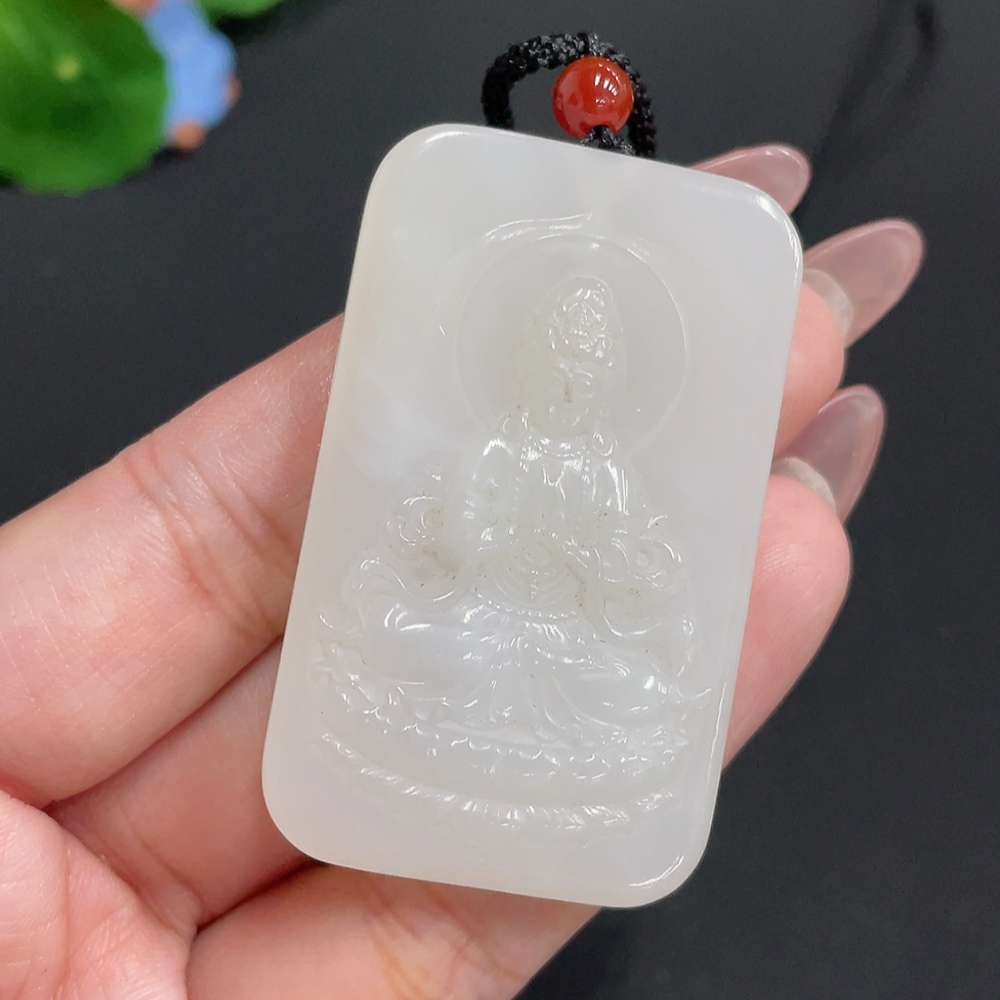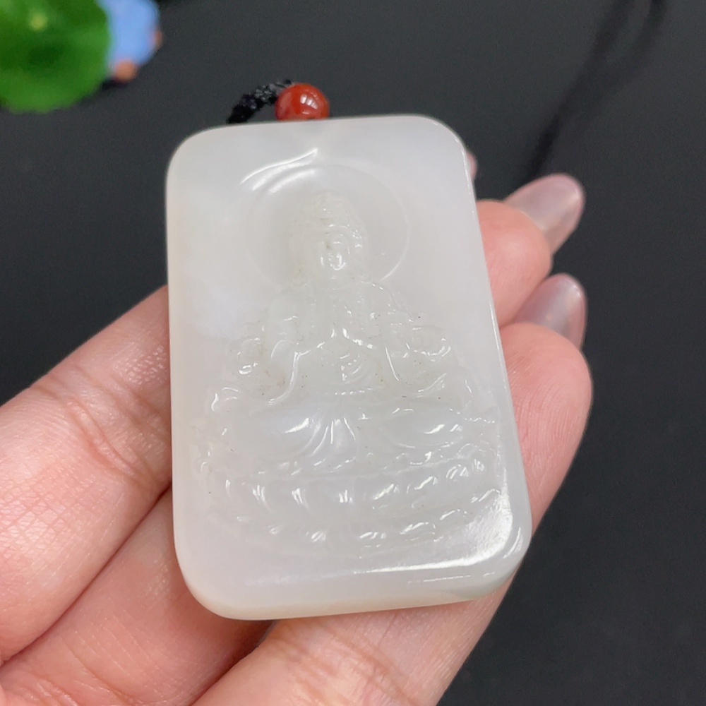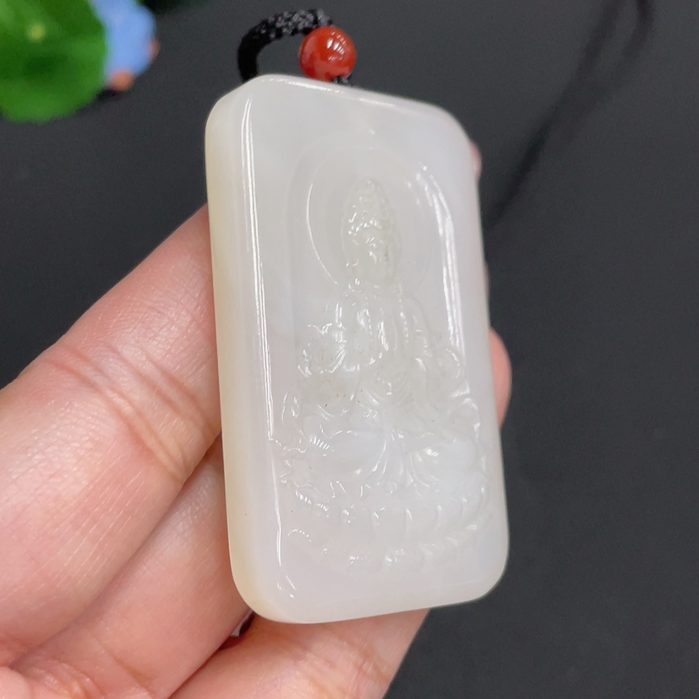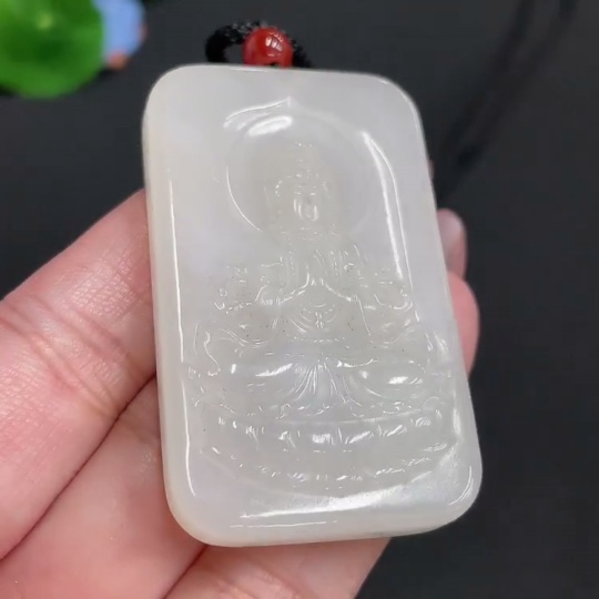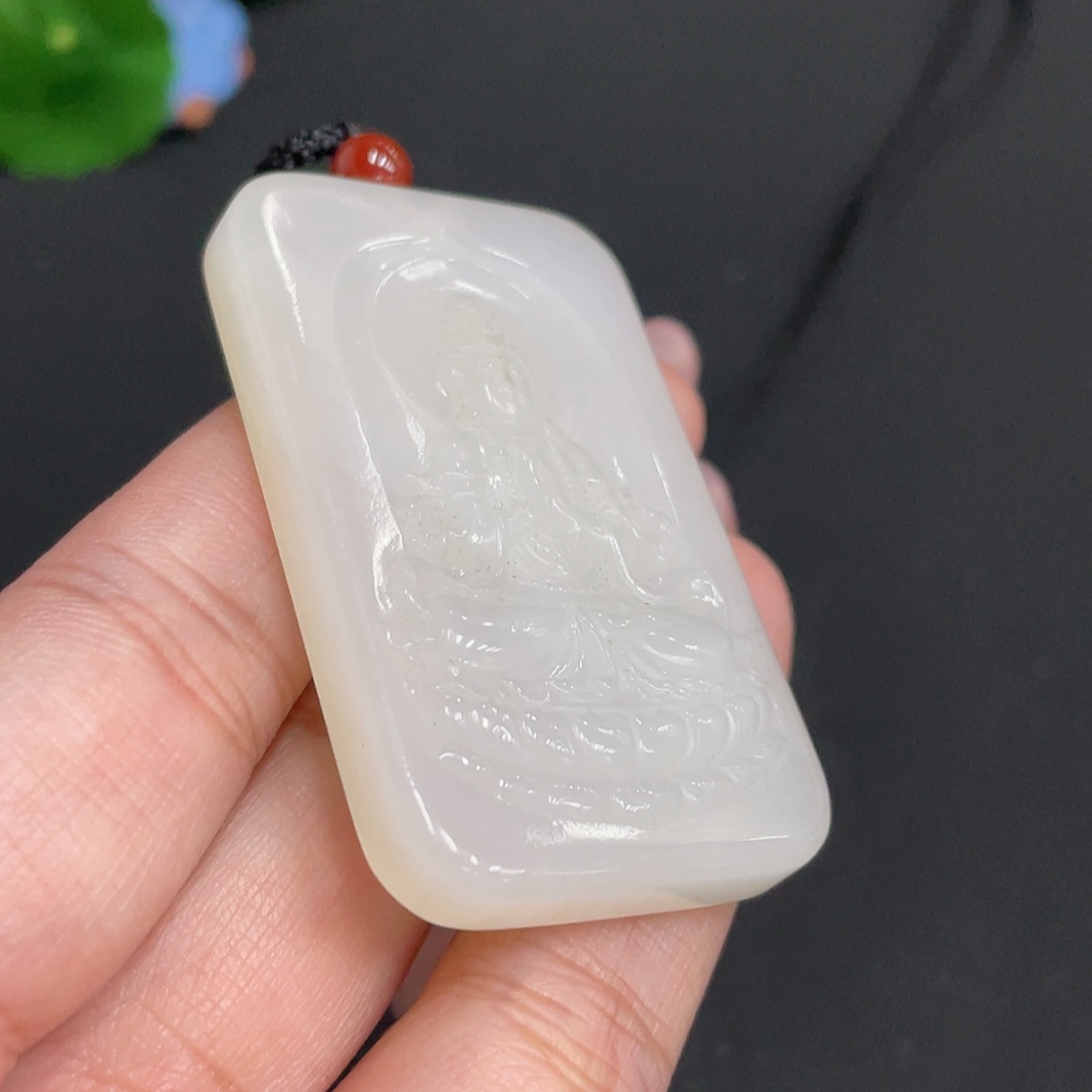 Hetian Jade Pendant Avalokiteshvara Total Weight Approx. [with Rope] 39.5g