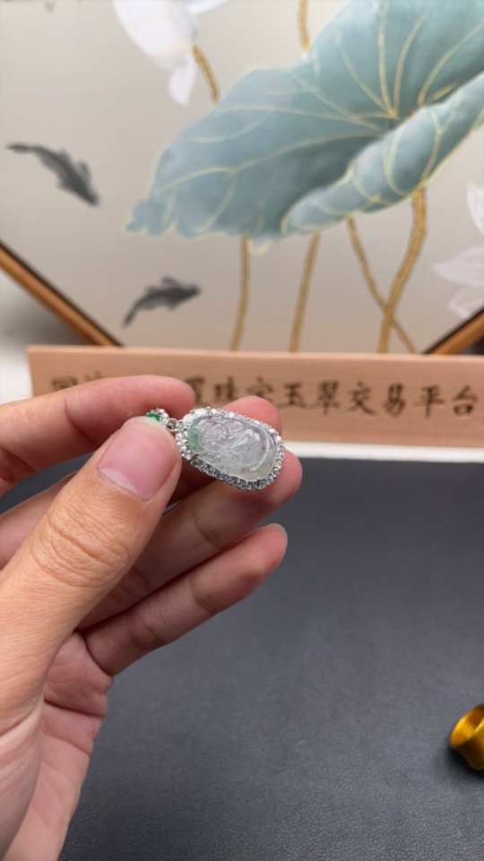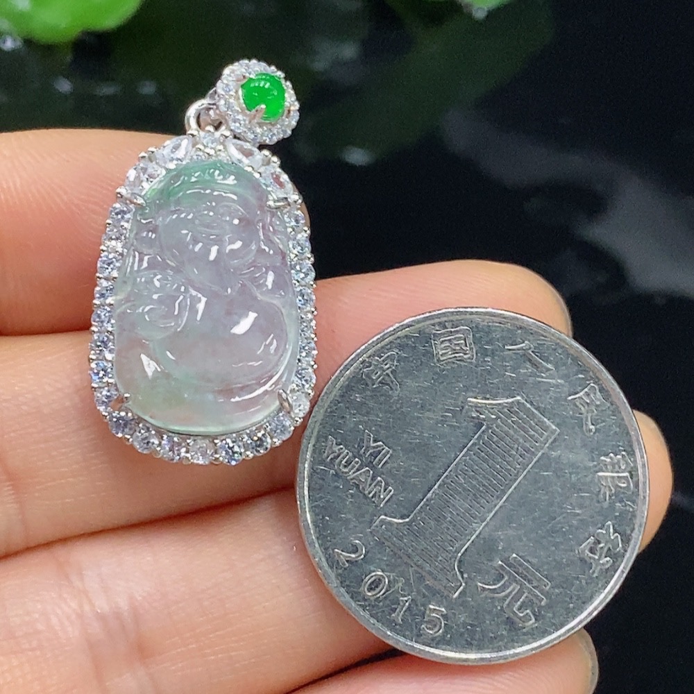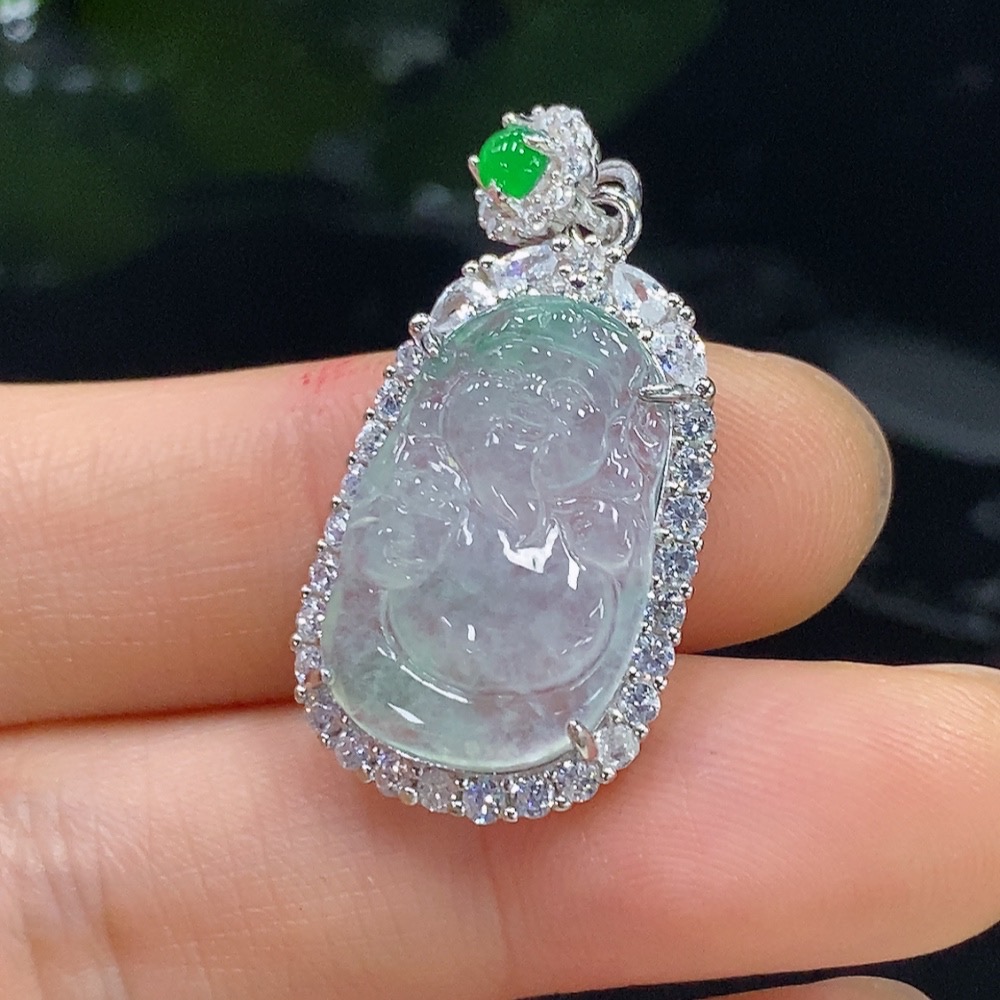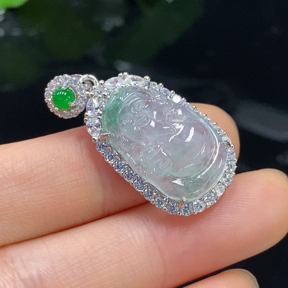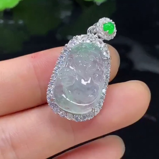 Jadeite Pendant Total Weight Approx. 3.76g Non-Gold Green Cabochon Non-Type A God of Wealth
