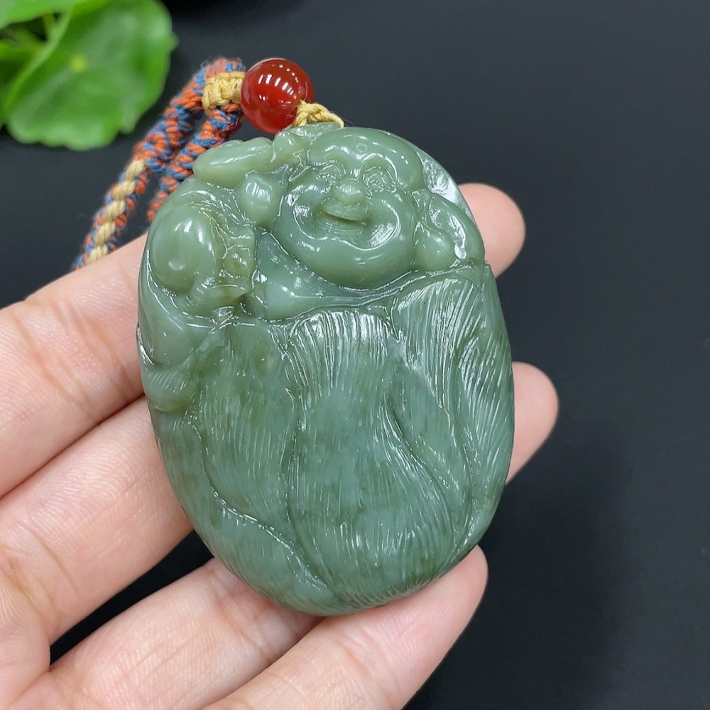 Hetian Jade Pendant Buddha Total Weight Approx. (with rope) 64g
