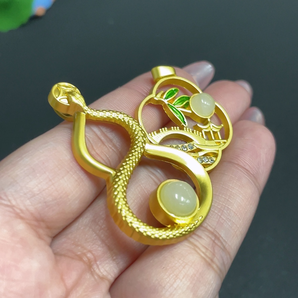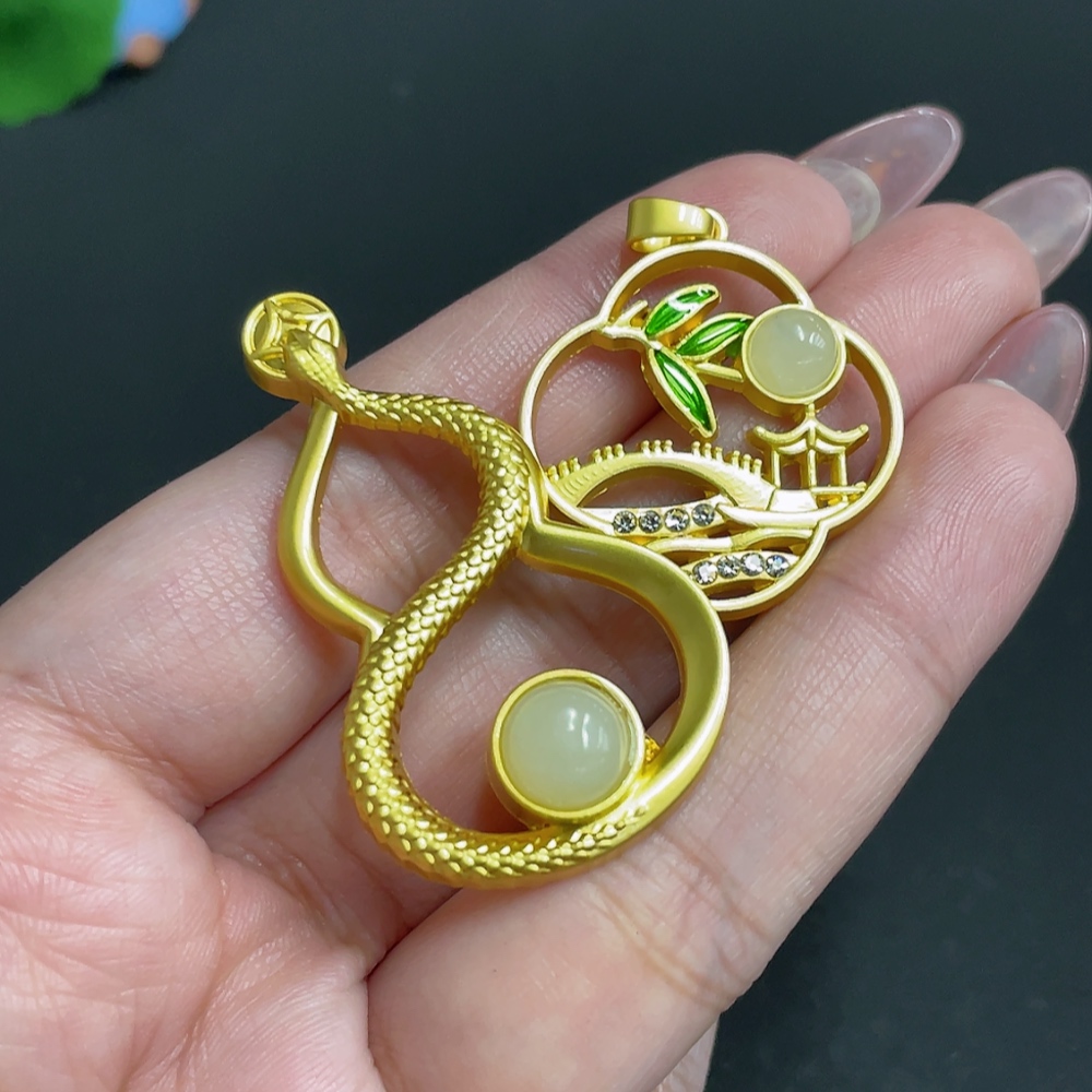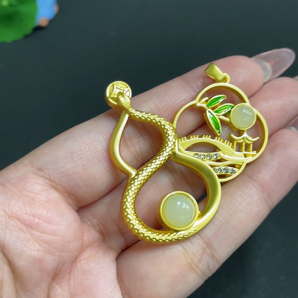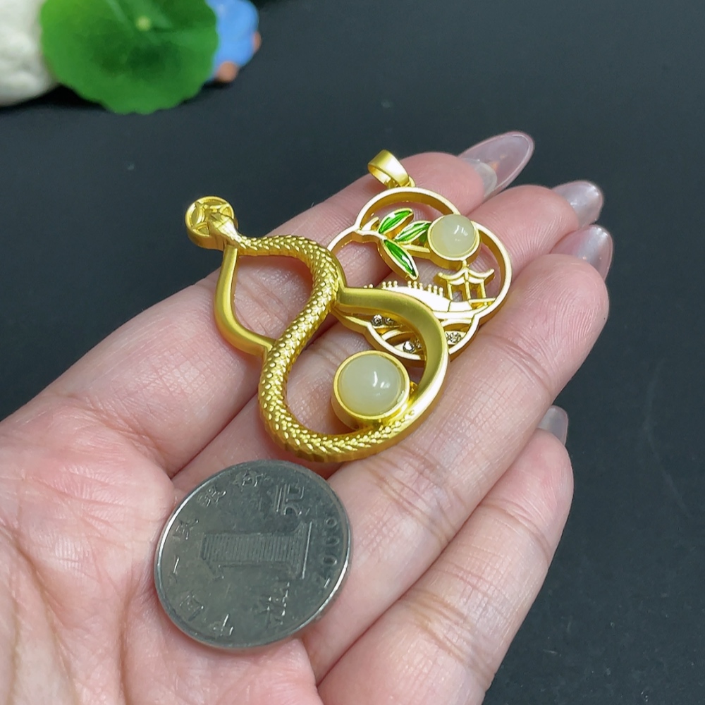 Hetian Jade Inlaid Pendant Total Weight About 10.7g Non-Gold