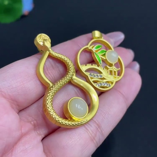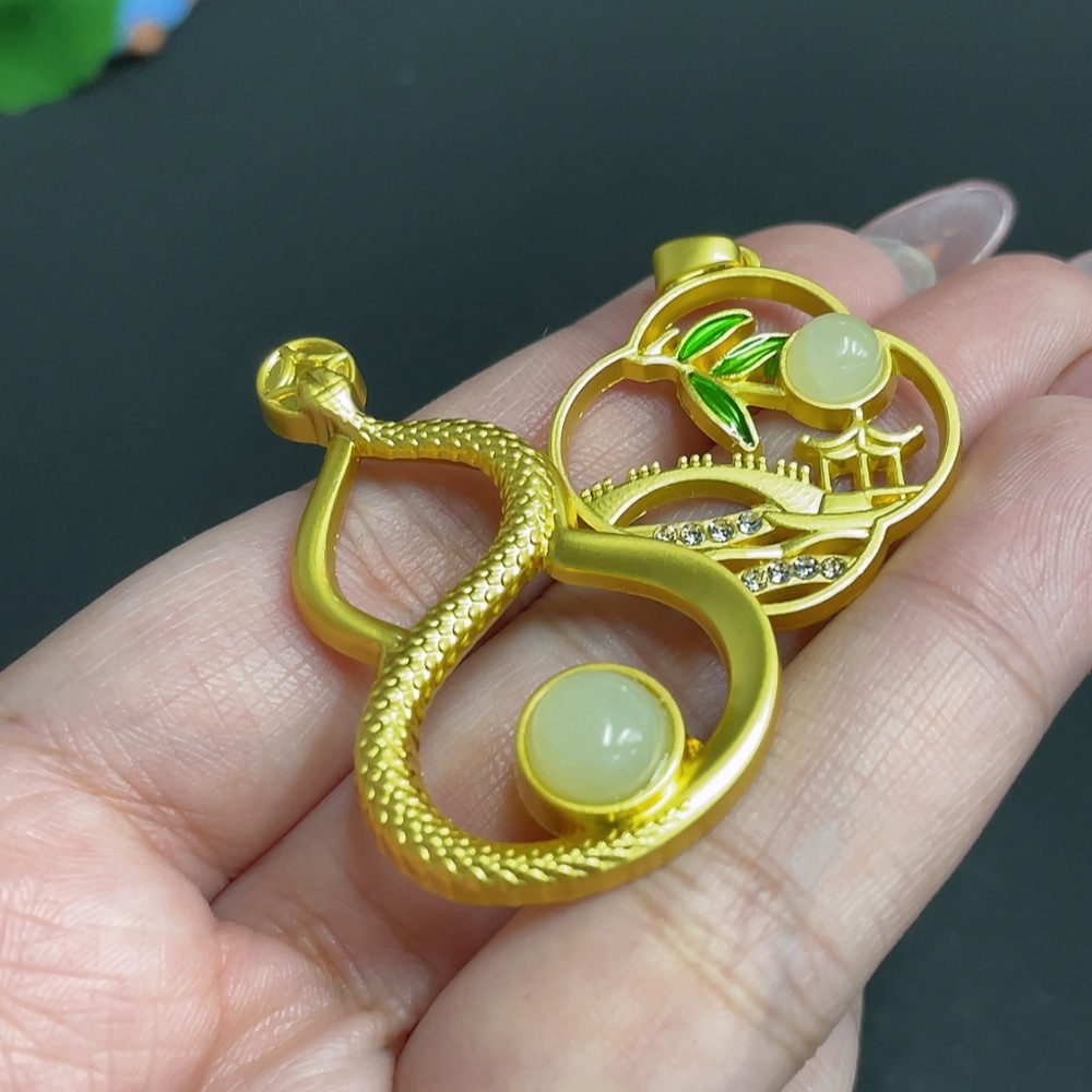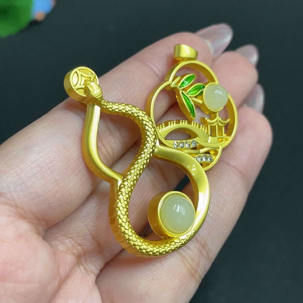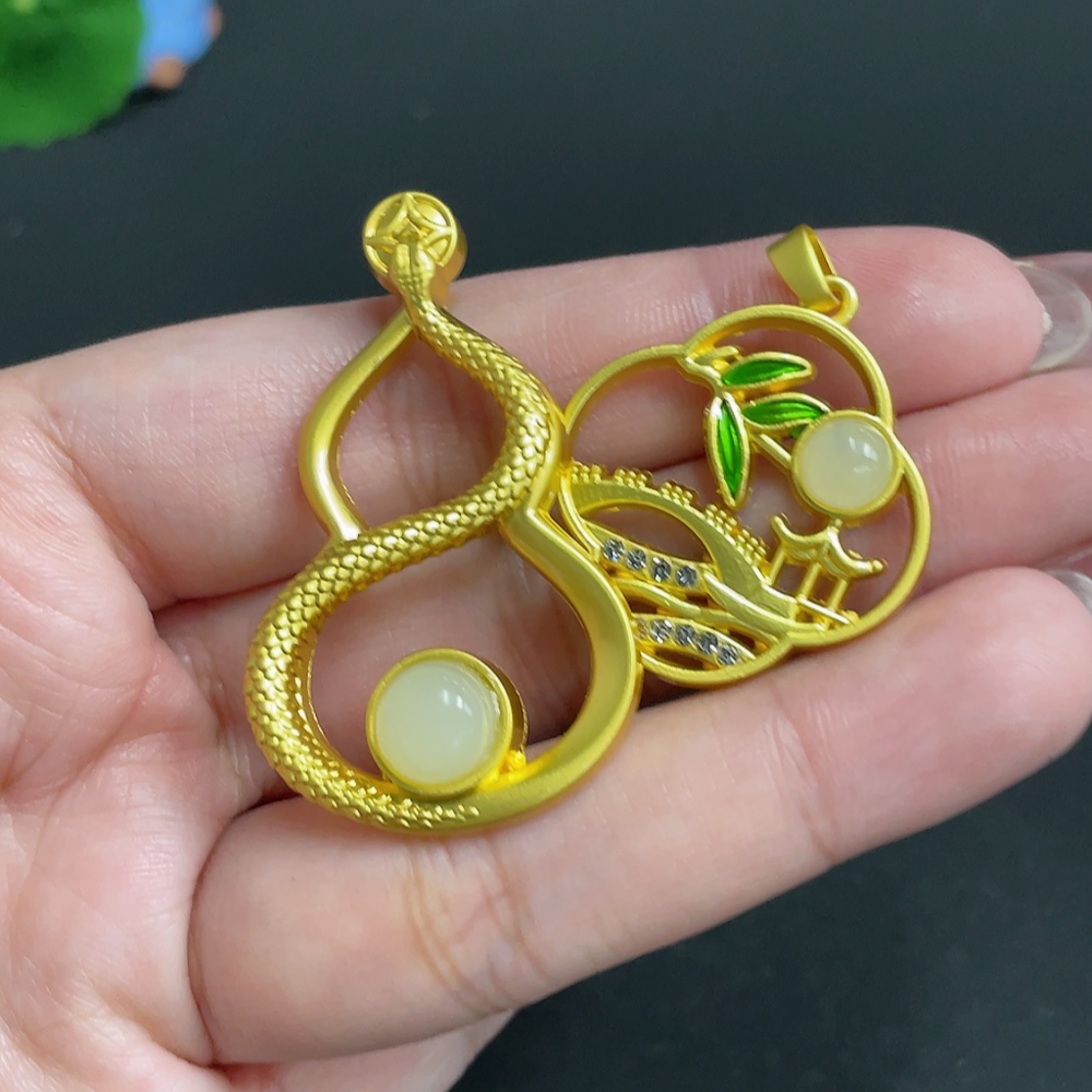 Hetian Jade Inlaid Pendant Total Weight About 10.7g Non-Gold