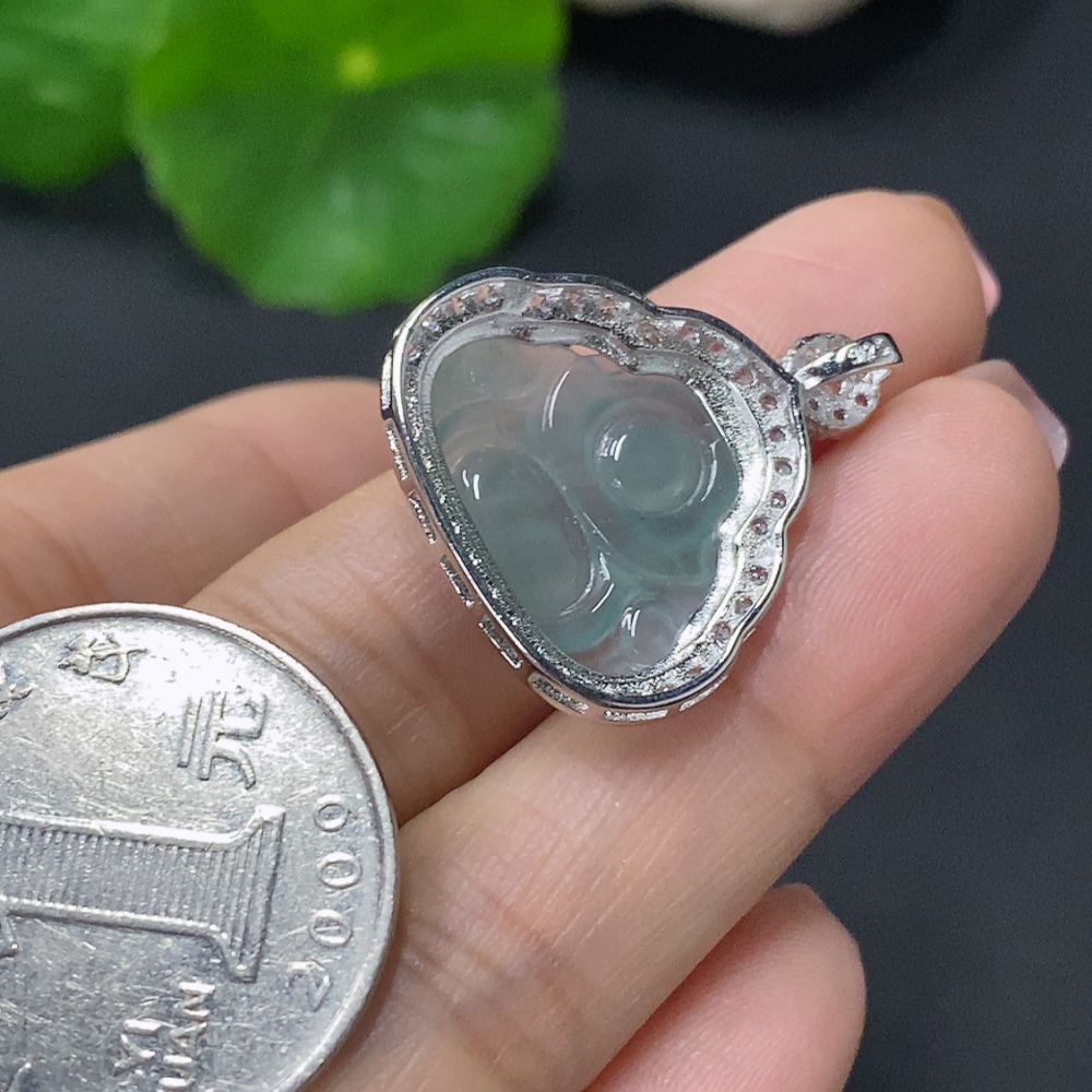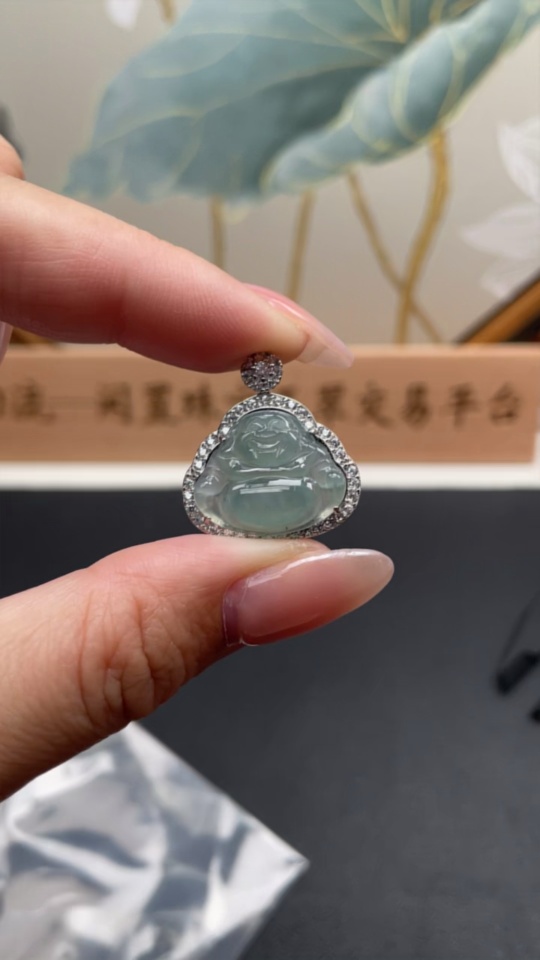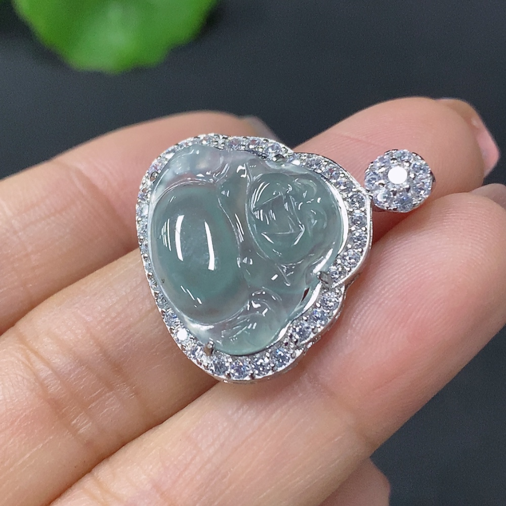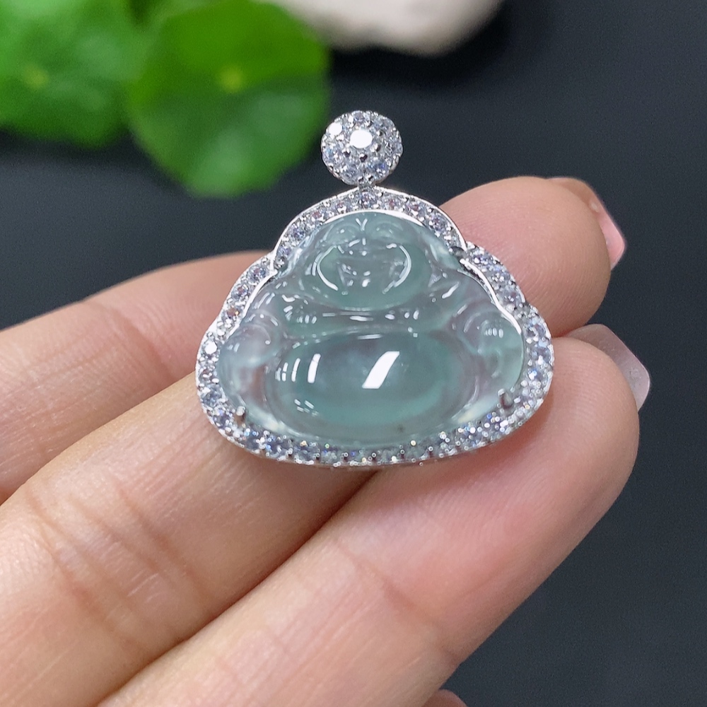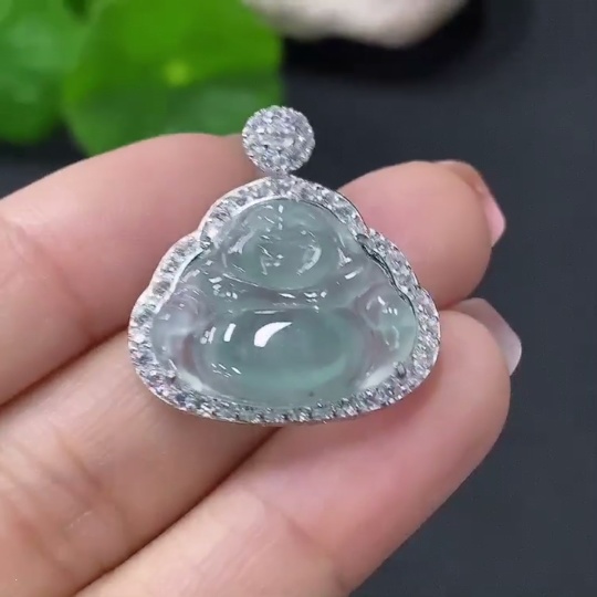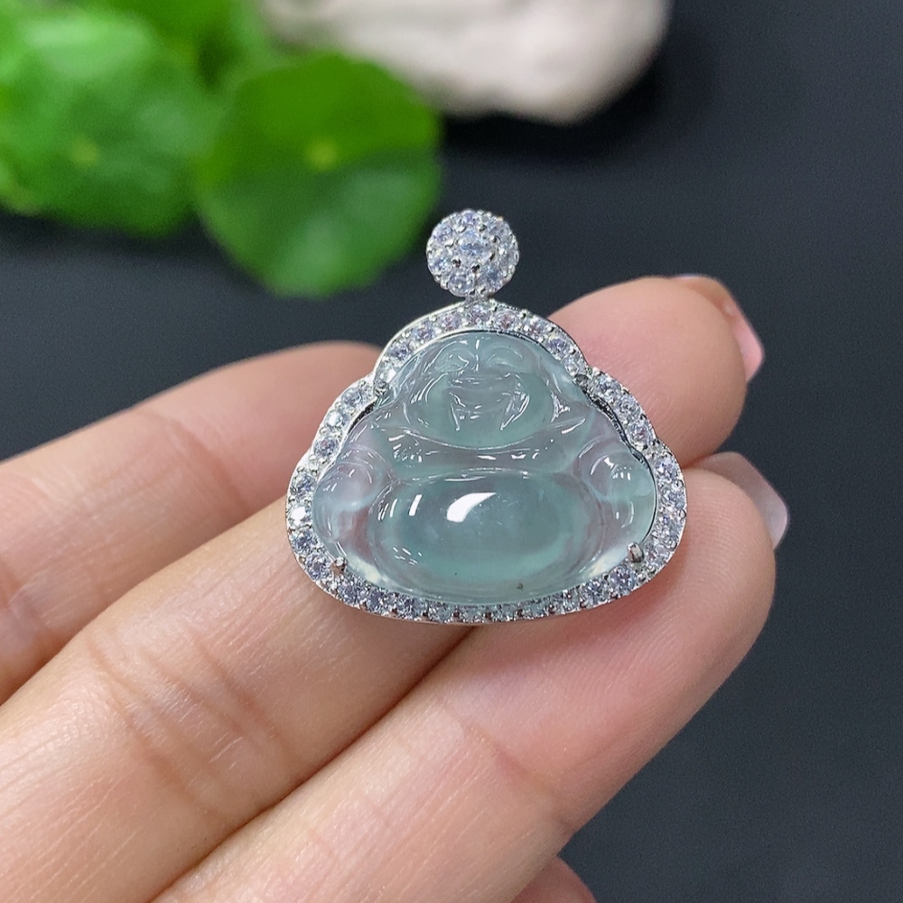 Jadeite Inlaid Buddha Pendant Non-Gold Total Weight Approx. 2.8g