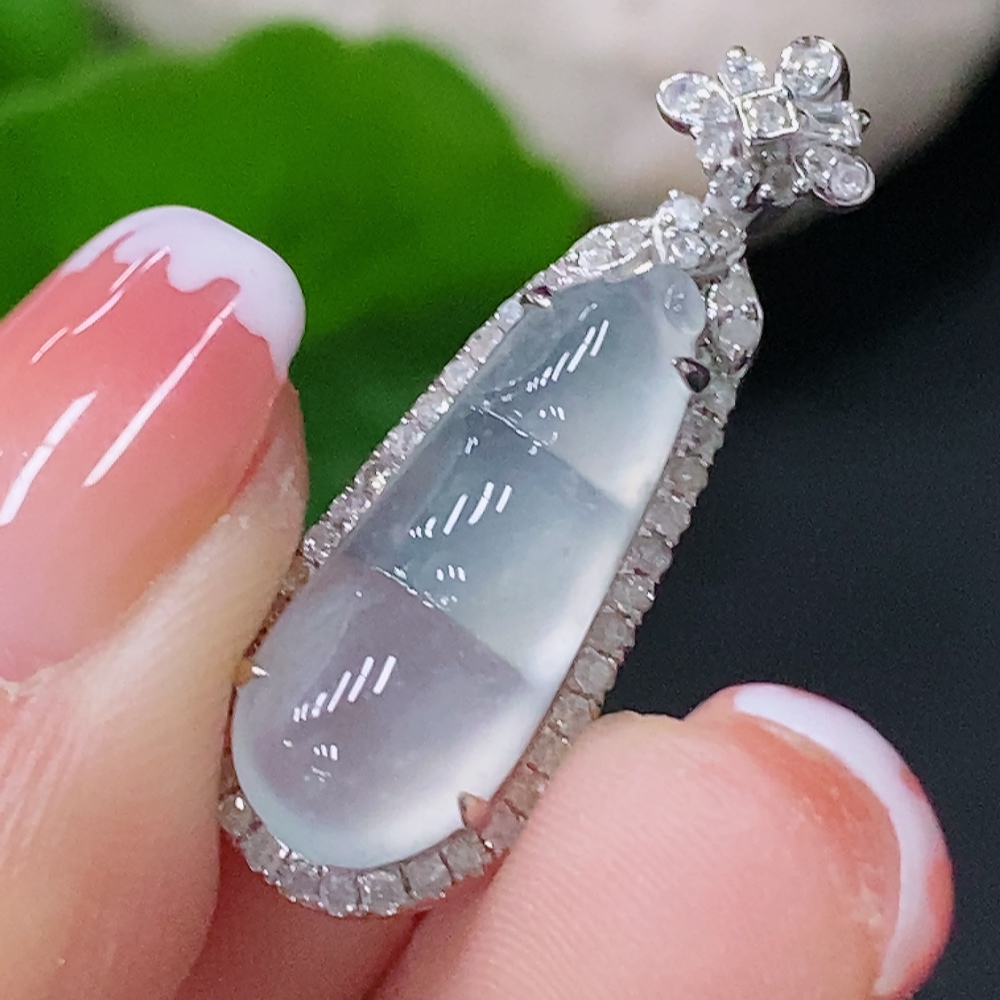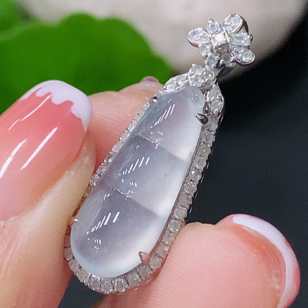 Jadeite Inlaid Pendant Fortunate Bean 18K Total Weight Approx. 2.48g