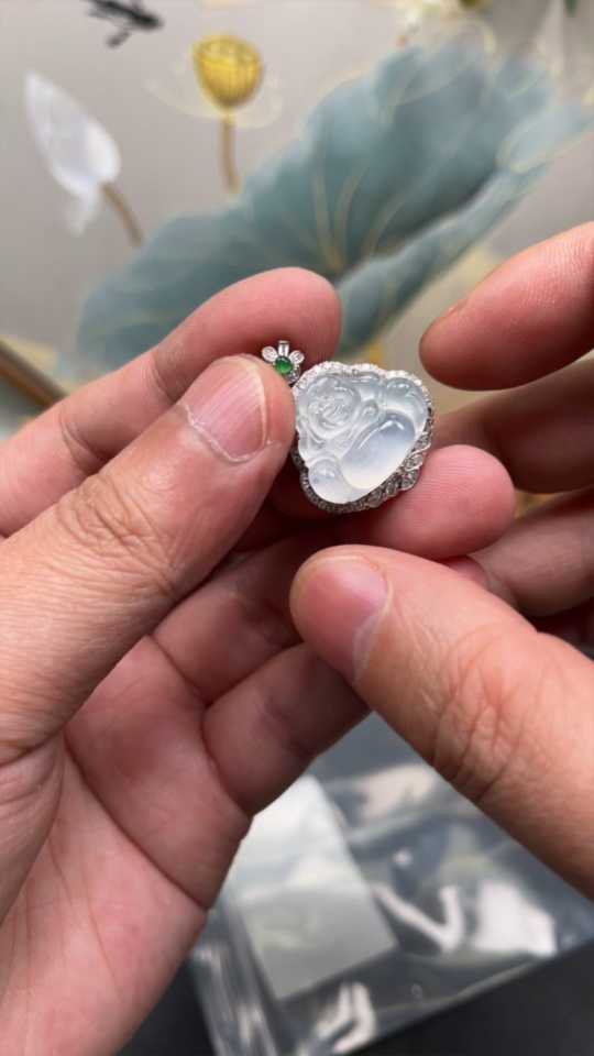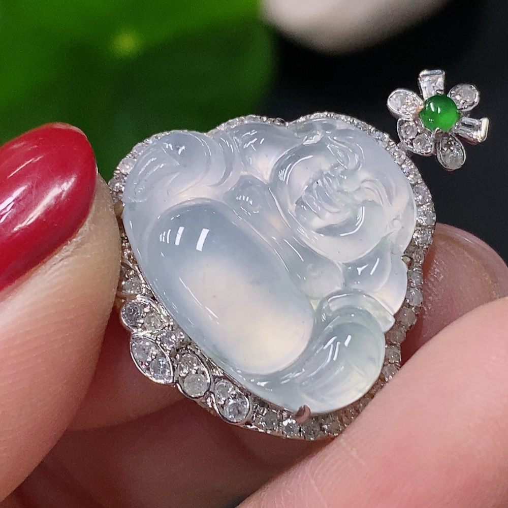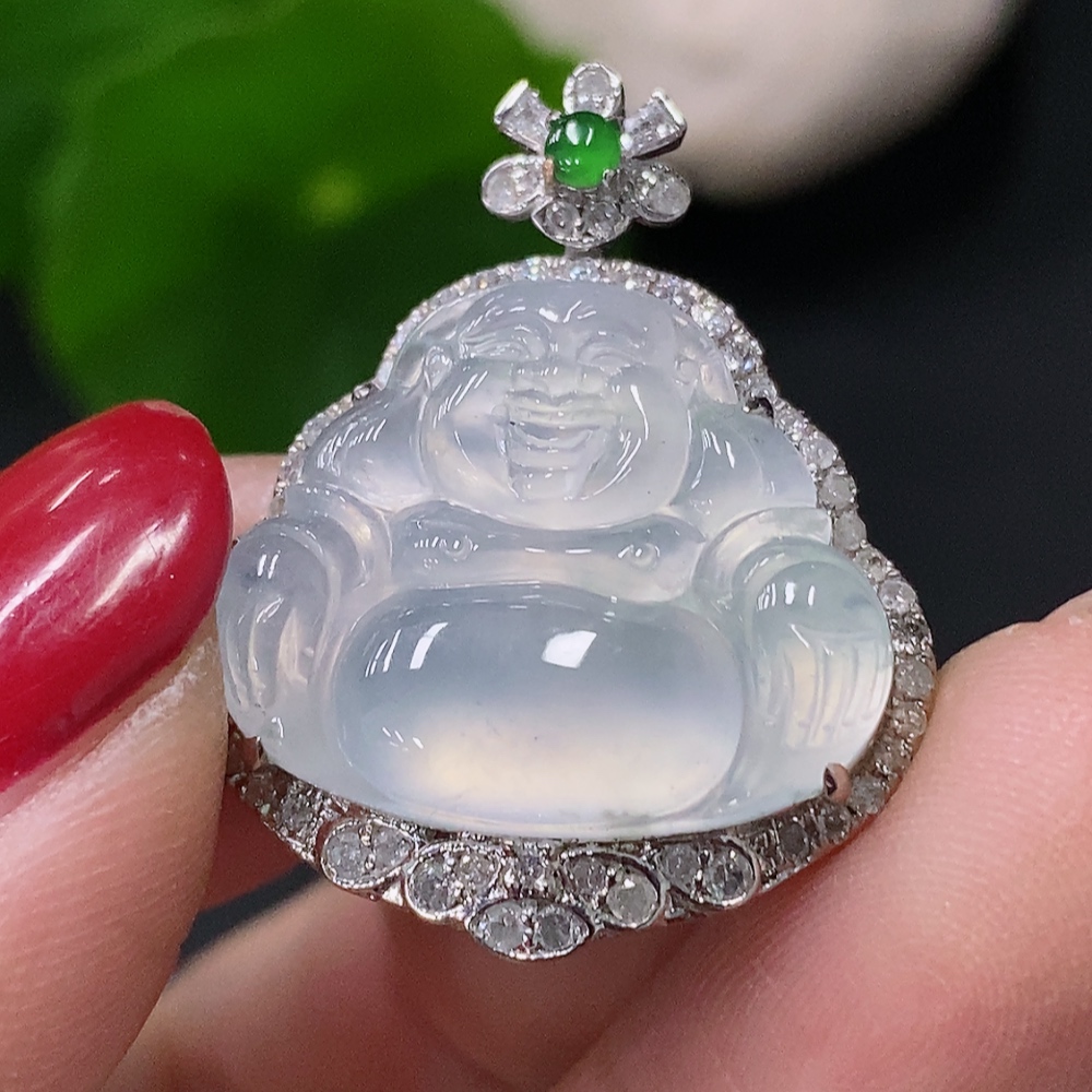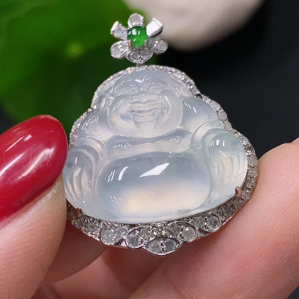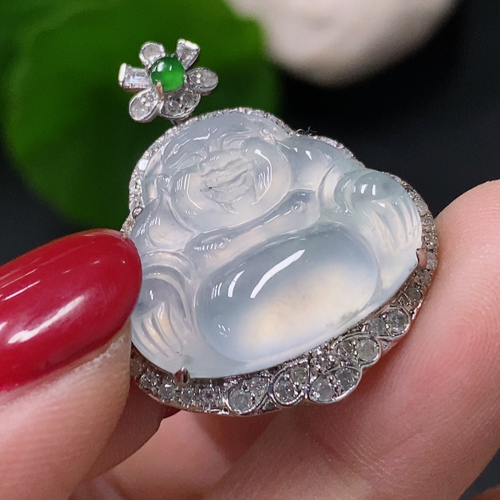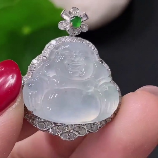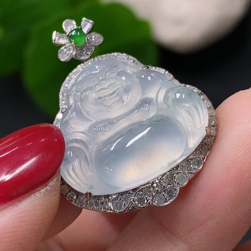 Jadeite Inlaid Buddha Pendant 18k Total Weight Approx.4.8g