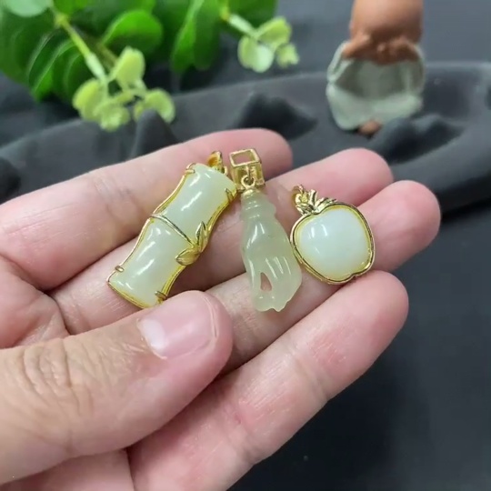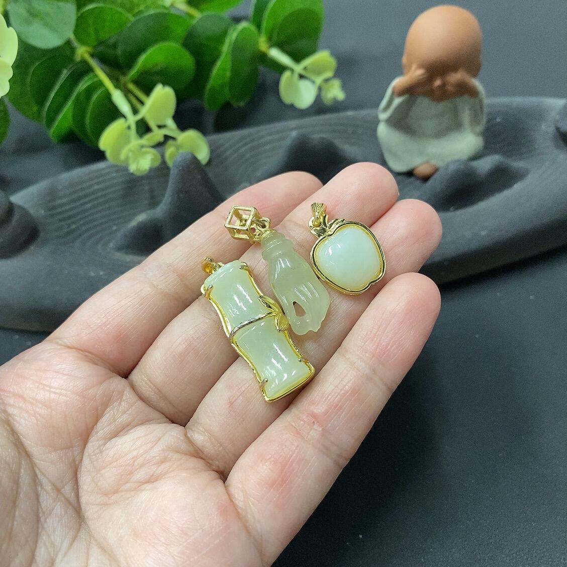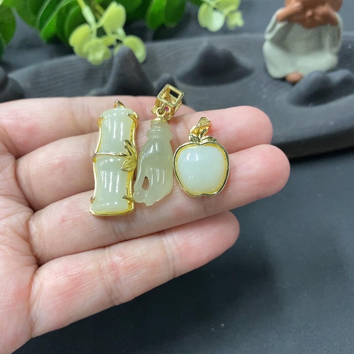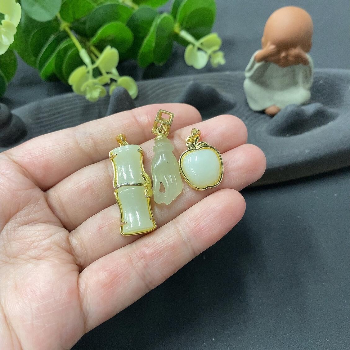 Hetian Jade Pendant Some with Veins/Cracks Total Weight 8.3g Non-Gold-Inlaid