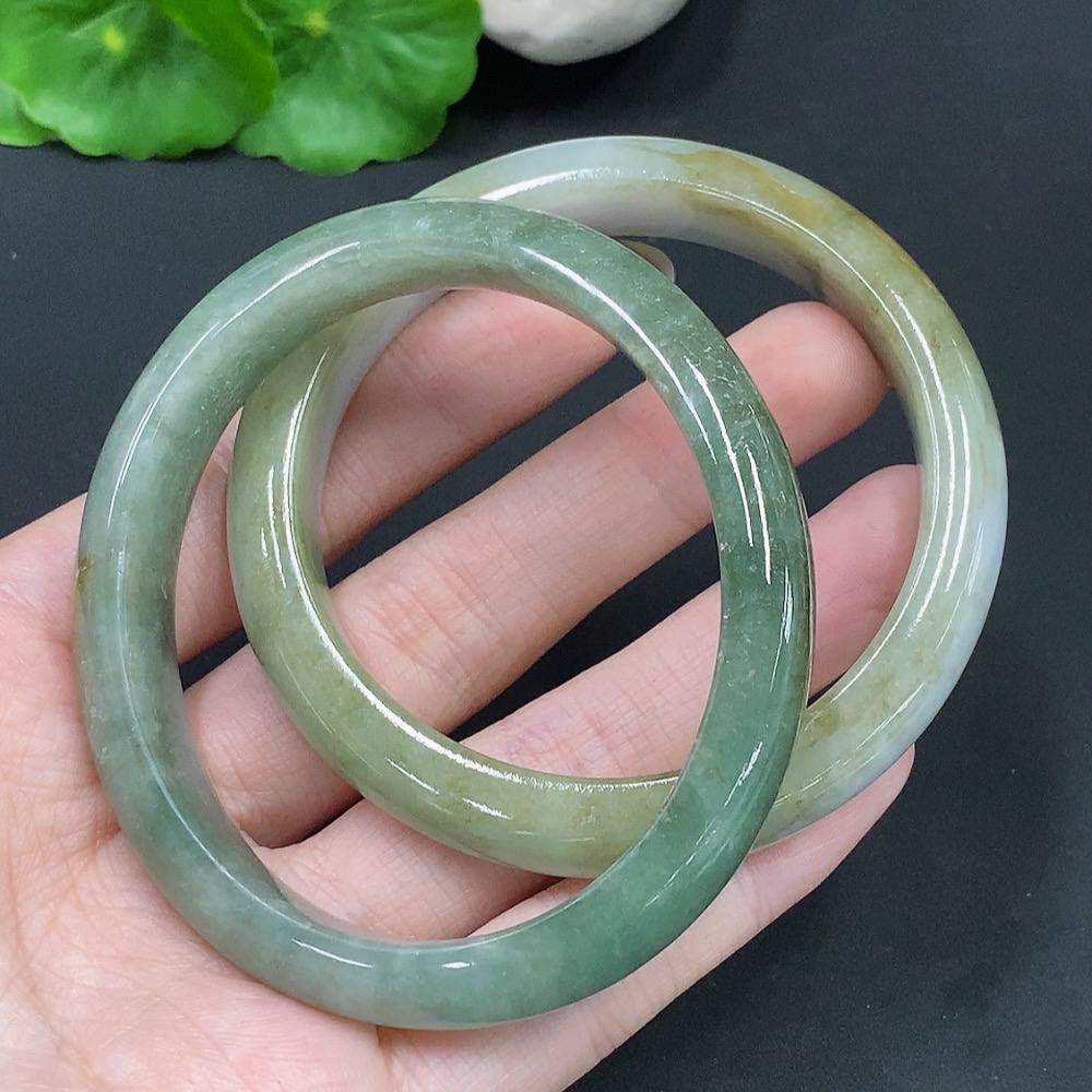 Jadeite regular bangle (Size 56) + concubine bangle (Size 58.5/51)