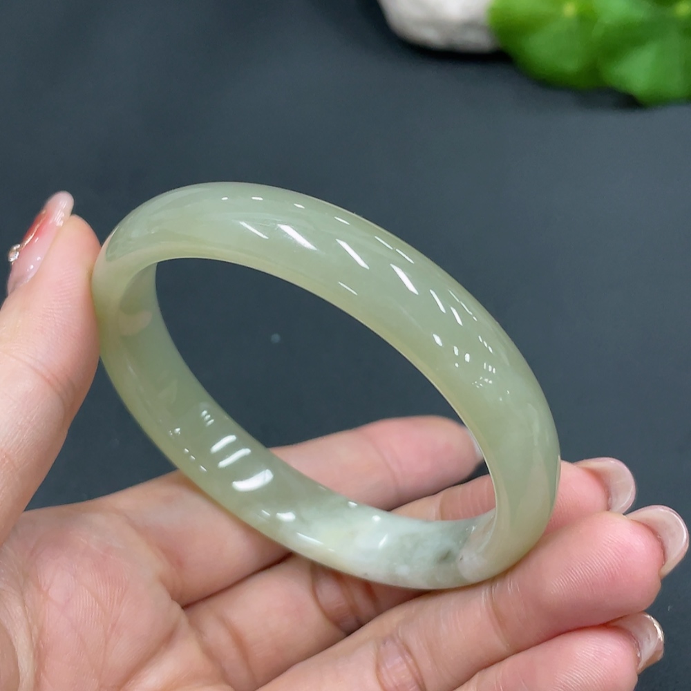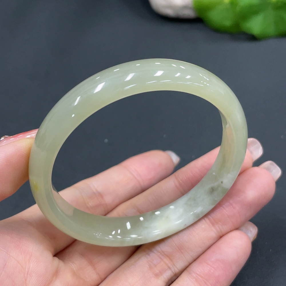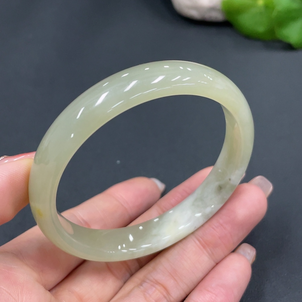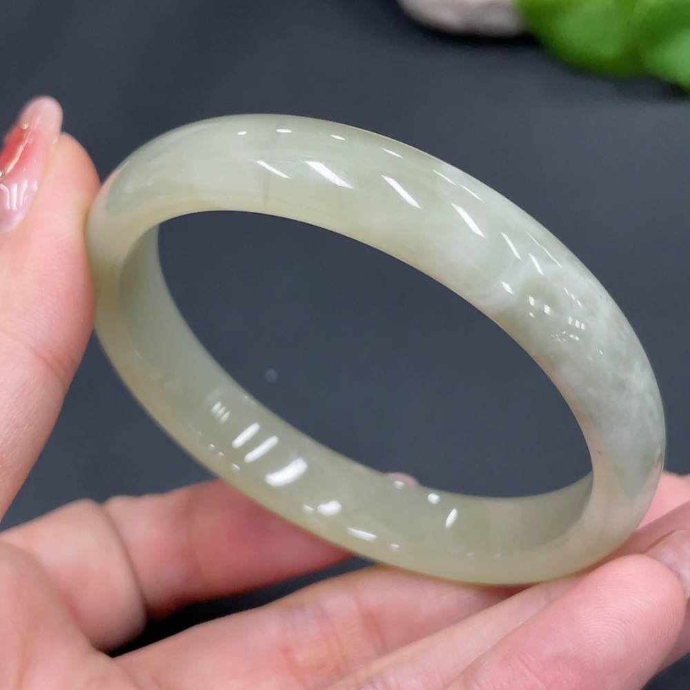 Hetian Jade Round Bracelet Size 54 Containing Other Mineral Components Total Weight Approx. 30.9g