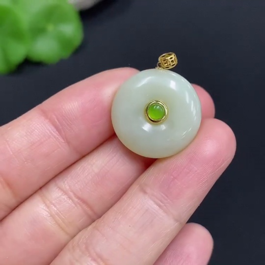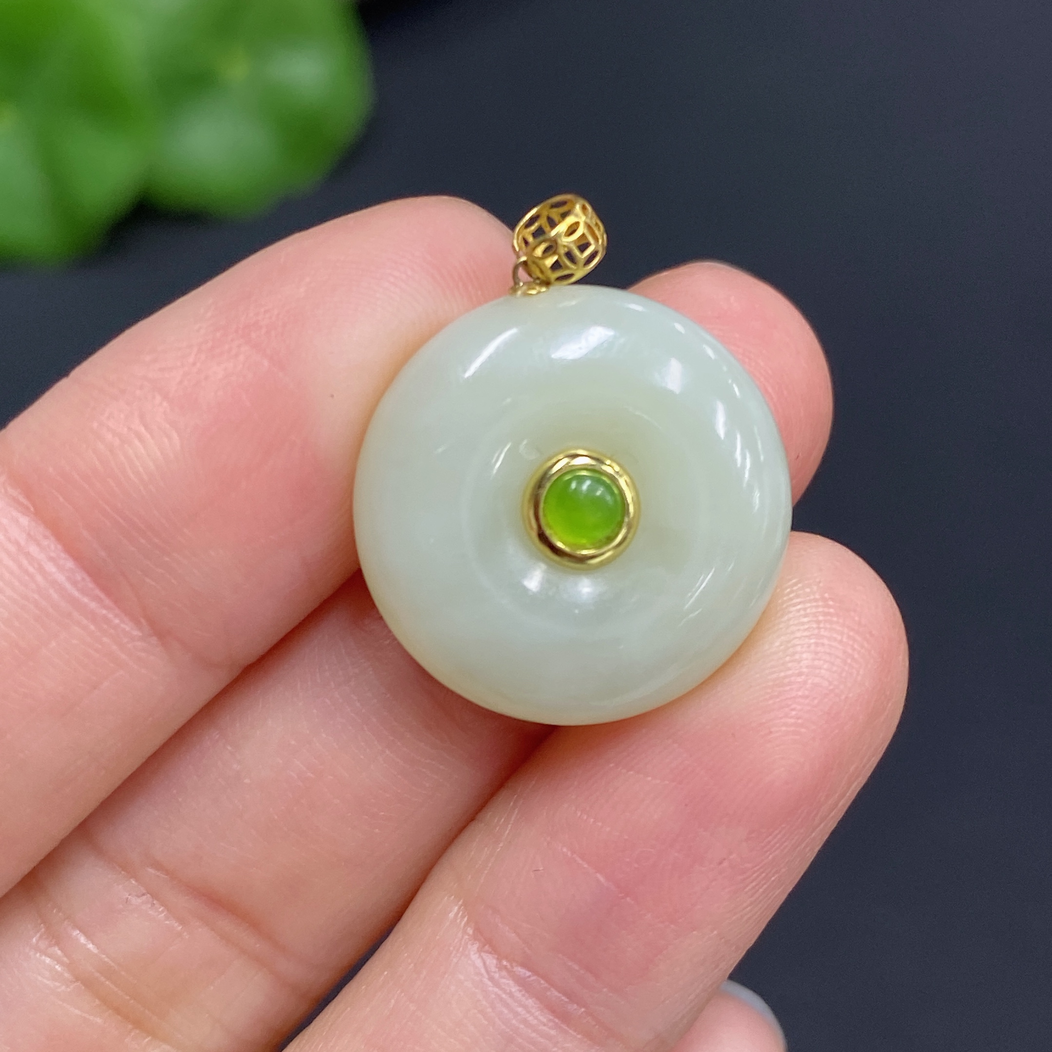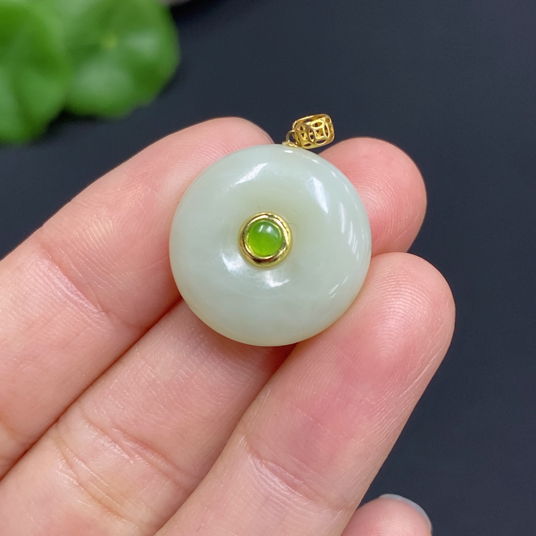 Hetian Jade Pendant - Peace Buckle with 18K Gold Clasp, Total Weight Approx. 3.6g
