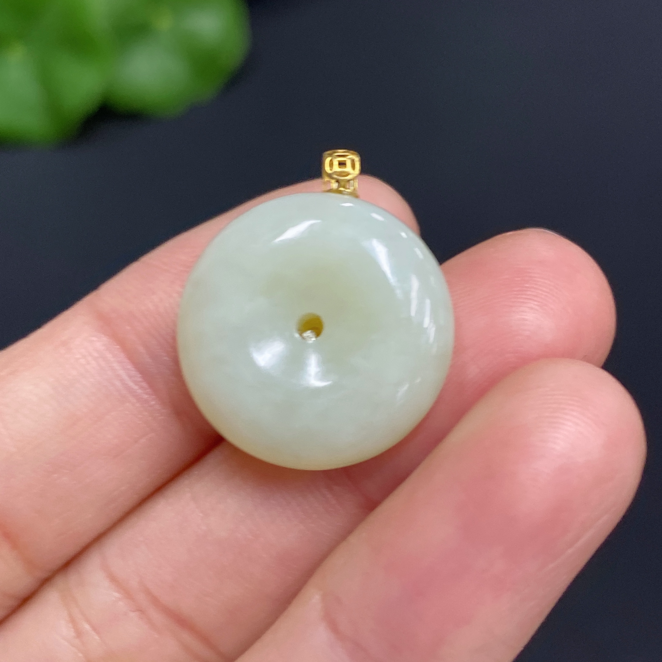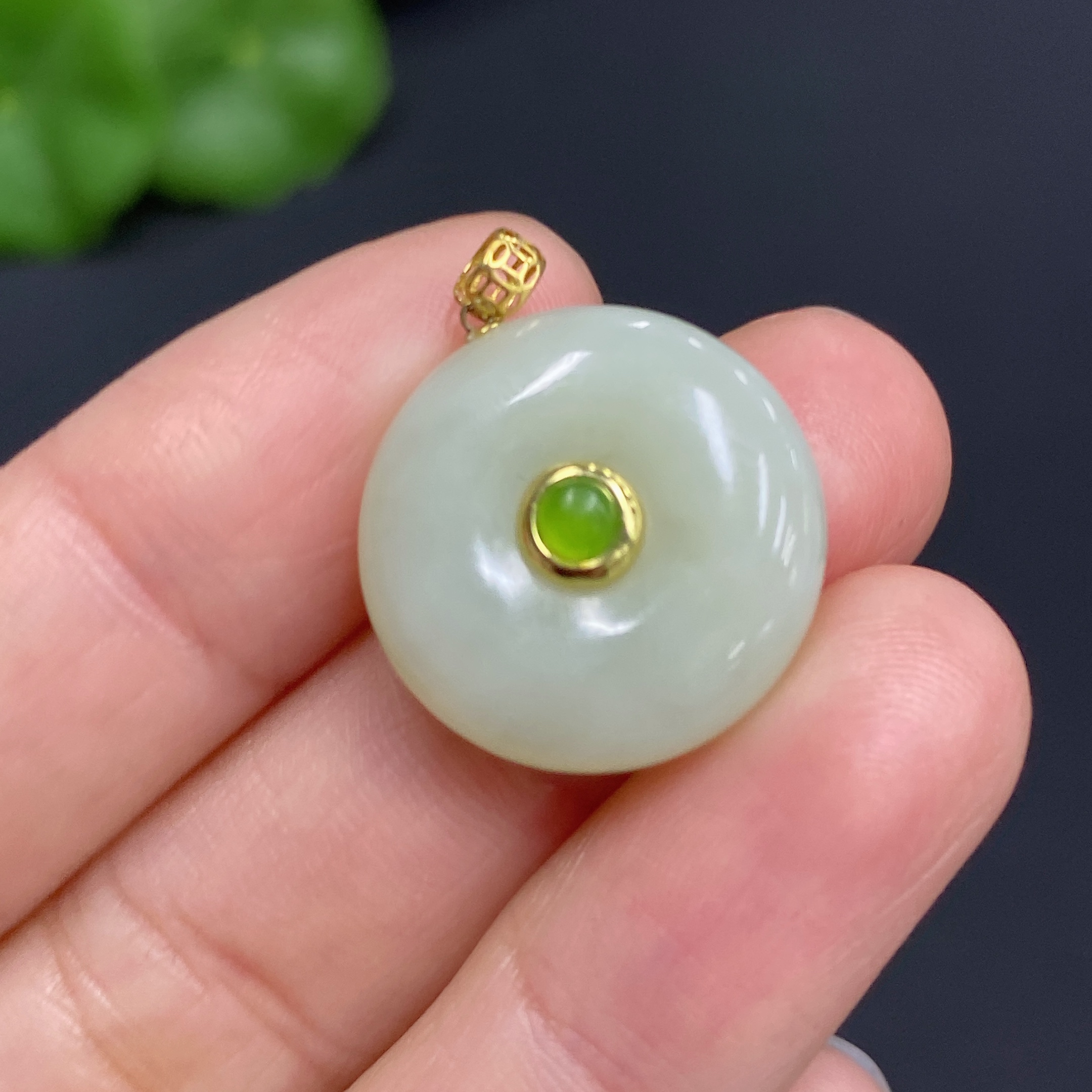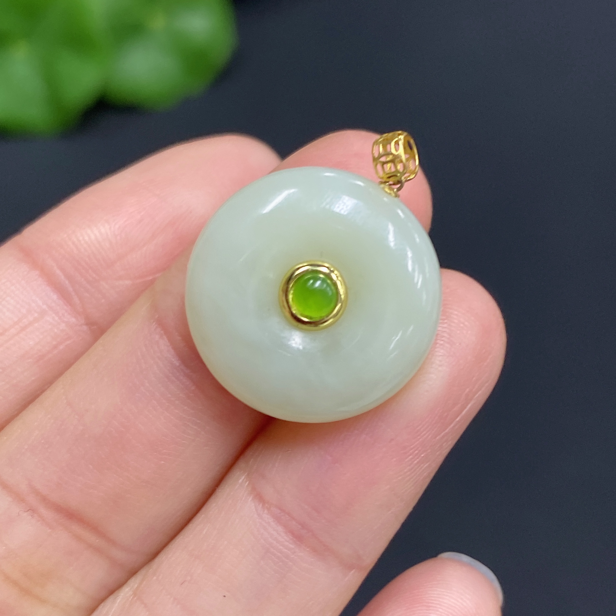 Hetian Jade Pendant - Peace Buckle with 18K Gold Clasp, Total Weight Approx. 3.6g